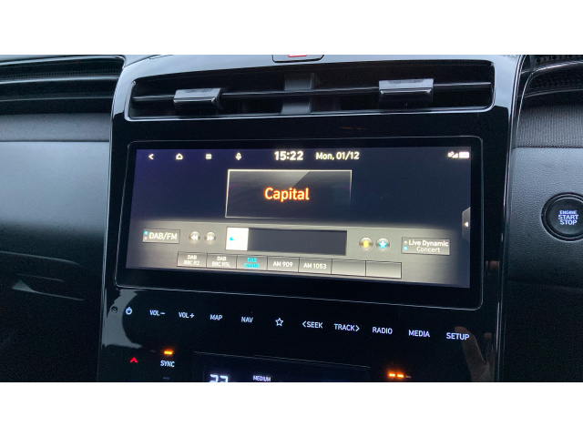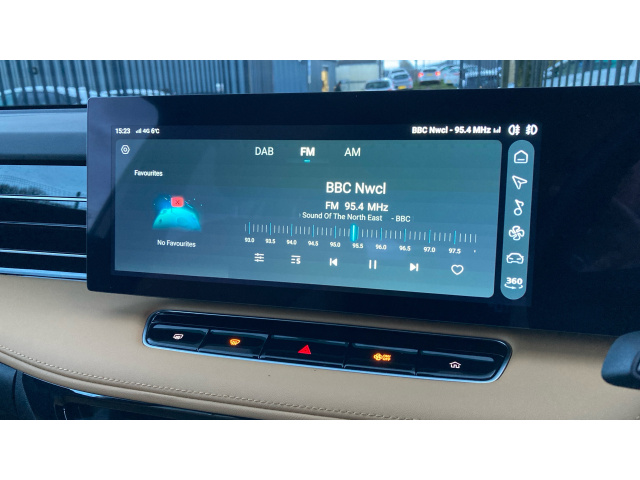 "Central facia display with digital clock, outside air temperature and audio information",