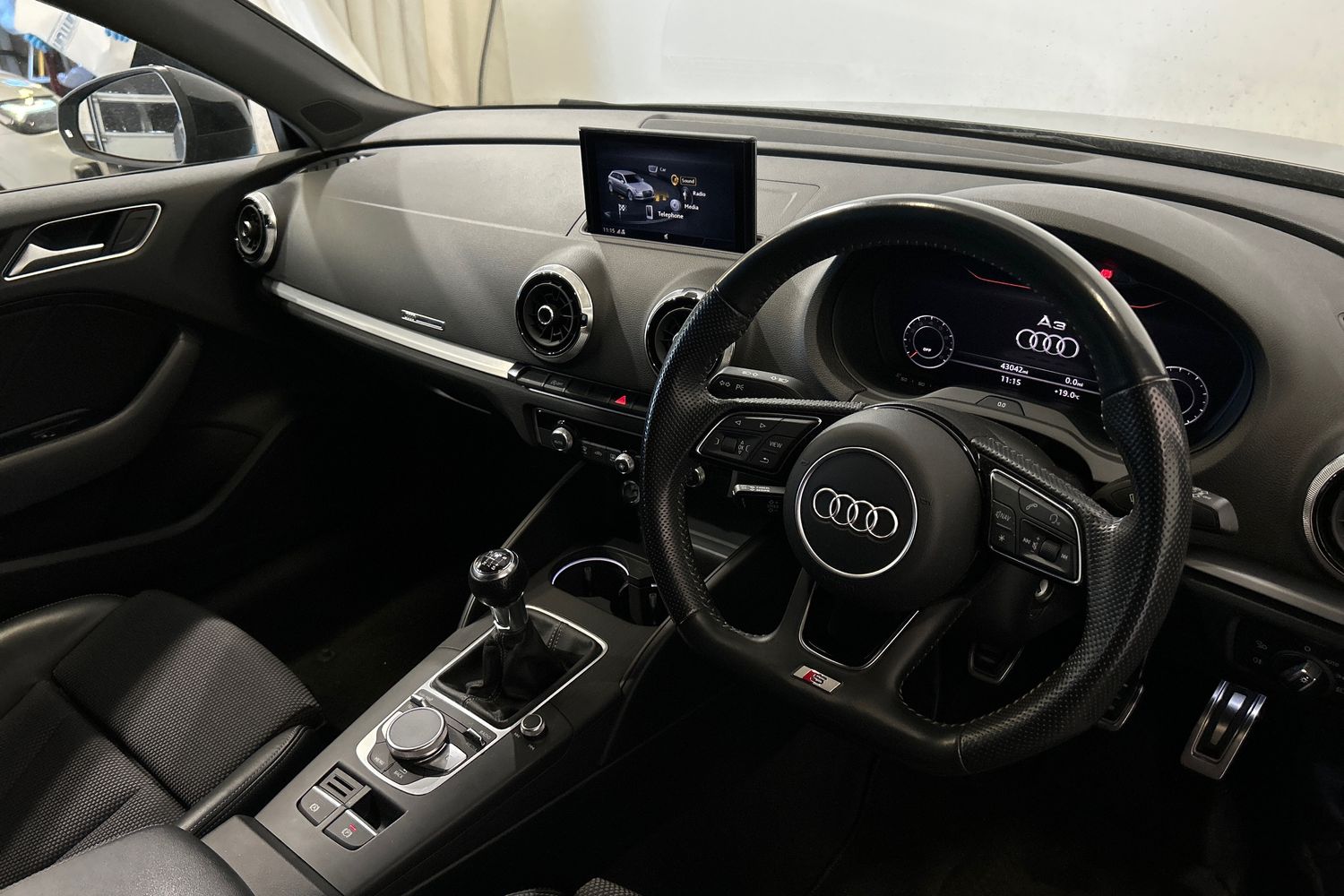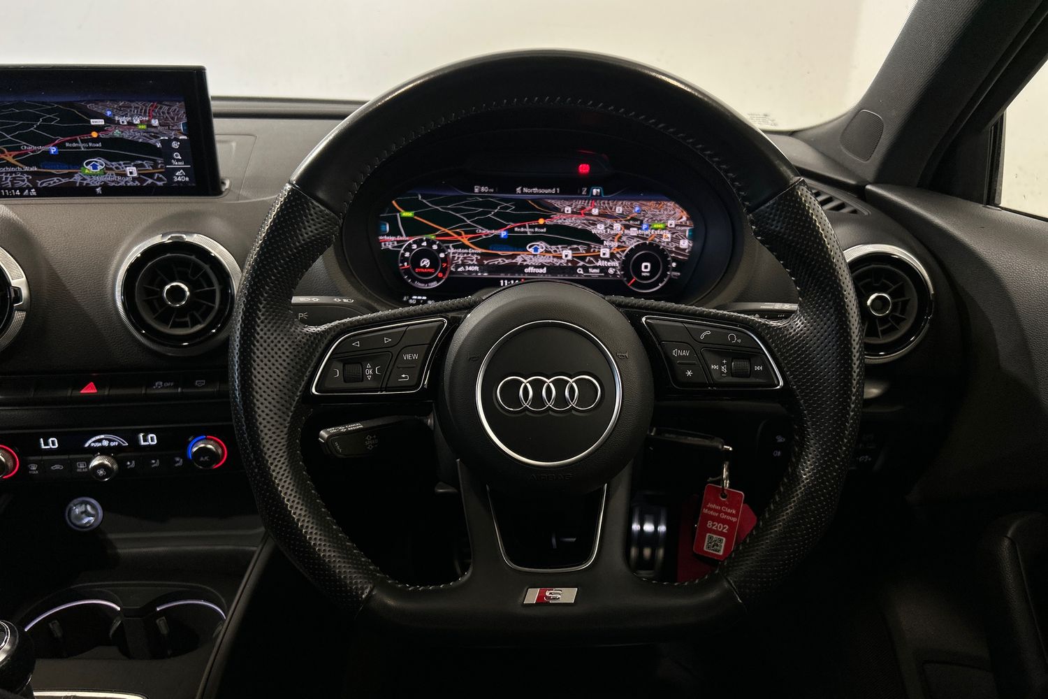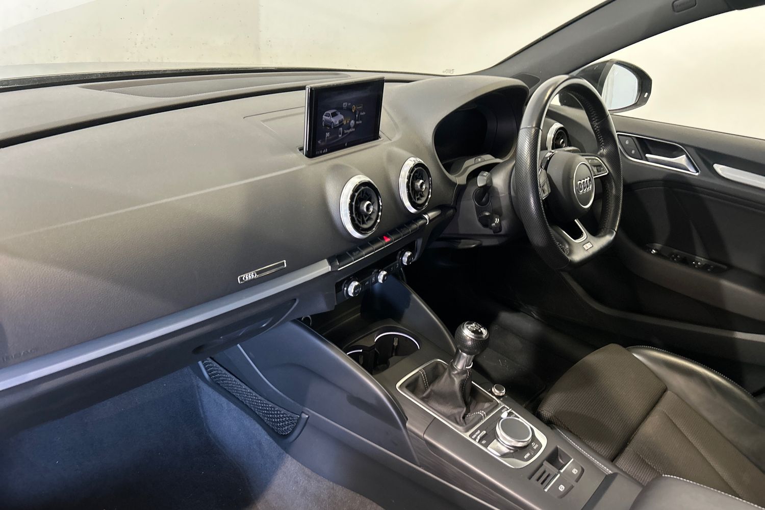 "3 spoke flat bottomed multi-function leather steering wheel",