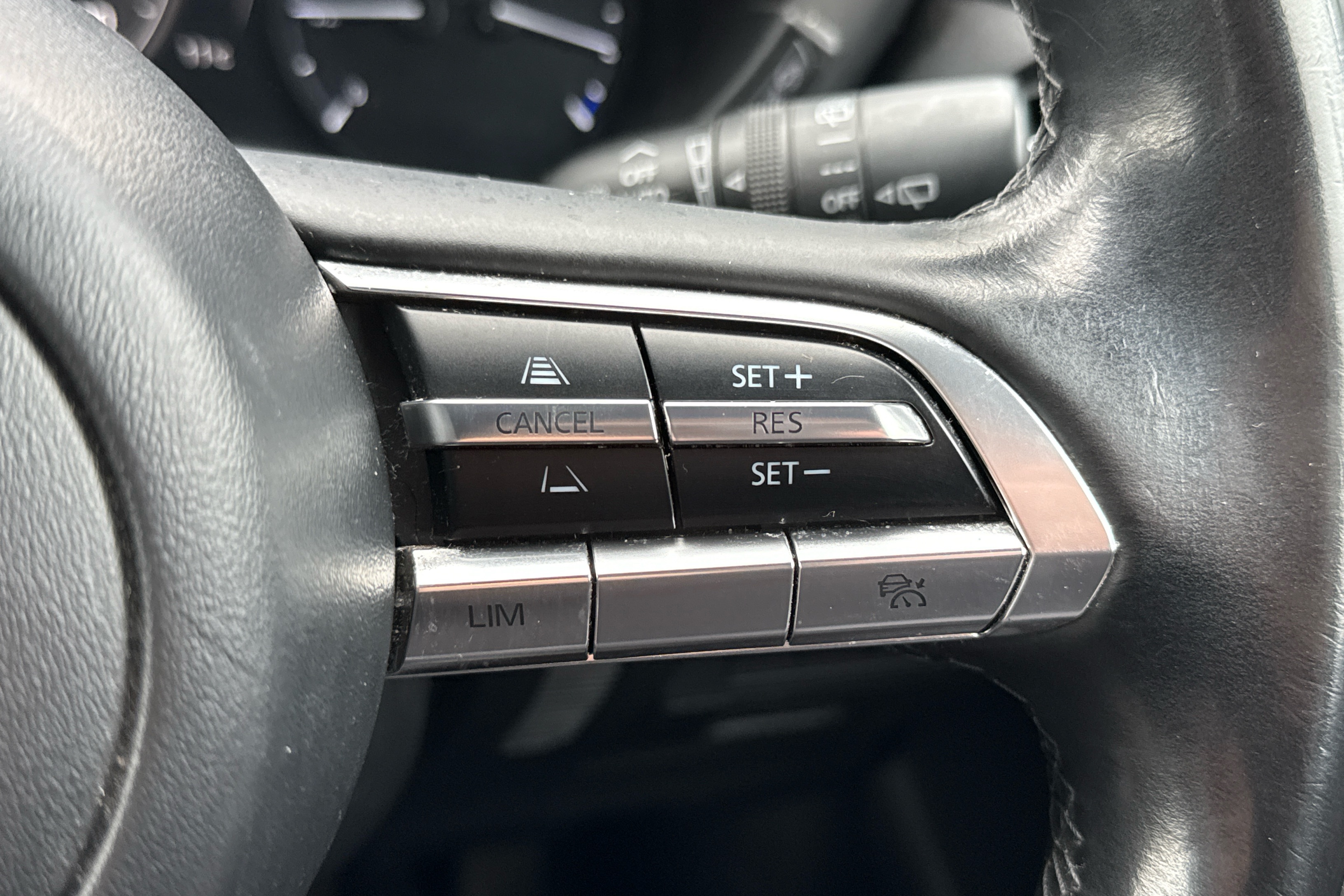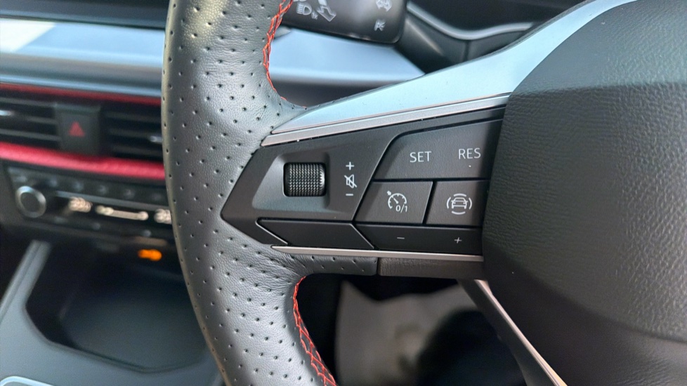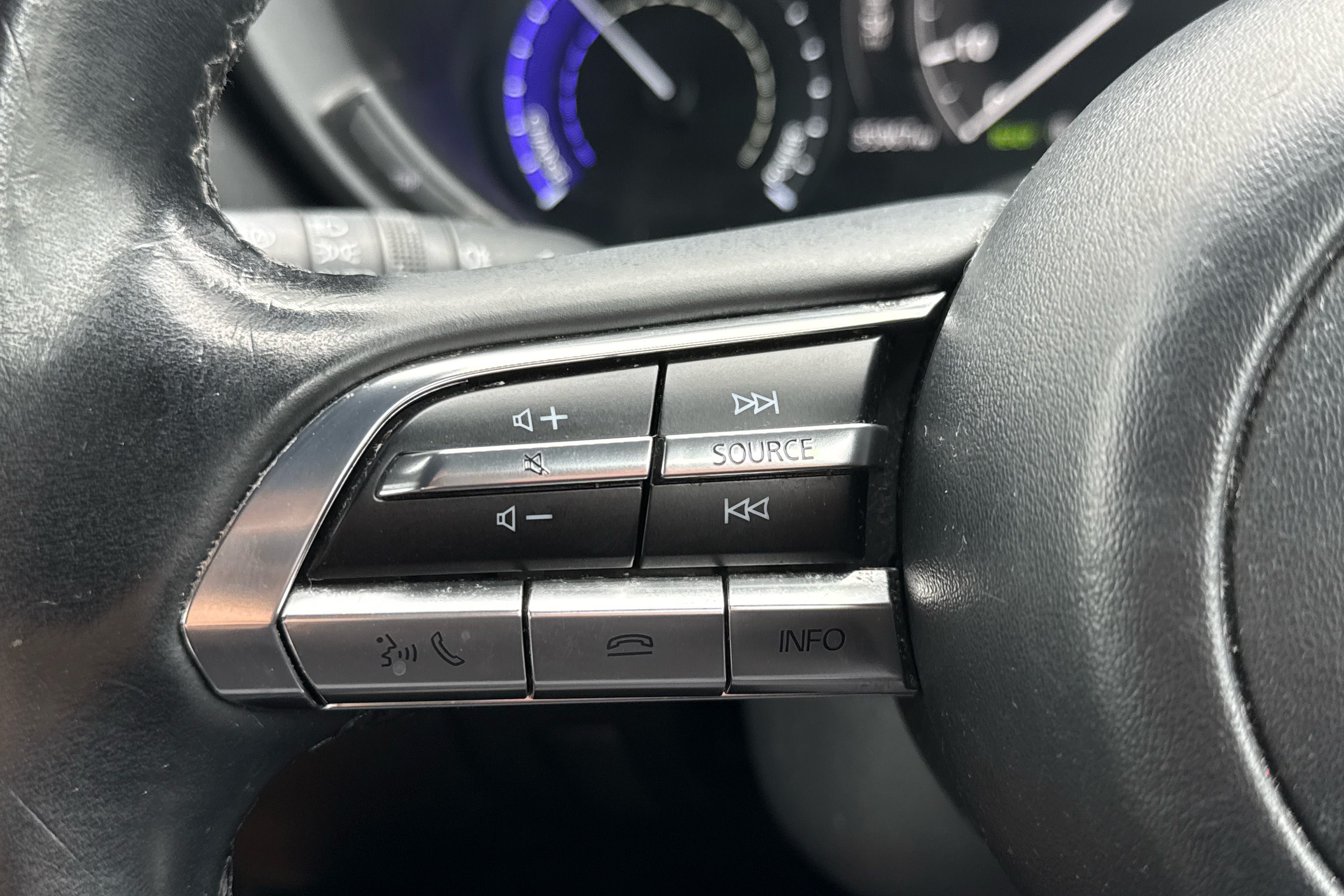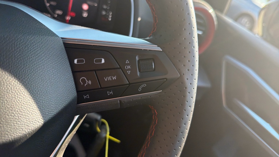 "Techno leather steering wheel with audio controls",