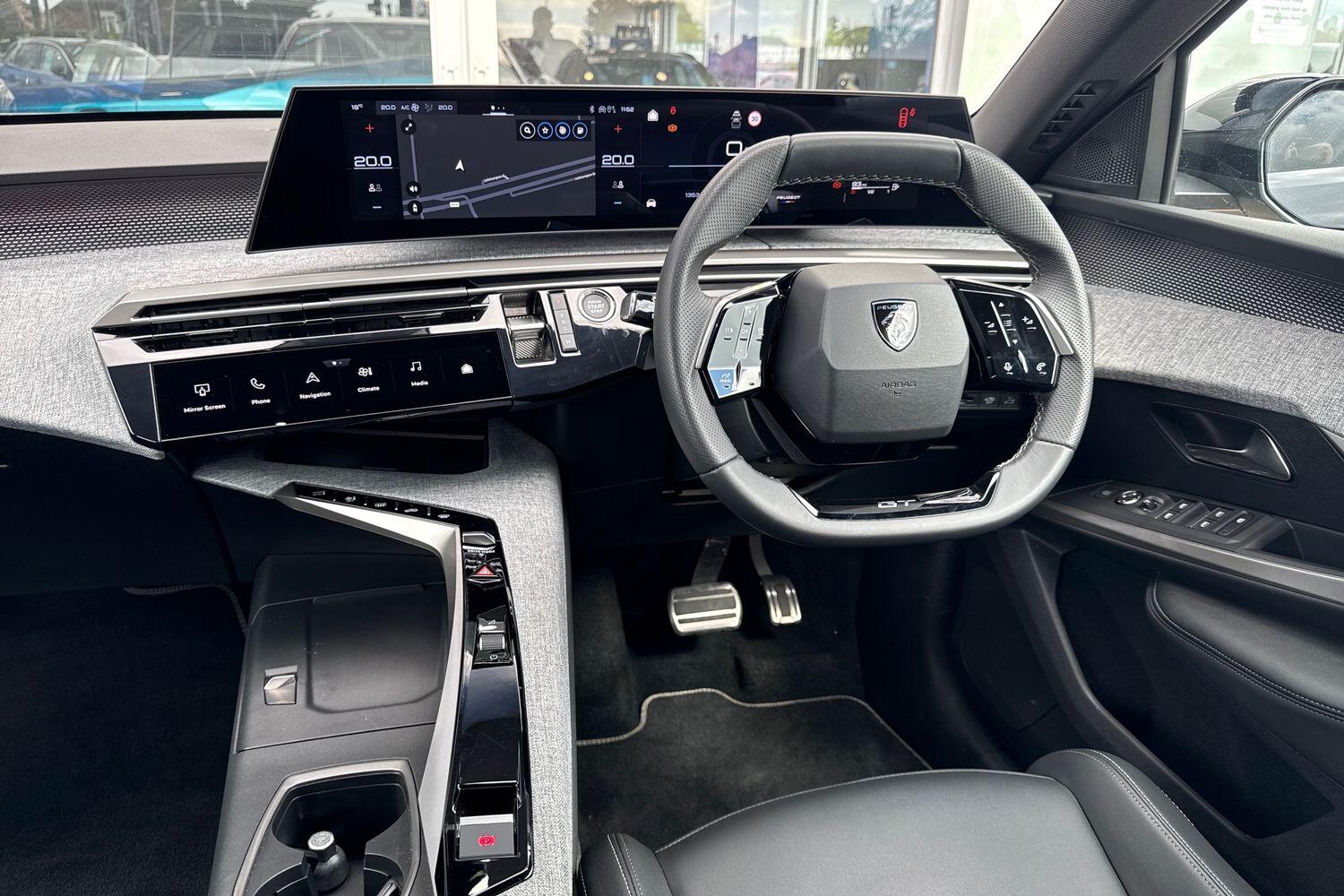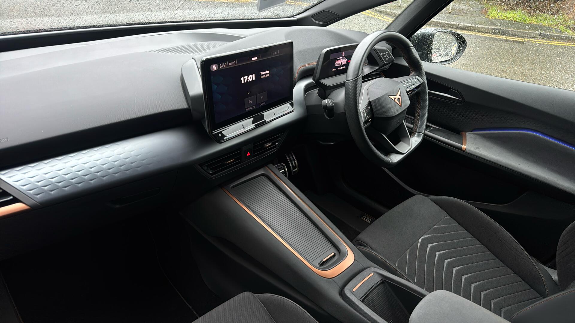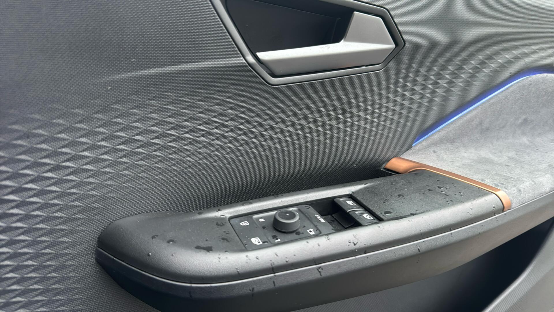 "Soft touch steering wheel with controls",