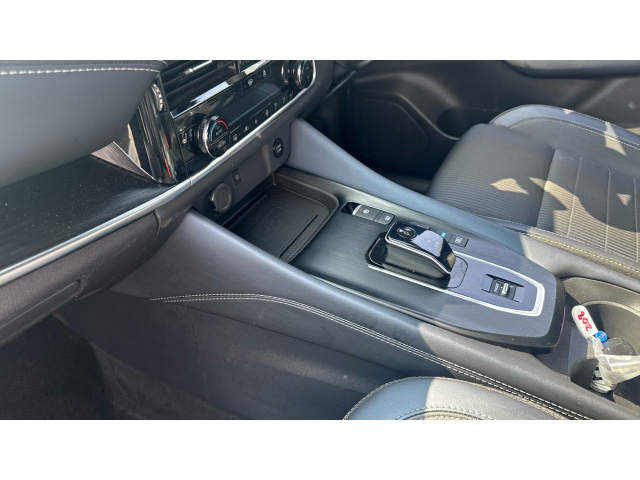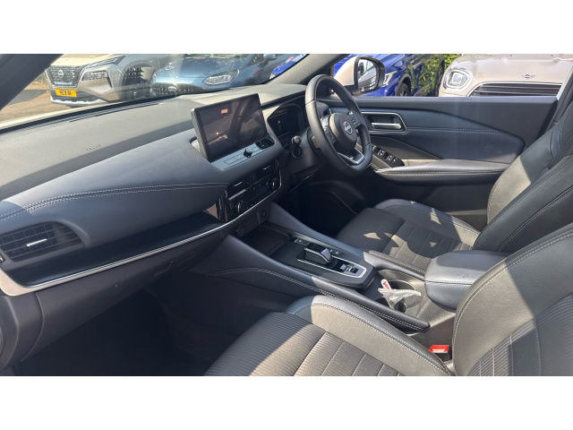 "Tailored instrument panel with contrast stitching"