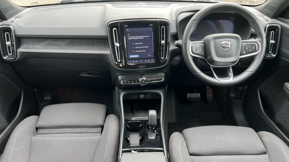 "features": "12.3\" Progressive Driver Display, 9\" centre console portrait touch screen, Adjustable steering wheel force, Bluetooth handsfree system, Cruise control, Emergency services call system, Google automatic services - Nav with google maps, apple carplay/android auto, voice recognition with google assistant, Lane keep assist with driver alert control, Oncoming Lane Mitigation, Power operated tailgate, Rear park assist, Speed limiter, Speed sensitive steering, Volvo cars services with app, Volvo on call with charge station locations and route planning and pre climatisation, Wireless Smartphone Integration includes Apple CarPlay and Android auto, Wireless/Inductive Mobile Phone Charging, 11 kW AC onboard charger, 7m 10amp charging cable with 3 pin plug and 4.5m 3 phase 32 amp type 2 / mode 3 charge cable, Charging port located in nearside rear wing, Electric front axle drive, Lithium-ion battery, Recharging port located in nearside rear wing, Touring chassis, DAB Digital radio, High performance sound, 8 speakers/250W, front USB and 2 rear type C USB, Low speed exterior sound speaker, Steering wheel remote infotainment controls, Adaptive brake lights with high level LED brake lights, Auto dimming exterior rear view mirror, Auto dimming interior mirror, Automatic headlamp levelling, Automatic LED Headlights + Active high beam incorporating daytime running lights, Colour co-ordinated front grille and surround, Dark tinted windows for rear door side windows and cargo compartment, Electric adjustable/heated/auto folding door mirrors, Front and rear electric windows, Front recharge tread plates, High gloss black front and rear skid plate, High gloss black lower front bumper, High gloss black window trim, Home safe and approach lighting, Integrated roof rails in high gloss black, Rain sensor with automatic windscreen wiper activation, Rear side wing doors, Rear wiper, Recharge embossed rear side roof pillar, Roof antenna, Visible VIN plate, 12V socket in front tunnel console and luggage compartment, 2 zone electronic climate control and rear air vent with clean zone air quality system and pollen filter, 3 bench rear seats in 2nd row, 3 spoke sports tailored steering wheel, 60/40 versatile split folding rear seat, A-pillar parking ticket holder, Centre console cupholders and storage, Charcoal headlining, Floor mats, Front footwell illumination, Front headrests, Front load compartment (31 litres), Front reading light and theatre lighting, Front seat cushion extensions, Front tunnel net pocket and integrated waste bin, Glovebox bag hook, Height adjustable passenger seat, Height/reach adjustable steering column, Height/tilt adjustable driver's seat, High gloss black centre tunnel and centre screen surround deco, Illuminated glovebox, Illuminated luggage compartment, Illuminated vanity mirrors + ticket holder, Load protection net, Multi directional lumbar support, Rear armrest with cupholder, Rear coat hook, Rear headrests, Single front passenger seat, Underfloor cargo storage, 3x3 point rear seatbelts, City safety includes pedestrain and cyclist detection, front collision warning with full and rear auto brake, Drivers knee airbag, Dual stage driver/passenger airbags, Electronic parking brake with auto hold, First aid kit, Front and outer rear seatbelt reminder and pretensioners, Front seats SIPS airbags, Hill descent control, Hill start assist, Inflatable curtain, ISOFIX attachment (Front passenger and Rear outer seats), Passenger airbag cut-off device, Power child locks on rear doors, Road sign information display, Run off Road Mitigation, Run off Road Protection, SIPS (Side Impact Protection System), Slippery road and hazard light alert, Stability and traction control includes spin control and corner traction control, Tyre pressure monitoring system, Vehicle deceleration control with Anti-lock Brake System, Electronic Brake Distribution and Emergency Brake Assist, Warning triangle, WHIPS whiplash protection system - front, Anti-theft alarm including immobiliser/volume sensor + level sensor, Care key with user defined top speed, Convenient entry and start, Key integrated remote control central locking + fuel flap with deadlocking system and auto open/close power windows, Locking wheel nuts, Private locking for tailgate, Origin inlay, 19\" 5 Double Spoke diamond cut/black alloy wheels, Tyre sealant kit + 12v compressor, ",