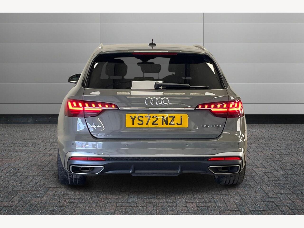 "Exhaust system with 2 visible tailpipe trim elements and rear apron",