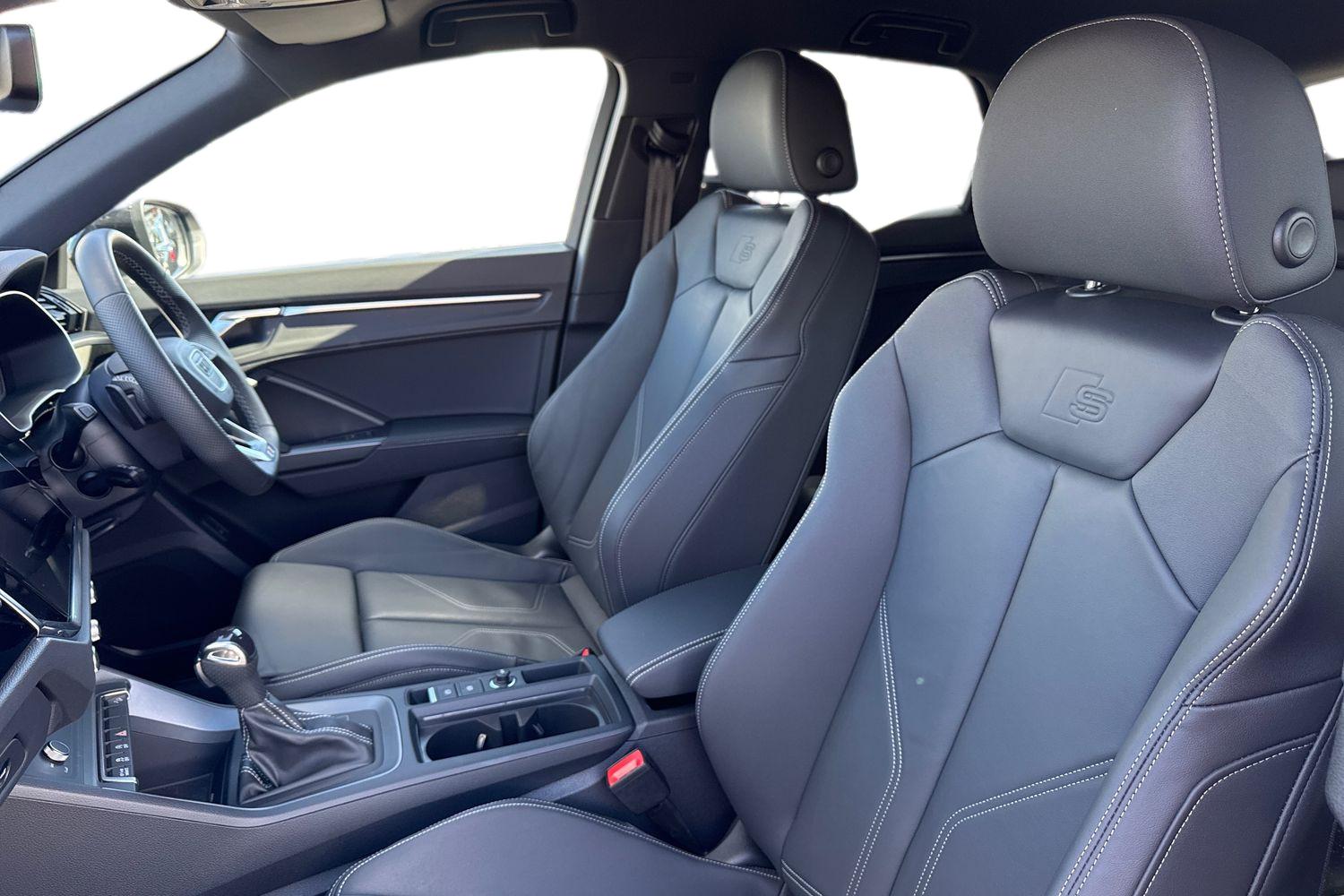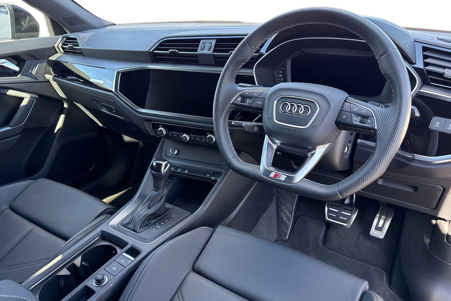 "features": "Amazon alexa Integration, Audi drive select, Audi lane departure warning, Audi Virtual Cockpit - 10.25\" display, Bluetooth interface, Camera based traffic sign recognition, Legal emergency call, MMI Navigation Plus with high resolution 10.1 inch touchscreen colour display, Power operated tailgate, Progressive steering, Service interval indicator, Smartphone interface includes wireless Apple carplay/Android Auto, Start stop system with recuperation, Voice control system with natural language interaction, Sports suspension, 2 USB-C ports with charge and data functions, 6 passive loudspeakers, DAB digital radio module, Acoustic windscreen, Aluminium roof rails, Aluminium window trim, Anthracite black radiator grille, Auto dimming frameless rear view mirror, Body colour front spoiler blade, Body coloured bumpers, Electrically folding, adjustable and heated door mirrors with integrated LED side indicators and kerb view function for passenger side, Front and rear electric windows, Front fog lights, Front side air inlets in matt platinum grey, Grille vertical bars in aluminium silver/Matt, High gloss black finish B and C pillars, LED Dynamic rear indicators, LED headlights with LED daytime running lights, LED rear lights, LED third brake light, Privacy glass dark tinted rear and rear-side windows (from B-pillar backwards), Rain and light sensors, Rear diffuser grille in grained matt black, Rear diffuser strip in matt anthracite black, Rear side wing doors, Rear wiper, S line badges on front wings, S Line front and rear bumpers, Side skirt insert in matt Platinium grey, Variable front intermittent wipers, 12V socket in rear centre console, 3 seat bench in 2nd row, 3 spoke leather multifunction steering wheel features S badging and grips in perforated leather with contrast stitching, 40:20:40 folding with manual adjustment for 60:40 forwards/backwards position and backrest angle, Adjustable rear seat bench/backrest with centre armrest and cupholder, Black cloth headlining, Dual zone electronic climate control, Front and rear black floor mats with contrast stitching in rock grey, Front and rear headrests, Front and rear roof module including reading lights, Front centre armrest, Glove compartment lighting, Height and reach adjustable steering wheel, Illuminated door sill trims with S logo, ISOFIX child seat mounting for front passenger with airbag deactivation and outer rear seat including top tether attachment point for outer rear seats, Luggage compartment light, Manual front seats with height adjustment, Perforated leather gearknob, Single front passenger seat, Stainless steel luggage compartment sill finisher, Stainless steel pedals, Ambient lighting pack - Q3, Non smoking pack - Q3, 3x3 point rear seatbelts, 6 airbags - Driver, front passenger, curtain and side windows, Audi pre-sense front with pedestrain and cyclist recognition, Electrically operated child locks on rear doors, Electromechanical parking brake, Electronic stabilisation control including ABS, ASR and EDL, Front seatbelt reminder, Hill descent control, Hill hold assist, Pre sense basic, Seatbelt monitoring, Tyre pressure warning, Warning triangle and first aid kit, Anti theft alarm, Anti theft wheel bolts, Immobiliser, Remote central locking, Aluminium look interior elements, Dark matt brushed aluminium inlay, Detail dashboard around MMI touch colour display in glass look, black with surround in aluminium look, Leatherette door armrest, ",