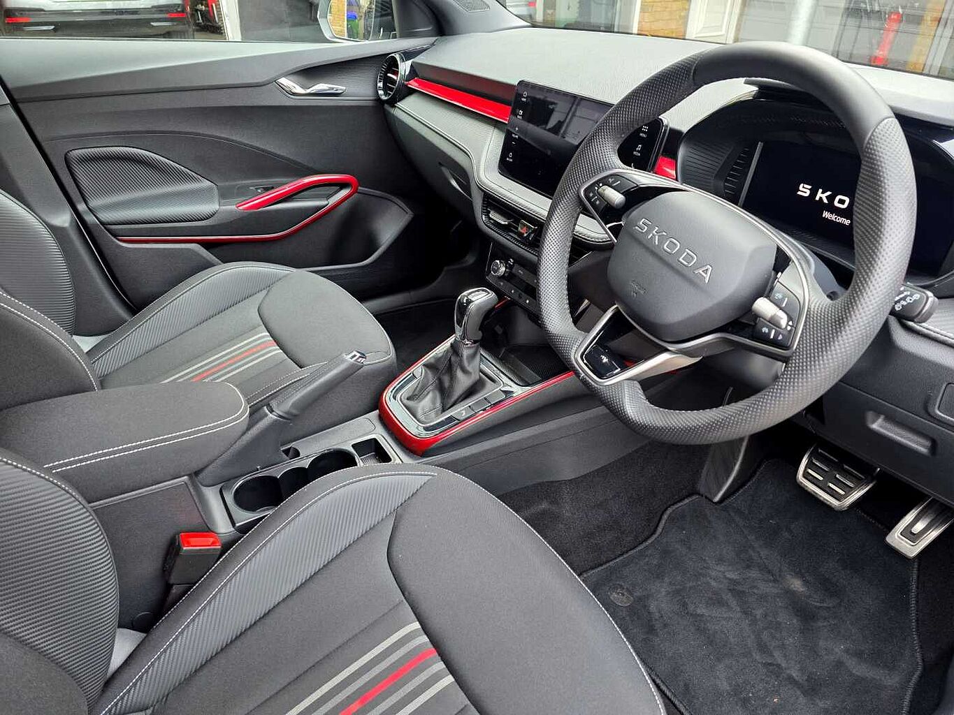 "features": "Advanced driver attention and drowsiness monitor, Bluetooth connection, Driver alert system, Electromechanical power steering, Exterior temperature gauge, Service interval indicator, Traffic sign recognition, Virtual cockpit with 10.25\" colour display, Wireless SmartLink for Apple CarPlay and Android Auto, 6 Speakers (4 in front and 2 in rear), 9.2\" colour display skoda navigation system with voice control and web radio, Auxiliary socket for external MP3 player, DAB digital radio reception, Auto dimming rear view mirror, Black radiator grille, Body coloured bumpers, Door mirror integrated indicators, Dynamic headlight range control, Front and rear electric windows, Front window wiper intermittent control, Ice scraper in fuel cap, LED 3rd brake light, LED daytime running lights with coming and leaving home feature, LED rear lights, Monte Carlo badging, Privacy glass, Rear LED fog light, Rear side wing doors, Rear window wiper with washing nozzles, Roof mounted spoiler, SKODA tailgate lettering in black, Sports bumpers, Unique dark chrome design logo on alloy wheels, 2 LED reading lights in front and rear, 3 rear headrests, Aluminium pedals, Backrest split and folding, Black headlining, Central console with fixed cup holder and storage box, Chrome handbrake release button, Door sills with fabia badging, Dual zone air conditioning with climatronic electronic control, Fabric/artificial leather upholstery, Front centre armrest, Front sports seats, Gearshift knob/handle in leather, Hand brake lever handle in leather, Height adjustable front headrests, Height adjustable front seats, Height adjustable steering wheel, ISOFIX and TopTether anchorage points to the outer rear seats, ISOFIX and TopTether on the front passenger seat, Luggage compartment lighting, Manually adjustable lumbar support in front seats, Metallic painted red central console cover, Metallic red interior door handles, Pollen filter, Rear seat bench unsplit, Single front passenger seat, Skoda lettering on steering wheel, Sun visors with mirror and airbag label on passenger side, Textile floor mats, Ticket holder, Umbrella in drivers door, Ambient lighting pack - Fabia Hatchback, Convenience pack - Fabia, Light and view pack plus - Fabia, 3-point height adjustable front seats belts with pretensioner and force limiter, Automatic warning lights in case of crash, Driver and passengers airbag with switch off function, e-Call+, ESC including ABS, MSR, ASR, EDS, HBA and XDS, Front and rear seat belt warning, FRONT ASSIST (AEB City and AEB Inter Urban), Front side airbags, Head airbags, Hill hold control, One tone horn, Pedestrian protection, Three rear 3-points safety seat belts with pretensioner and force limiter including stop function for outer rear seat belts, Tyre pressure monitoring system, Anti-theft alarm system including immobiliser, interior monitoring, backup horn, and towing protection, Central locking with radio remote control, interior controls, SAFE function and 2 foldable keys, Carbon effect door and side trim panels, Carbon effect lower decorative trim with white stitching, Monte carlo air vents, Red metallic upper decorative trim, Anti-theft wheel bolts protection, Super-low rolling resistance tyres, ",