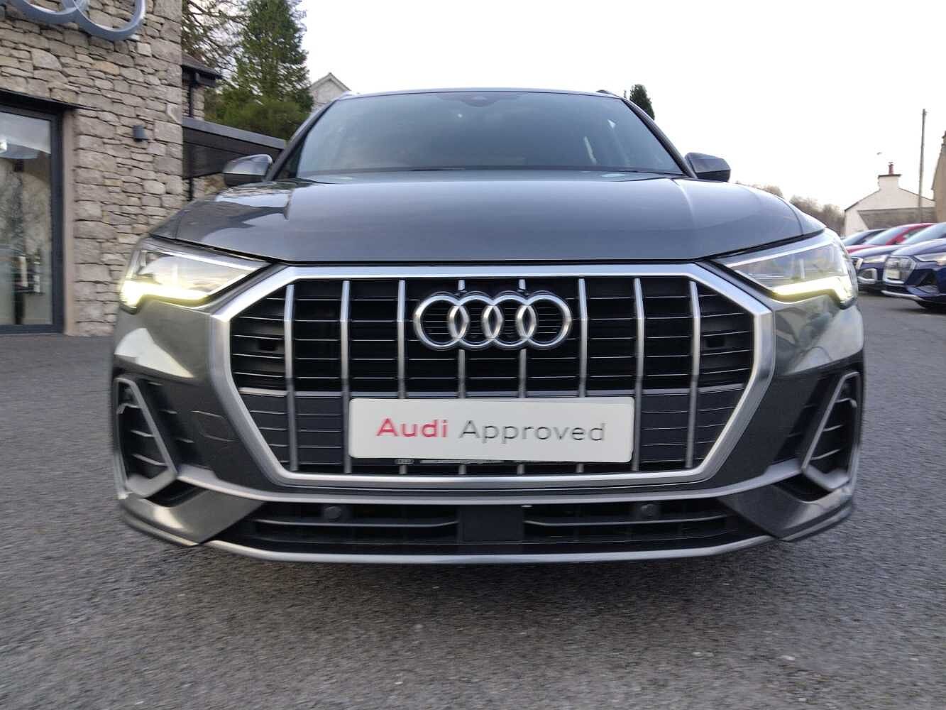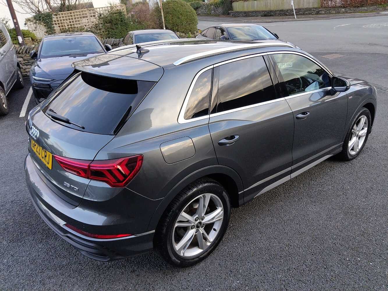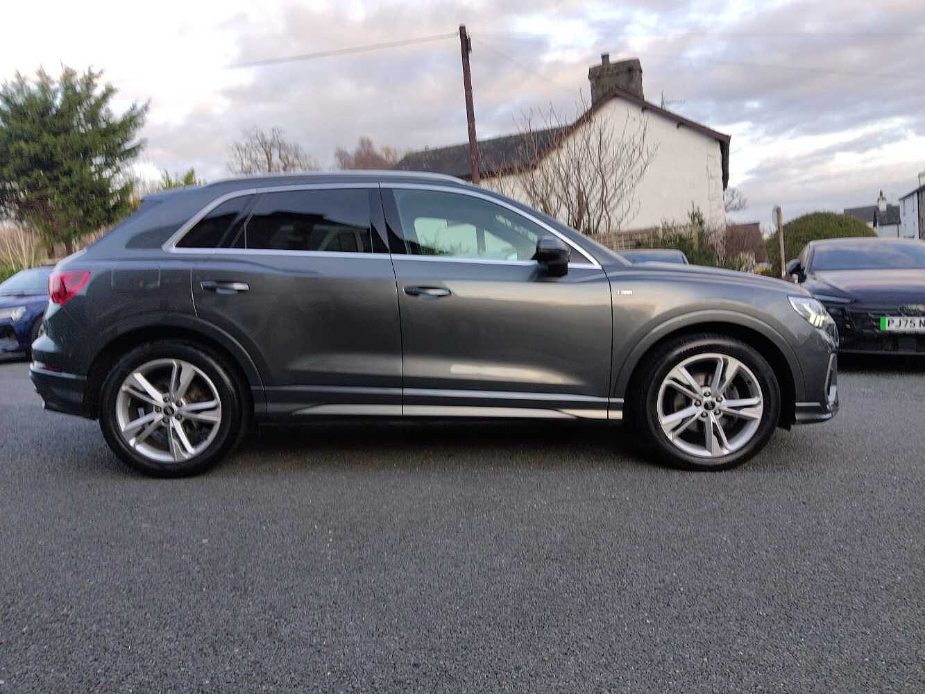 "features": "Amazon alexa Integration, Audi drive select, Audi lane departure warning, Audi Virtual Cockpit - 10.25\" display, Bluetooth interface, Camera based traffic sign recognition, Legal emergency call, MMI Navigation Plus with high resolution 10.1 inch touchscreen colour display, Power operated tailgate, Progressive steering, Service interval indicator, Smartphone interface includes wireless Apple carplay/Android Auto, Start stop system with recuperation, Voice control system with natural language interaction, 3 pin 10 amp domestic charging cable, 3.6 kw On-board charger, Type 2 mode 3 32 amp charging cable, Type 2 socket for AC charging, 2 USB-C ports with charge and data functions, 6 passive loudspeakers, DAB digital radio module, Acoustic windscreen, Auto dimming frameless rear view mirror, Black roof rails, Electrically folding, adjustable and heated door mirrors with integrated LED side indicators and kerb view function for passenger side, Front and rear electric windows, Front fog lights, Grille vertical bars in aluminium silver/Matt, High gloss black finish B and C pillars, LED Dynamic rear indicators, LED headlights with LED daytime running lights, LED rear lights, LED third brake light, Privacy glass dark tinted rear and rear-side windows (from B-pillar backwards), Rain and light sensors, Rear diffuser grille in grained matt black, Rear diffuser strip in matt anthracite black, Rear side wing doors, Rear wiper, S line bumpers in contrasting Manhattan grey, Variable front intermittent wipers, 12V socket in rear centre console, 3 seat bench in 2nd row, 40:20:40 folding with manual adjustment for 60:40 forwards/backwards position and backrest angle, Adjustable rear seat bench/backrest with centre armrest and cupholder, Black cloth headlining, Dual zone electronic climate control, Front and rear black floor mats with contrast stitching in rock grey, Front and rear headrests, Front and rear roof module including reading lights, Front centre armrest, Glove compartment lighting, Height and reach adjustable steering wheel, Illuminated door sill trims with S logo, ISOFIX child seat mounting for front passenger with airbag deactivation and outer rear seat including top tether attachment point for outer rear seats, Luggage compartment light, Manual front seats with height adjustment, Perforated leather gearknob, Single front passenger seat, Stainless steel luggage compartment sill finisher, Stainless steel pedals, Ambient lighting pack - Q3, Black styling pack - Q3, Non smoking pack - Q3, 3x3 point rear seatbelts, 6 airbags - Driver, front passenger, curtain and side windows, Audi pre-sense front with pedestrain and cyclist recognition, Electrically operated child locks on rear doors, Electromechanical parking brake, Electronic stabilisation control including ABS, ASR and EDL, Front seatbelt reminder, Hill descent control, Hill hold assist, Pre sense basic, Seatbelt monitoring, Tyre pressure warning, Warning triangle and first aid kit, Anti theft alarm, Anti theft wheel bolts, Immobiliser, Remote central locking, Aluminium look interior elements, Detail dashboard around MMI touch colour display in glass look, black with surround in aluminium look, Leatherette door armrest, Piano black inlay, 19\" 5 twin arm design diamond cut audi sport alloy wheels in matt grey look, Tool kit, Tyre repair kit, ",