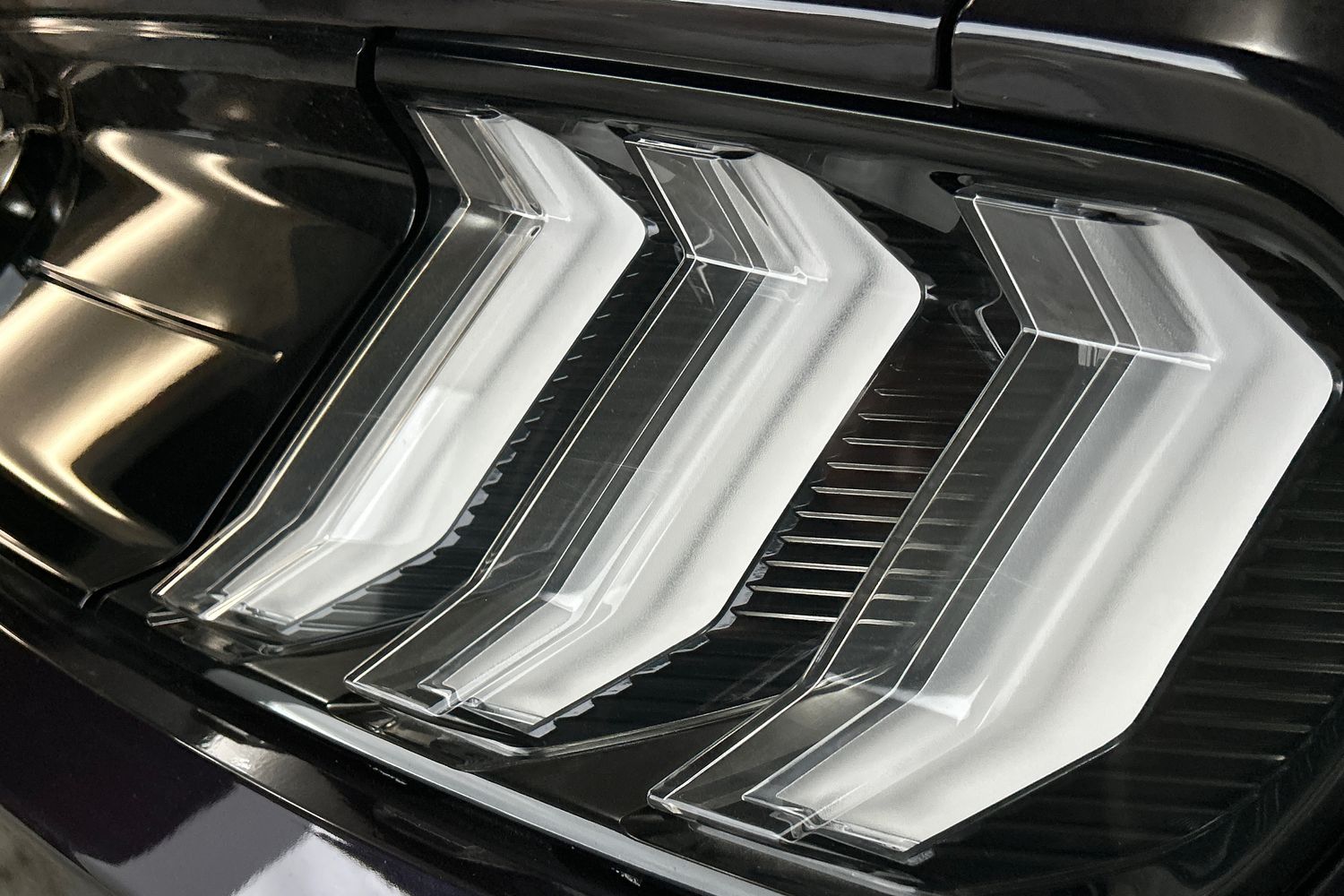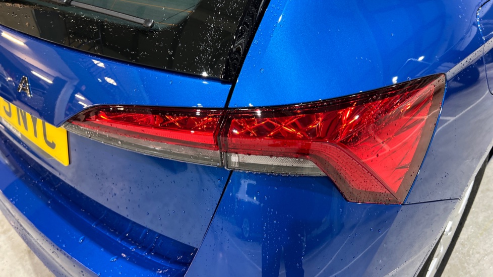 "Two part LED tailights in L-shape with components in smoked glass, brake light, LED turn indicator and rear fog light",