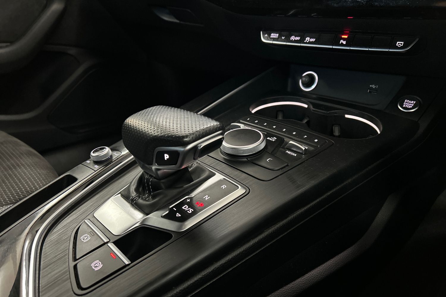 "2 front cupholder in centre console with clamping elements and matt black inlay",