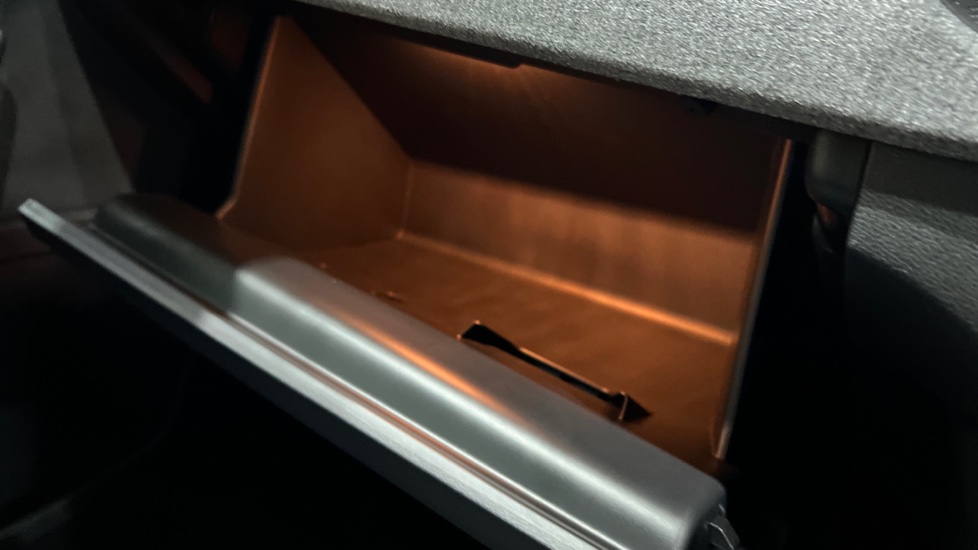"Illuminated glove compartment with separate small compartment",