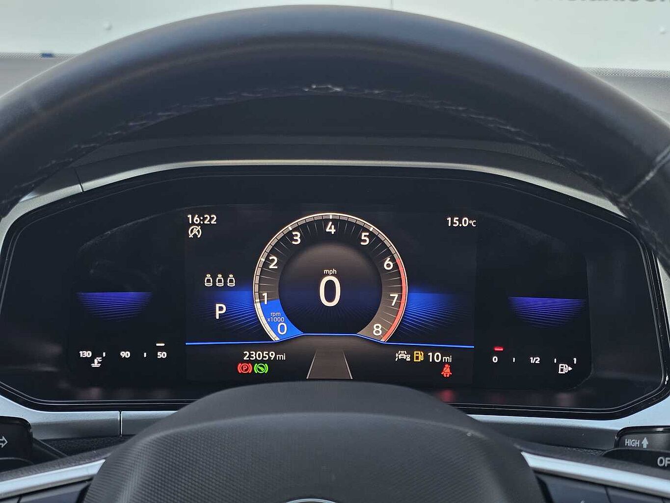 "Instrument cluster with speedometer with mph readout, tachometer, fuel gauge and oil temperature gauge",
