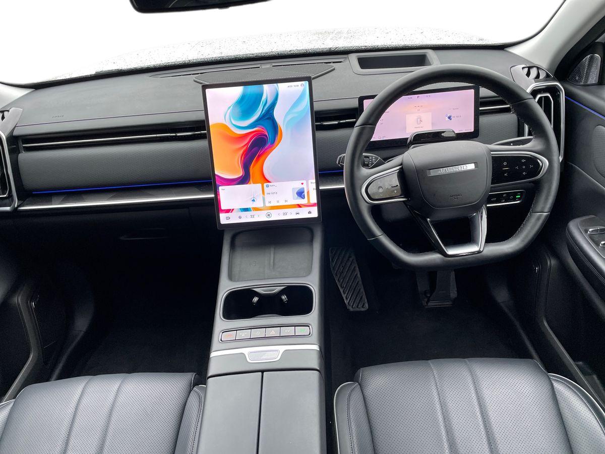 "features": "10.25\" LCD instrument cluster, 14.8\" portrait central LCD display, 3 driving modes Normal/Eco/Sport, 540 degree panoramic view camera with transparent view, Adaptive cruise control, Blind spot detection, Bluetooth handsfree system, Corner speed control assist, DAI Forward Departure System, Driver monitoring system, E-call safety system, Electric power steering, Emergency lane keep assist, Front and rear parking sensors, Front collision warning, Head up Display, ICA - integrated cruise assist, Integrated satellite navigation - Live traffic data with wifi hotspot, Intelligent active speed limit, Intelligent elude system, Intelligent speed assist, Lane control assist, Lane departure prevention, Lane departure warning, Multiple collision defence system, Power tailgate, Rear crossing traffic braking, Rear crossing traffic warning, Remote engine start, Remote HVAC start, Speed limiter, Traffic jam avoidance assistant, Traffic sign recognition, Wireless Apple CarPlay/Android Auto, Wireless mobile phone charging - 50w capacity, cooled, Independent rear suspension, 2 x Front USB, 1 x Type A, 1 x Type C (fast charging), 2 x Rear USB, 1 x Type A, 1 x Type C (fast charging), DAB Digital radio, Sony 8 speaker sound system, Auto dimming rear view mirror, Auto full beam LED headlights, Auto wipers, Automatic headlights, Body colour door handles, Electrically adjustable, heated and folding door mirrors, Exterior rear view mirror and seat memory, Follow me home headlight function, Front fog lights, Full length panoramic sunroof with opening front section, Heated rear window, High level LED brake light, Integrated antenna, LED daytime running lights, LED rear lights, One touch window function for all doors, Privacy glass, Rear side wing doors, Roof rails, Silent glass - windscreen and front side windows, Single layer roof spoiler, Tinted rear windows, Windows opening via remote, 12V power outlet - Boot, 12v power outlet - front, 12V socket in luggage compartment, 3 seat bench in 2nd row, 4 way adjustable steering column, 4 way driver lumbar support, 4 way electric adjustable passenger seat, 6 way power adjustable driver seat, 60/40 split folding rear seat backrest, Cooled ventilated front seats, Driver and passenger sun visors with vanity mirror, Dual zone air conditioning with second row outlet, Front armrest with interal storage and upper storage tray, Front deluxe seats, Front headrests, Front reading light, Heated front seats, Heated steering wheel, Luggage compartment light, Multi function steering wheel, PM2.5 air purification system, Rear bench armrest with integrated cupholder, Rear headrests, Selectable multi colour ambient lighting, Single front passenger seat, Synthetic leather steering wheel, Synthetic leather upholstery, Welcome seats - retract to welcome driver when door opened, 2 x isofix, 3 point seatbelts on all seats, ABS/EBD, Autonomous emergency braking, BAS (Brake Assist System), Child locks, Door Opening Warning, Downhill assist, Dual front airbags, Electronic brake force distribution, Electronic parking brake with auto hold, Electronic Stability Programme, Front and rear side airbags, Front centre airbag, Knee airbags, Passenger airbag manual switch off, Power limited seatbelts with pre-tensioners, height adjustable with CLT, Tyre pressure monitoring system, Uphill assist, Anti theft alarm, Automatic door locking, Engine immobiliser, Keyless start button, PEPS (passive entry and passive start) with walkaway locking, Dark colour interior, 19\" Alloy wheels, Tyre repair foam, ",