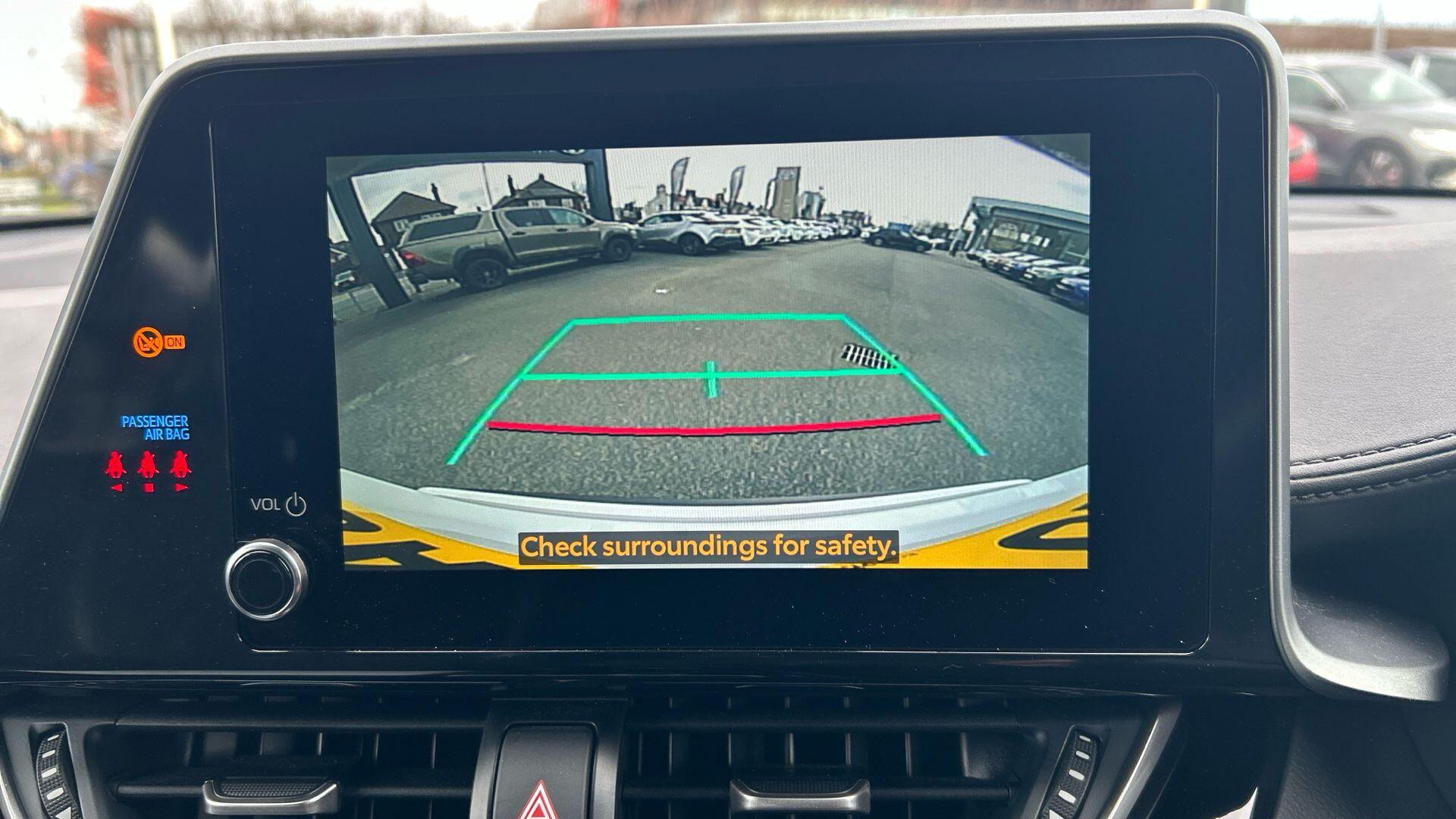 "Rear view display in display audio screen with dynamic guide lines",