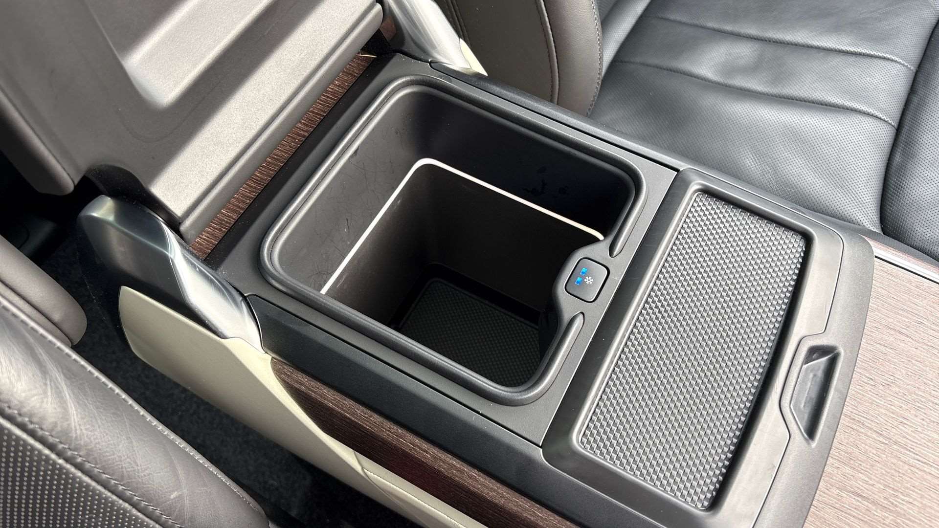 "Centre console with illuminated storage compartment with sliding cover and two drinks holders",
