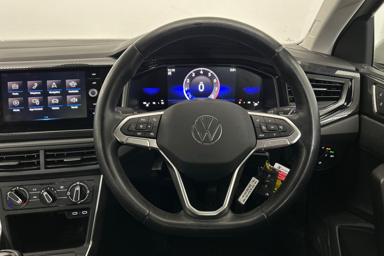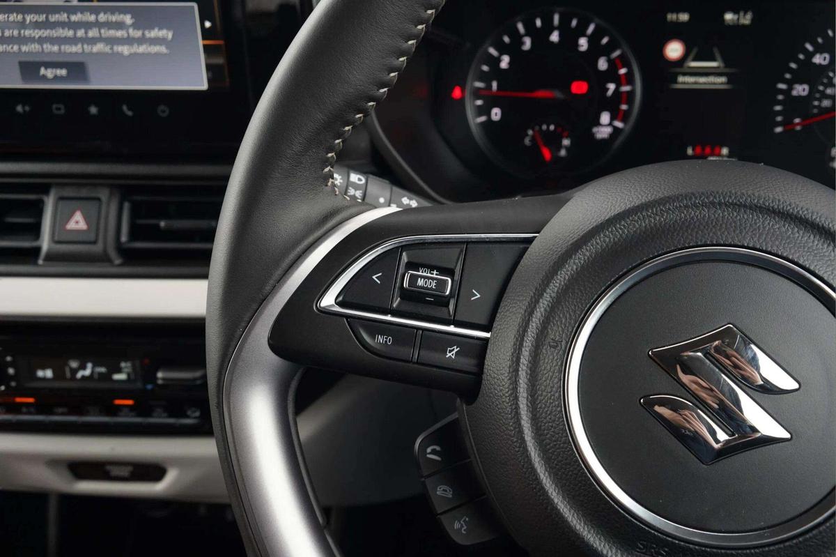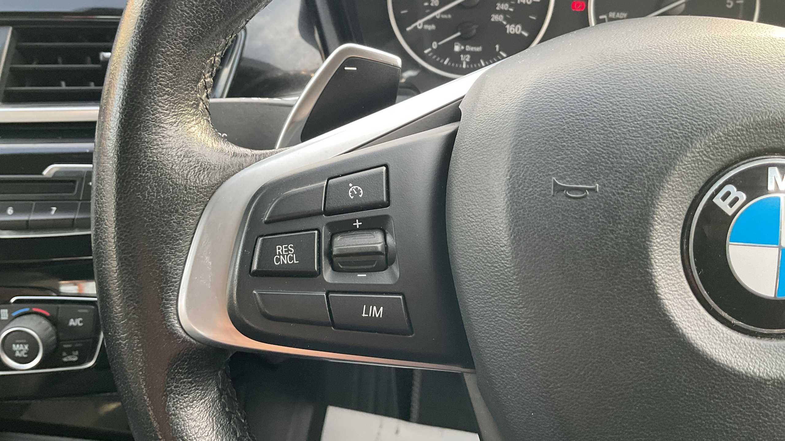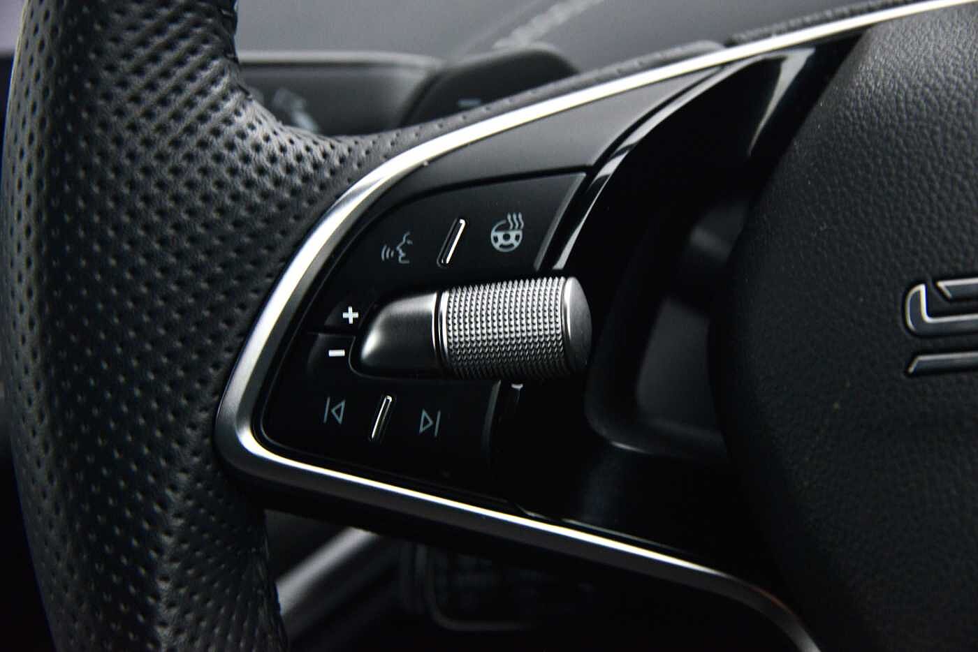 "2 spoke black leather heated multi function steering wheel with paddles for recuperation level selection",