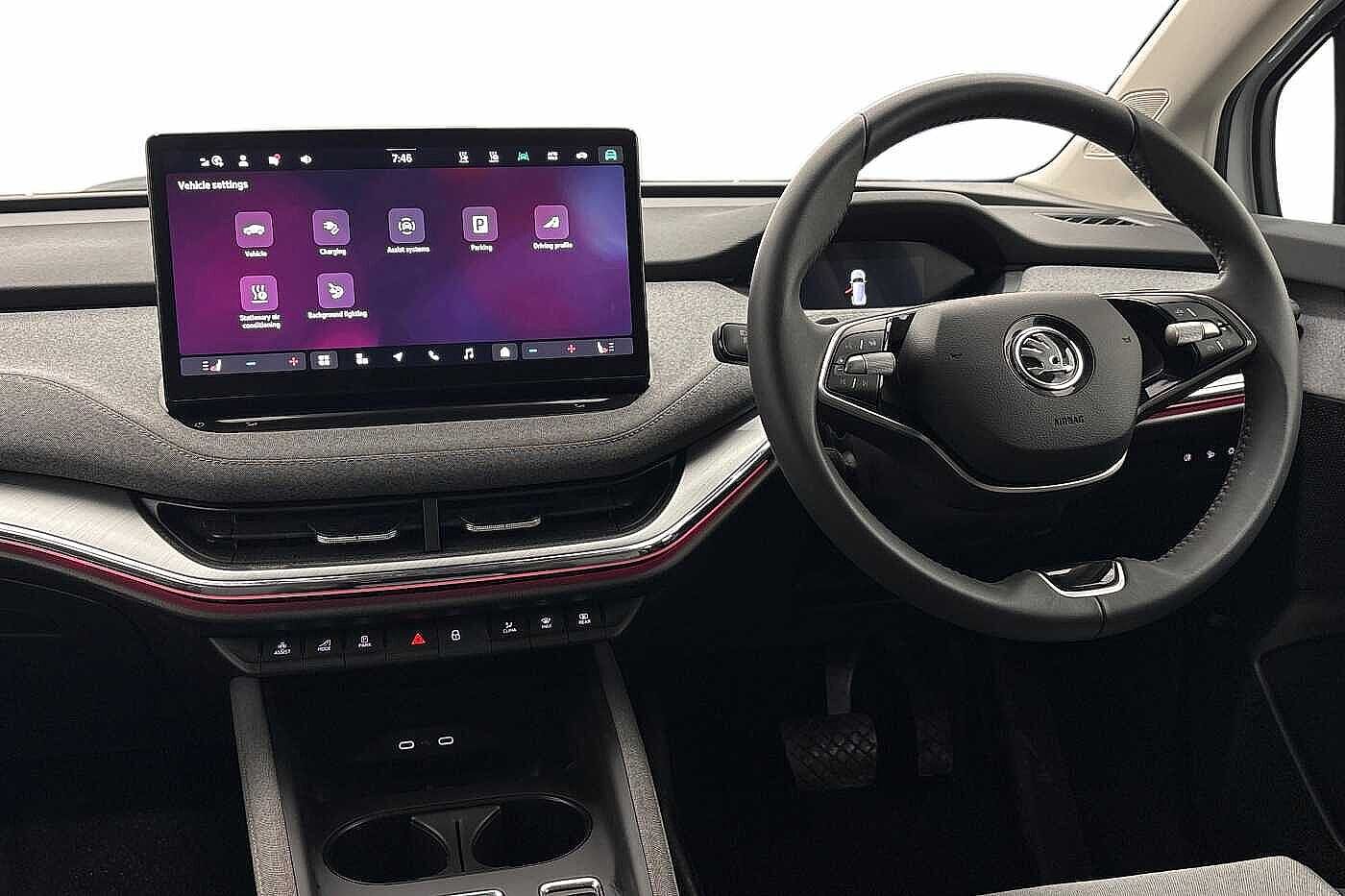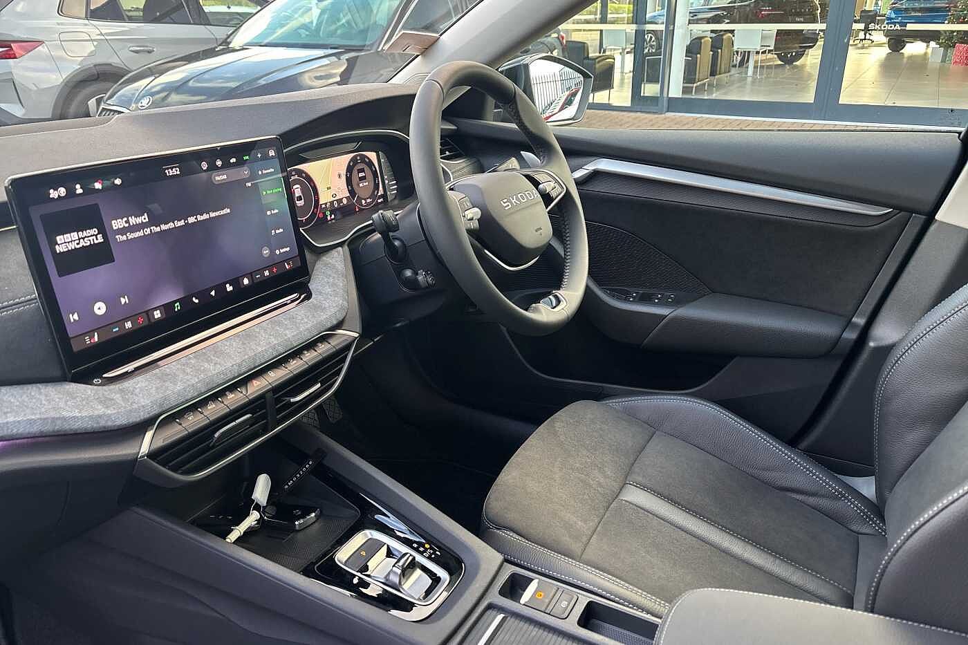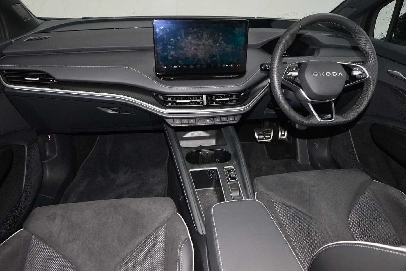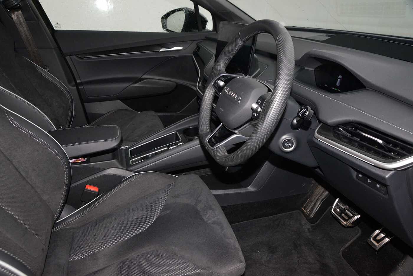 "features": "13\" touchscreen display, 15W wireless charging with cooling function, 5\" Digital cockpit, Blind Spot Detection (BAS), Bluetooth system, Drive mode selector, Driver alert system, E-call, Electrically operated tailgate with kick activation (virtual pedal), Electronic engine sound, Emergency steering support with turn assist, Exterior temperature indicator, Front and rear parking sensors, Front assist with assisted automatic braking to vehicles, pedestrians and cyclists, Gesture control, Predictive adaptive cruise control with traffic jam assist, Progressive steering, Satellite navigation system, Skoda Connect iV remote services with charging, air conditioning and smart schedules, Speed assist, Speed limiter, Traffic sign recognition, Travel assist plus with emergency assist, lane assist plus with narrow lane assist and urban evasive steering support, Voice control system, Washer fluid level indicator, Wi-Fi hotspot, Wireless smartlink, 175 kW DC charging, 6m mode 3 cable (32A), Four wheel drive, Sports suspension, 45W USB-C ports (charging + data) front and rear, DAB Digital radio, Auto dimming rear view mirror, Body colour door mirrors and handles, Body colour door sills, Dashboard and door moulding light in multiple colours, Door mirror memory, Dynamic headlight range control with cornering light function, Electric adjustable heated folding door mirrors with boarding spots and welcome logo, Electric front and rear windows, Full LED Matrix beam headlights with variable light distribution, Gloss black roof rails, Gloss black tailgate lettering, Gloss black window surround, Heat insulating darkened glass in side and rear windows, Heat insulating glass in windshield, Integrated fog light with all-weather function, LED daytime running lights, LED rear lights with animated indicators, LED third brake light, Light assistant (coming and leaving home), Privacy glass and acoustic side windows, Radiator grille in gloss black, Rain and light sensors, Rear side wing doors, Rear spoiler, Rear window wiper with washer system and intermittent control, Safety reflectors on front and rear doors, Sports bumpers, Variable front intermittent wipers, 12V socket in boot, 1x umbrella, 3 rear headrests, 3 seat bench in 2nd row, 3-spoke leather heated sports multifunction steering wheel with paddles for recuperation level selection, 60:40 foldable rear seat with sliding adjustment and backrest angle adjustment, Aluminium pedals, Black artificial leather dashboard with grey stitching, Black headlining, Black textile floor mats with grey stitching, Boot lighting, Electrically adjustable driver seat with memory function, Extended interior noise suppression, Front courtesy lights, Front reading lights, Front sport seats, Front sports head restraints, Heated front seats, Height adjustable drivers seat, Height adjustable front passenger seat, High centre console with armrest, Isofix child seat fittings in outer rear seats with top tether, Isofix child seat preparation for front passenger seat, Laminated soft-touch plastic knee rest, LED ambient lighting, Manual rear window blind, Manually adjustable steering column, Massage functionality for drivers seat, Microsuede/artificial leather upholstery, Pollen filter, Power adjustable lumbar front seats, Rear reading lights, Single front passenger seat, Sliding boot cover, Sunvisors with illuminated vanity mirrors, Tri zone climate control, White front and rear footwell lighting and door handle lighting, Advanced package with head up display - Enyaq, 3 point height adj front seatbelts + pretensioners, Auto door release and activation of warning lights in the event of an accident, Central interaction airbag, Crew protection assist, Driver and front passenger airbags, ESC (incl. ABS+MSR+ASR+EDS+HBA+DSR+RBS+MKB), Front and rear three point safety belt on all seats, Front disc brakes, Front passenger airbag deactivation switch, Front side airbags with curtain airbags, Height adjustable seatbelts, Power child locks, Rear drum brakes, Rear side airbags, Two tone horn, Tyre pressure monitor, Visual and acoustic seat belt reminder, Warning lights in front doors, Anti theft alarm system with interior monitoring, backup horn and towing protection, Central locking system with SAFE system, Keyless entry and start/stop system advanced with walk away locking, Carbon effect decorative inserts, Matte black lining around drive selector, Anti-theft wheel bolts protection, Tyre repair kit with compressor, ",
