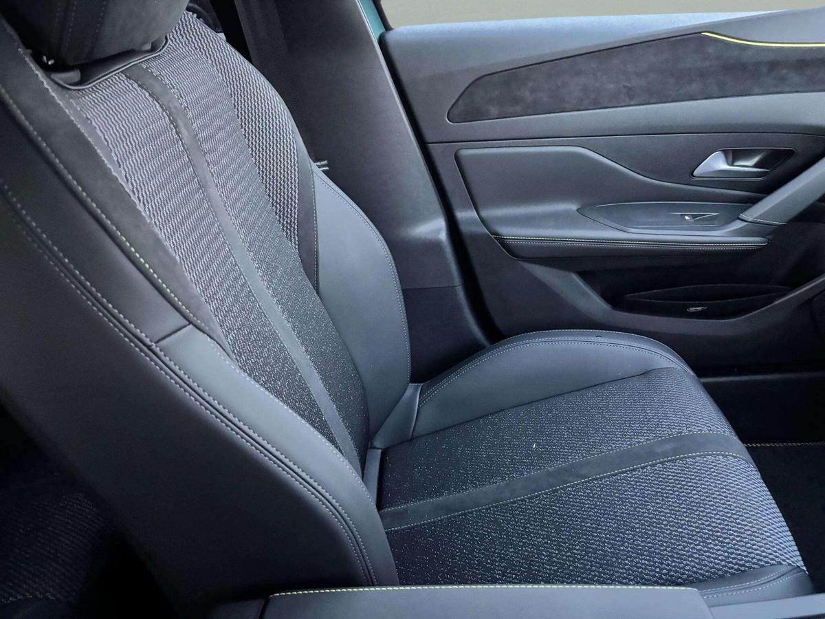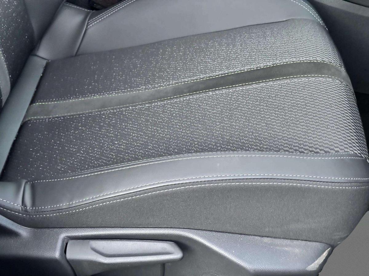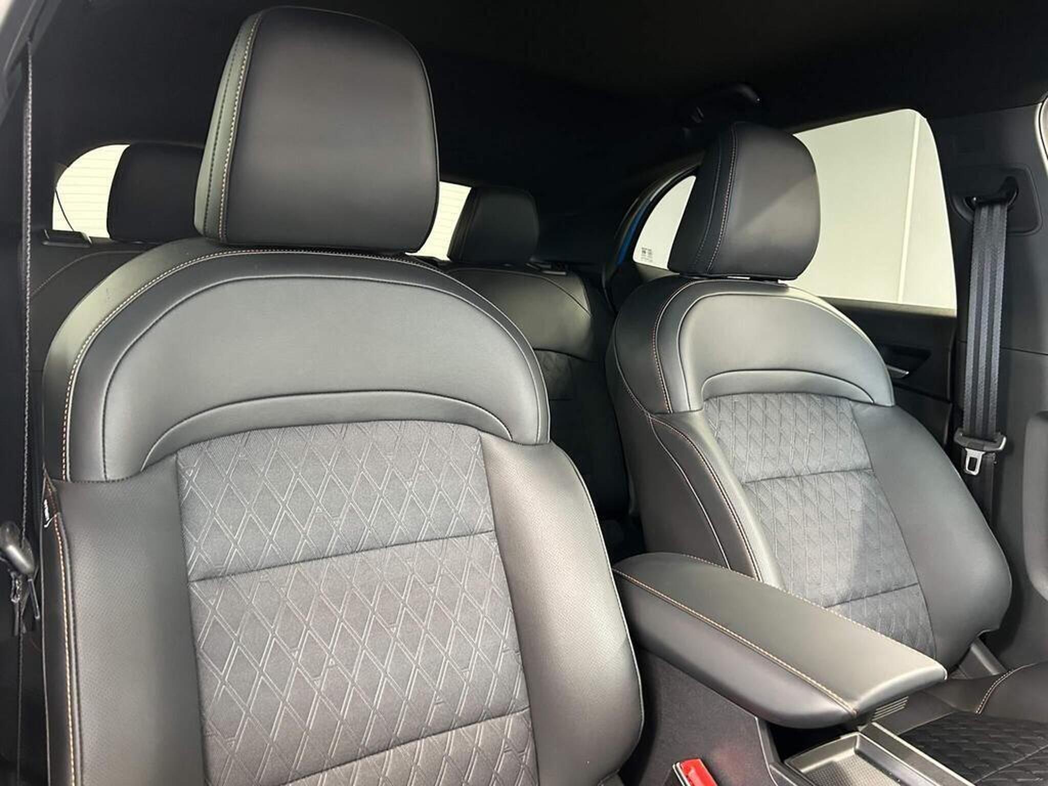 "Leather style with cloth inserts upholstery",