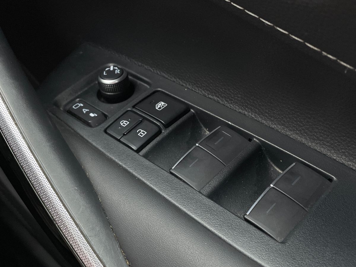 "Window control switches with black trim"