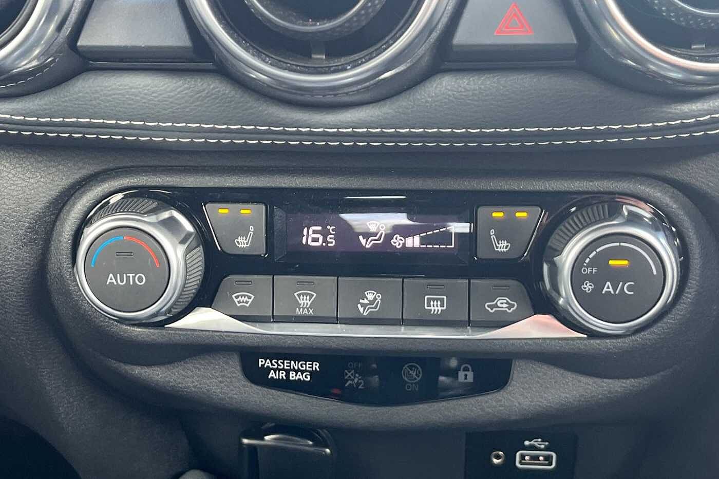 "features": "7\" full colour TFT screen combimeter, Apple CarPlay and Google Android auto, Drive modes select (Eco, normal and sport), eCall emergency call system, Emergency and breakdown call, Front parking sensor, Idle start/stop system, Intelligent lane intervention, Lane departure warning system, Nissan connect 8\" touch screen entertainment system, Nissan connect nav with TomTom traffic, Nissan connect services and Wifi connection, Outside temperature sensor, Power Steering, Rear parking sensor, Traffic sign recognition, Trip computer, Voice recognition, Gasoline particulate filter, 6 speakers, Bluetooth system, USB, Aux-in and 12V socket, DAB Digital radio, Rear console USB port, Auto dimming interior rear view mirror, Auto headlights, Automatic hazard signal with emergency stop signal, Body colour bumpers, Body colour door handles, Electrically adjustable door mirrors with integrated indicators, Follow me home headlights, Front and rear electric window with one touch driver window, Heated and auto folding door mirrors, High beam assist, LED daytime running lights, LED headlamps, LED rear fog lamp, LED rear lamps, Rain sensor windscreen wipers, Rear privacy glass, Rear side wing doors, Rear wiper, Three blink turn signal, 3 height adjustable rear headrests, 3 seat bench in 2nd row, 60/40 split folding rear seat, Automatic climate control, Card holder on driver sunvisor, Cloth upholstery, Driver and passenger sliding and reclining seats, Driver side rear coat hanger, Driver/passenger sunvisors and vanity mirrors, Front and rear cabin lights, Front armrest, Front door pockets with bottle holders, Front head restraints, Front/rear passenger grab handles, Grey synthetic leather kneepad, Height adjustable driver's seat, Internal chrome door handles, Leather gearshift knob, Leather steering wheel, Luggage board, Luggage space lighting, Monoform sporty seats, Multifunction steering wheel, Rear door bottle holders, Single front passenger seat, Steering wheel mounted gearshift paddles, Telescopic steering wheel adjustment, Two cupholders in front centre console, Two rear isofix child seat anchorage points with top tether, Welcome light and console tray ambient lighting, ABS with EBD and brake assist, Active ride control, Active Trace Control, Driver and passenger airbags, Driver and passenger side airbags, Electric handbrake with auto hold function, Electronic Stability Programme (ESP), Front and rear curtain airbags, Height adjustable seatbelts, Hill start assist, Intelligent emergency braking with pedestrian and cyclist recognition, Rear door child safety locks, Seatbelt reminder for driver/front passenger and rear seats, Single tone horn, Three 3 point rear seatbelts, Traction control, Tyre pressure monitoring system, VDC Dynamic Vehicle Control, Ventilated rear brake discs, Alarm, Immobiliser, Intelligent Key with push button starter, Remote central locking, ",