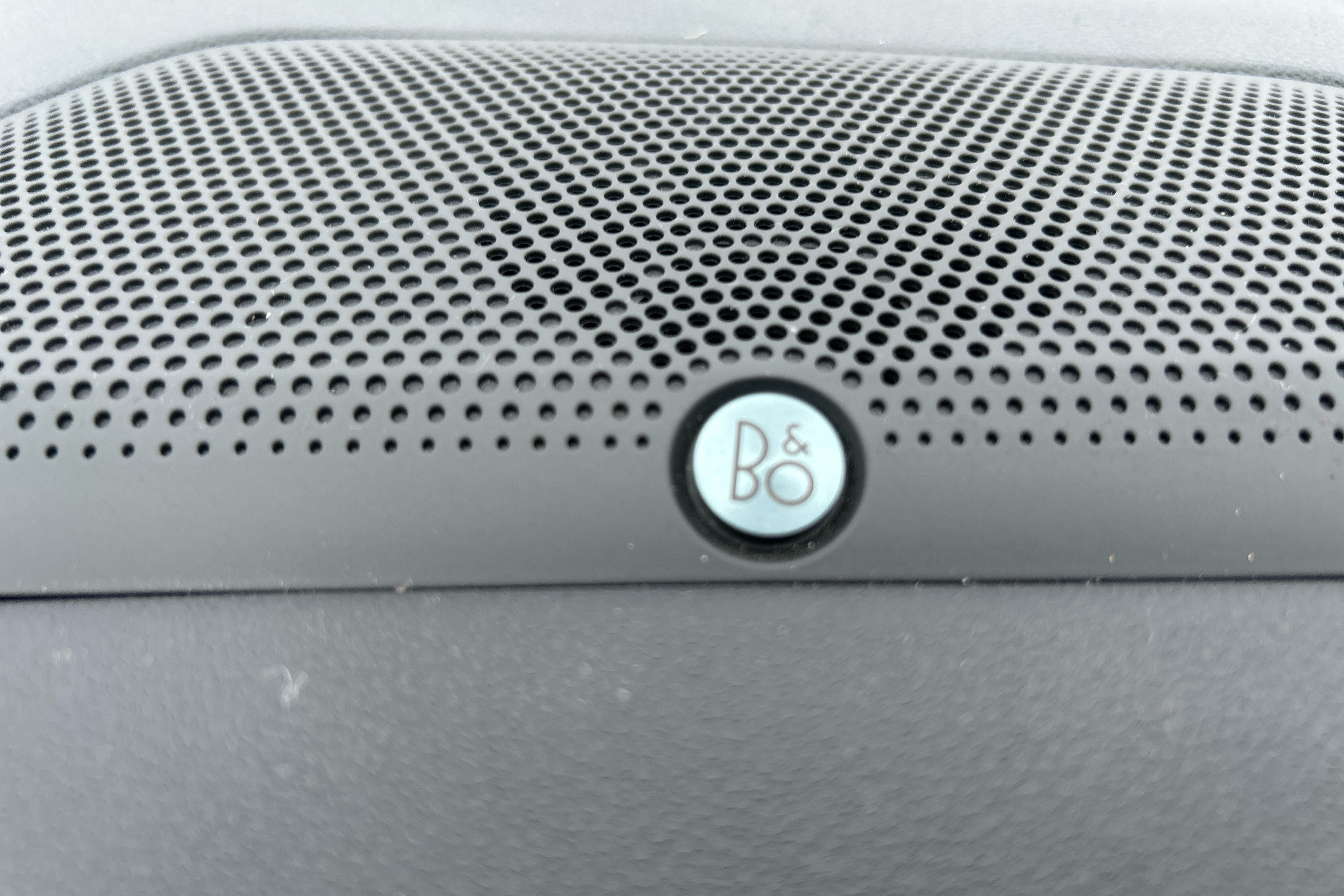 "Metallic grey upper decorative trim",