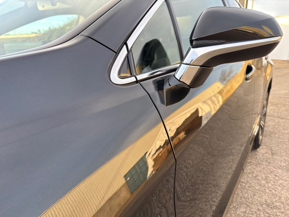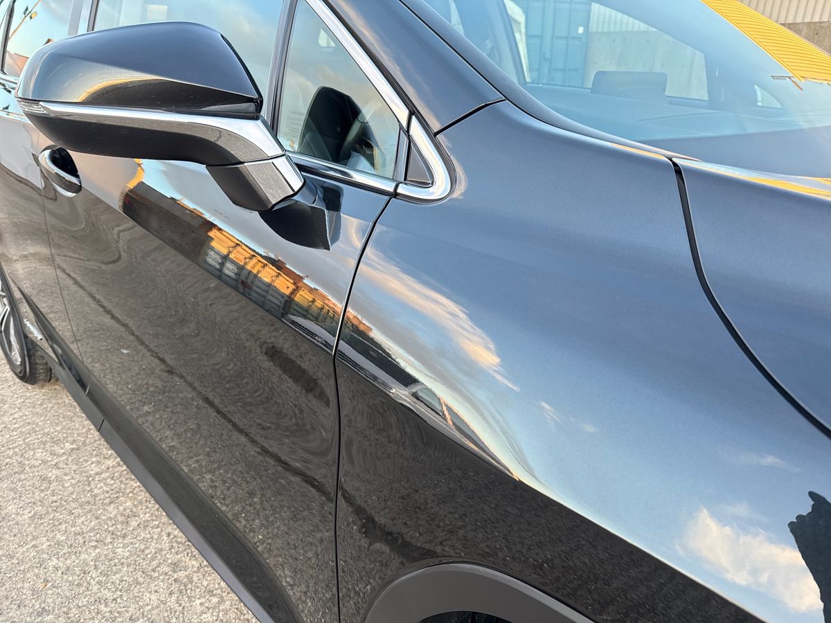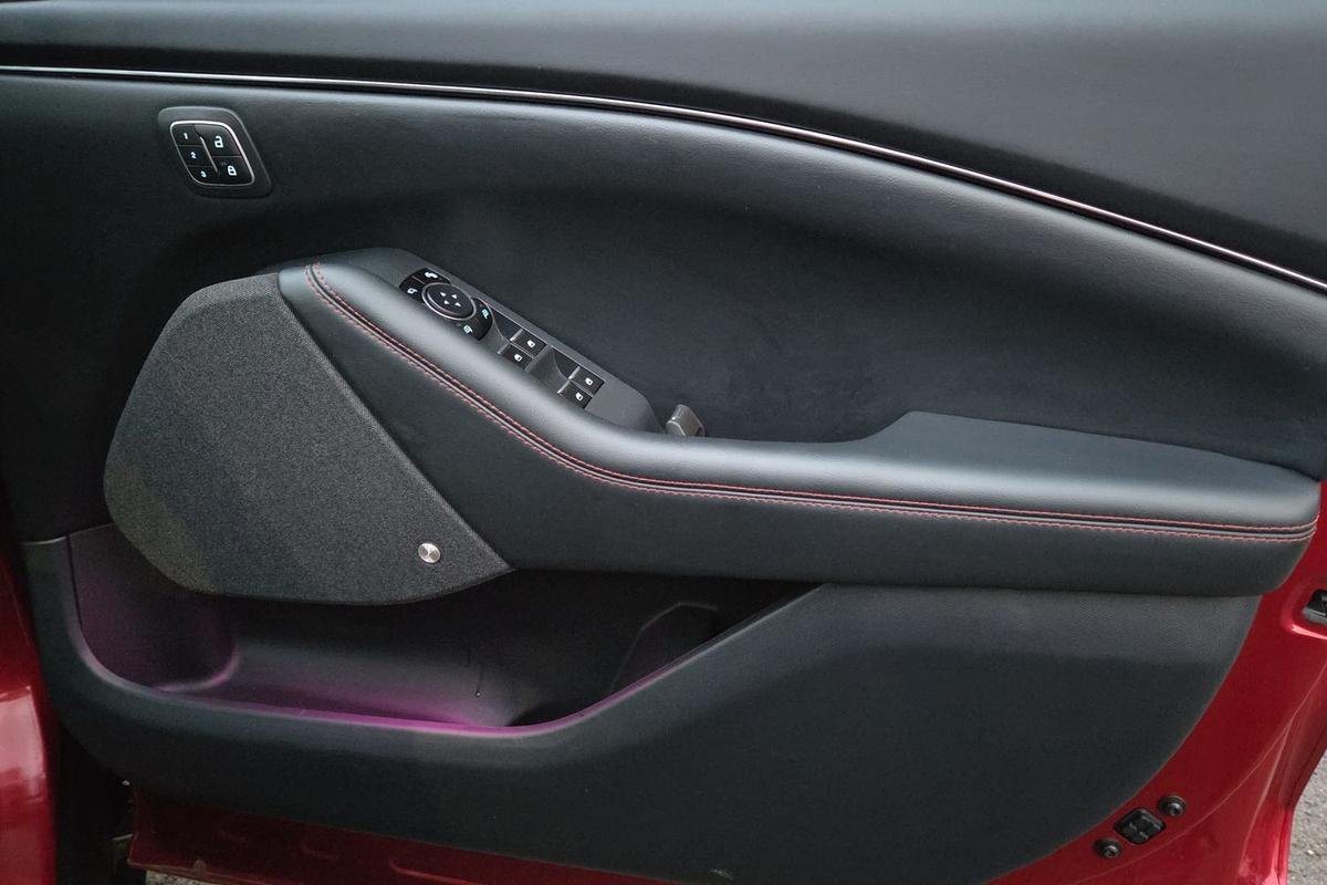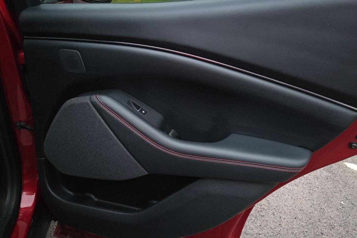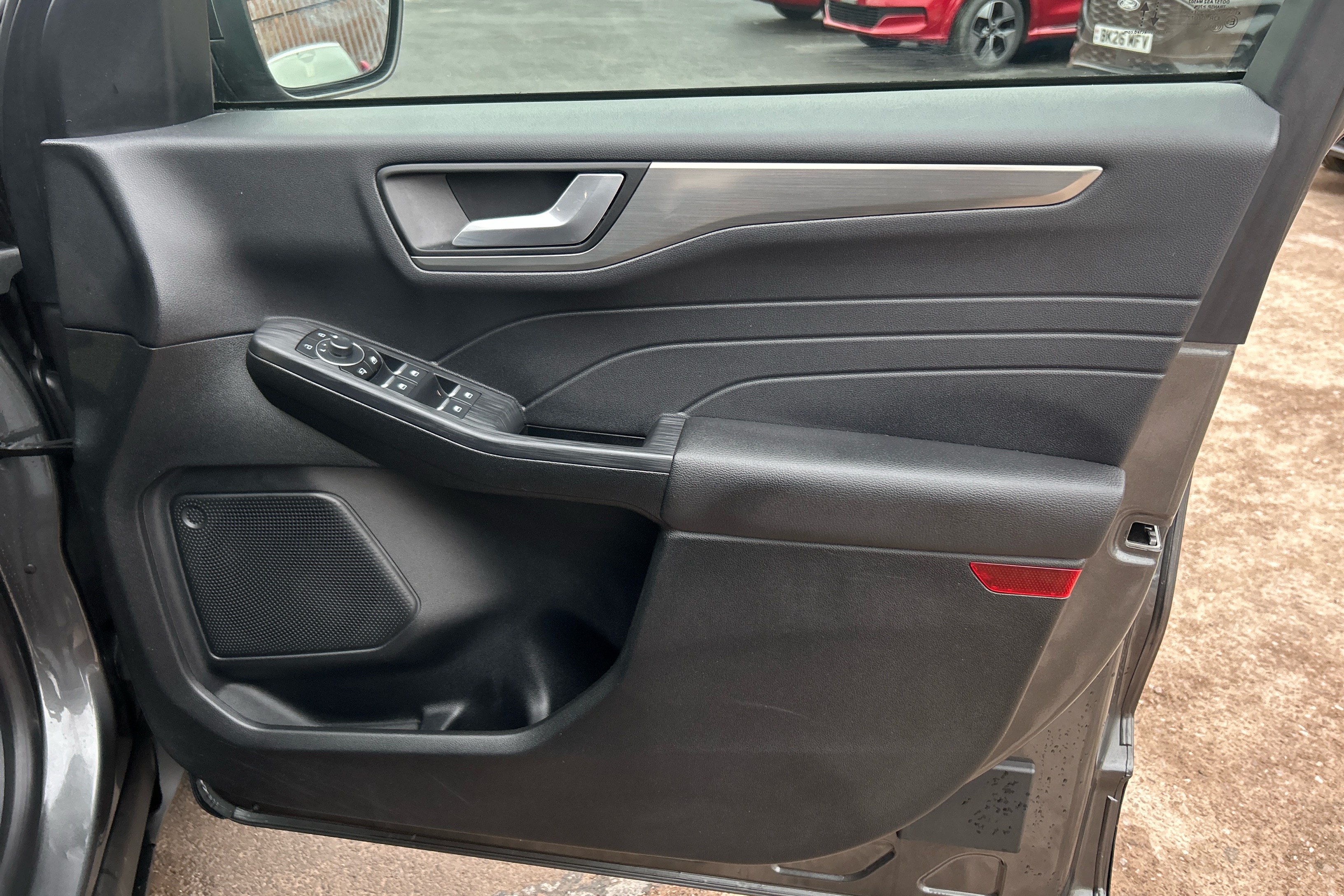 "Satin black door and side trim panel in front",