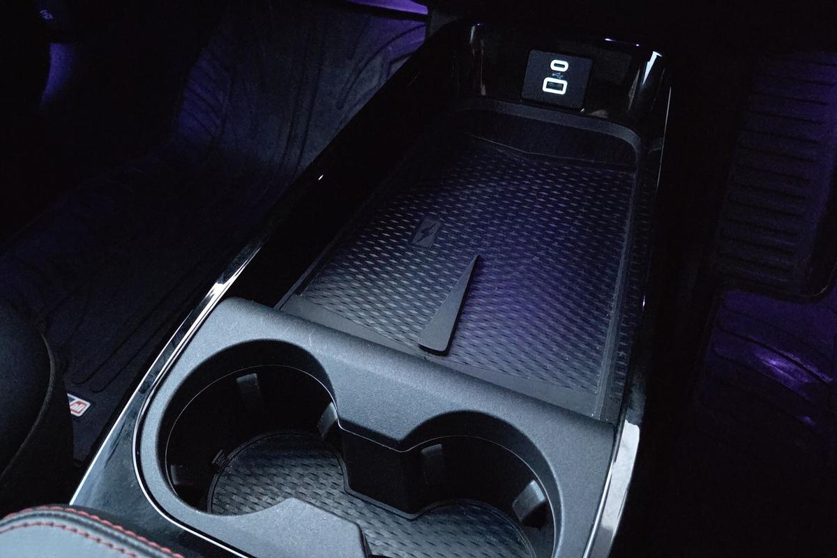 "Central console with removable cup holder and storage box",