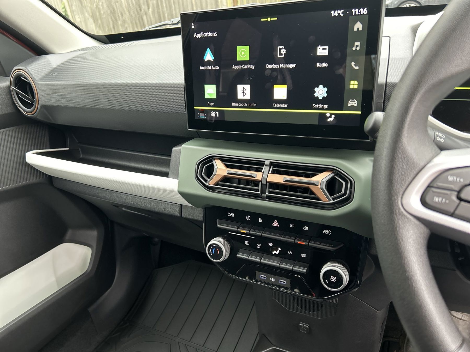 "features": "Cruise control + speed limiter, Driver attention warning, e-Call (emergency call), Electric power assisted steering, Emergency Stop Signal (ESS), Event data recorder, Front and rear parking sensors, Lane departure warning system, Lane keep assist system, Rear camera, Rescue code, Traffic sign recognition with speed alert/Intelligent speed assist (ISA), DC charger, Mode 3 charging cable, 10\" MediaNav live, DAB radio, smartphone replication, bluetooth, 2 speakers, apple carplay, android auto, USB-C, USB socket, 3 speed windscreen wipers, Automatic headlights, Automatic wipers, Body colour door handles, Copper door mirrors, Electric adjustable/heated door mirrors, Electric rear windows, Front and rear Bumper, body coloured with black elements and decorative insert, Front electric windows, Heated rear window, High level third rear brake light, LED automatic daytime running lights, LED Y shape Dacia signature lighting, Rain sensor, Rear fog lights, Rear side wing doors, Rear wash wiper, Tinted windows, 1 piece folding rear bench seat back, 12v socket in front, Door sill protection with topographic pattern, Fabric/TEP upholstery, Front headrests, Grey interior door handles, Height adjustable steering wheel, ISOFIX attachment on outer rear seats, Manual air conditioning, Rear headrests, Rubber floor mats with topographic pattern, Single front passenger seat, Soft feel steering wheel, 6 airbags - Driver, front passenger, curtain and side airbags, ABS+EBA, Alcohol imoboliser predisposal, Automatic Emergency Braking System (AEBS), Child locks on rear doors, Door open visual and audible warning, Driver and passenger seatbelt not fastened warning, ESP + Hill Start Assist, Front seatbelt pretensioners, Side impact protection, Two 3 point rear seatbelts, Tyre pressure monitor, Engine immobiliser, Remote central locking, Copper airvents inserts, Khaki dashboard decopart, 15\" steel wheels, Danube styler cover for 15\" steel wheels, Tyre inflation kit, ",