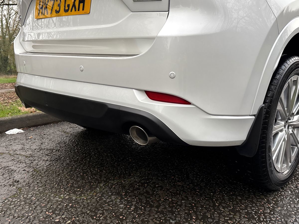"Left exhaust tailpipe with chrome finisher",