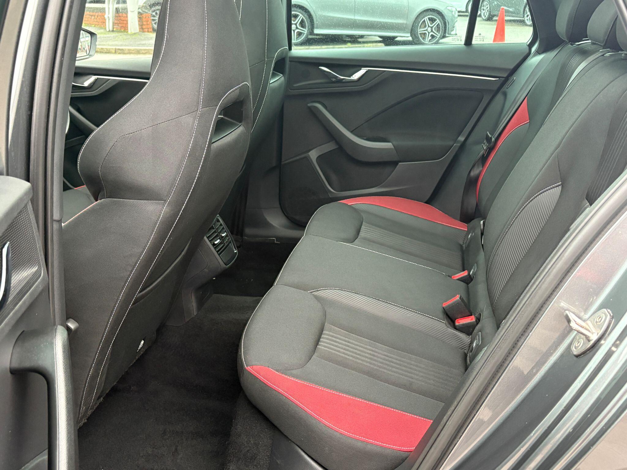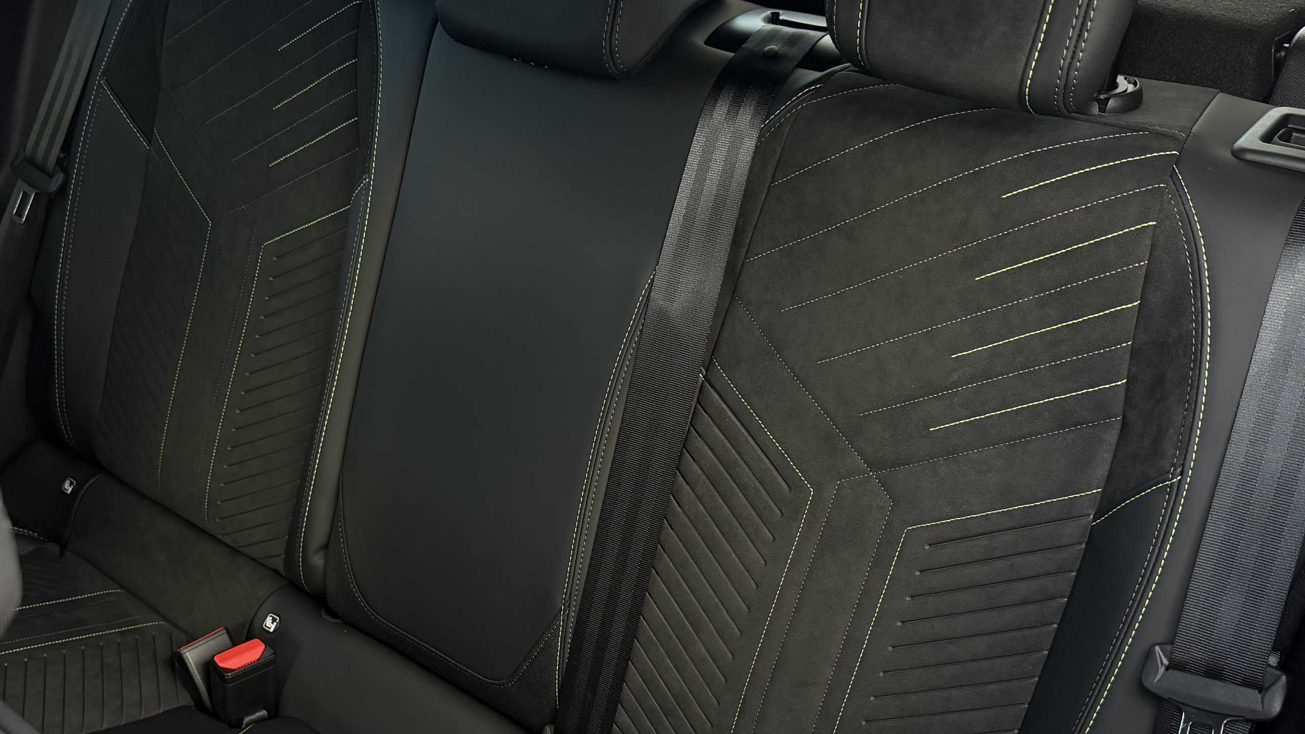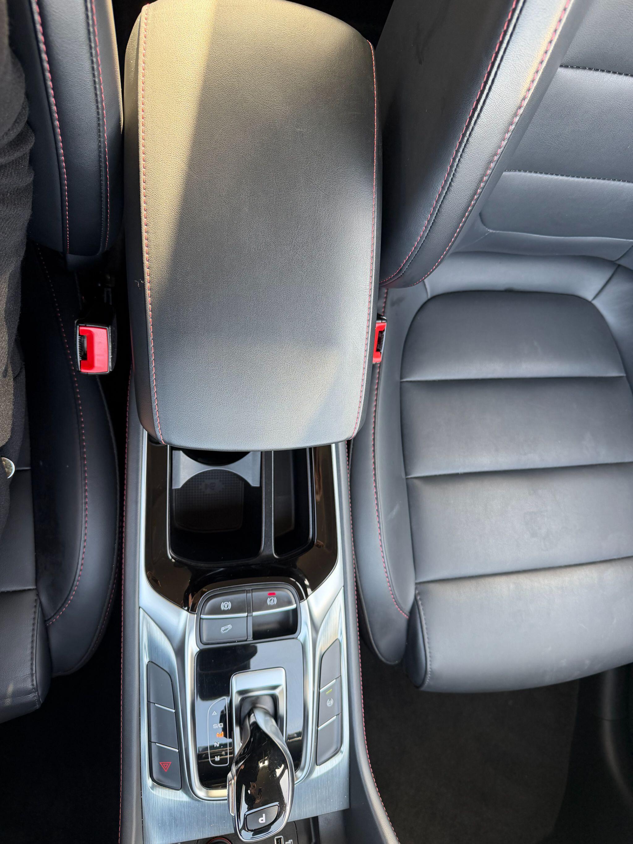 "Adamite green contrast stitching to front and rear armrest, front centre console, dashboard facia",