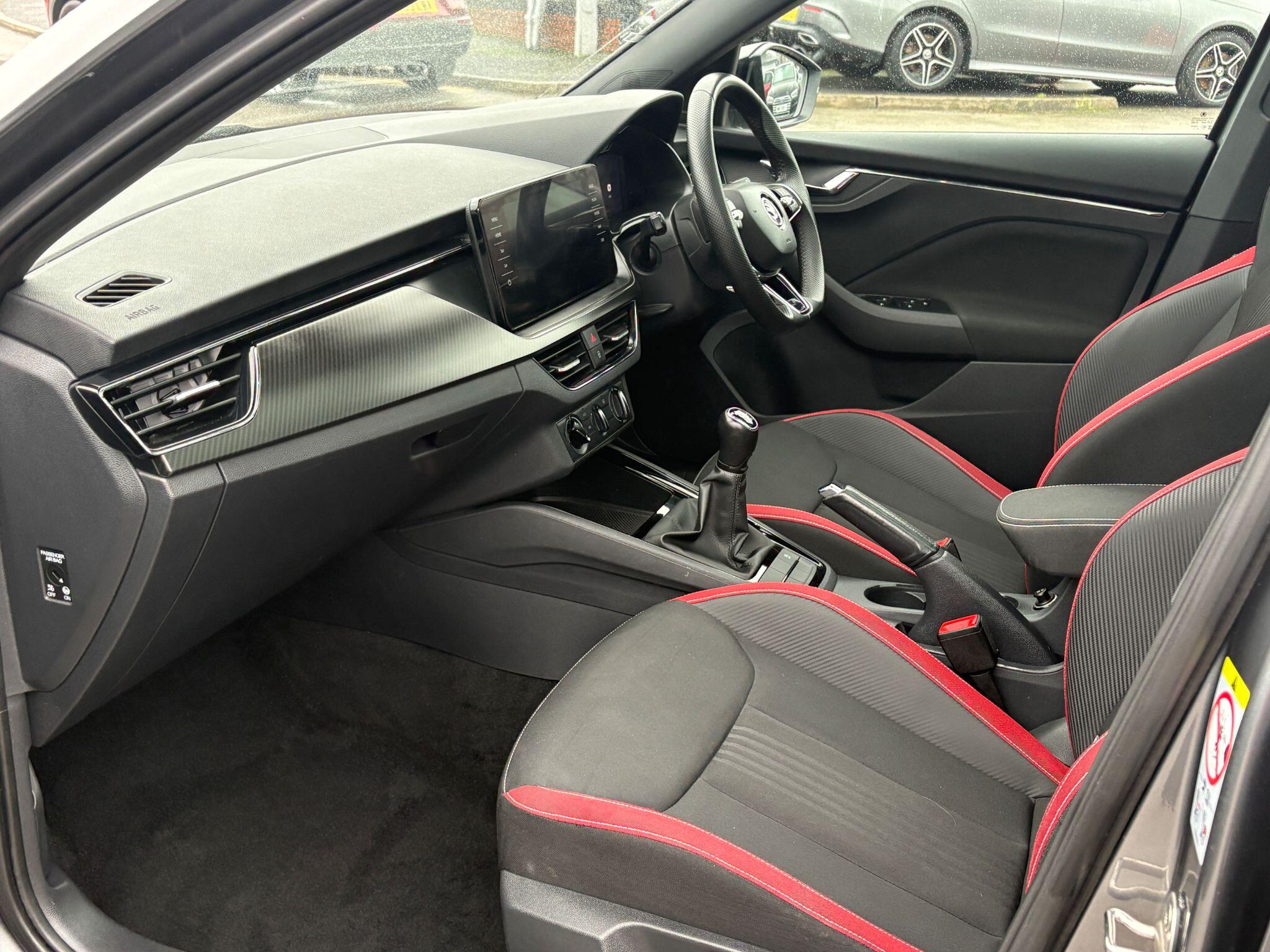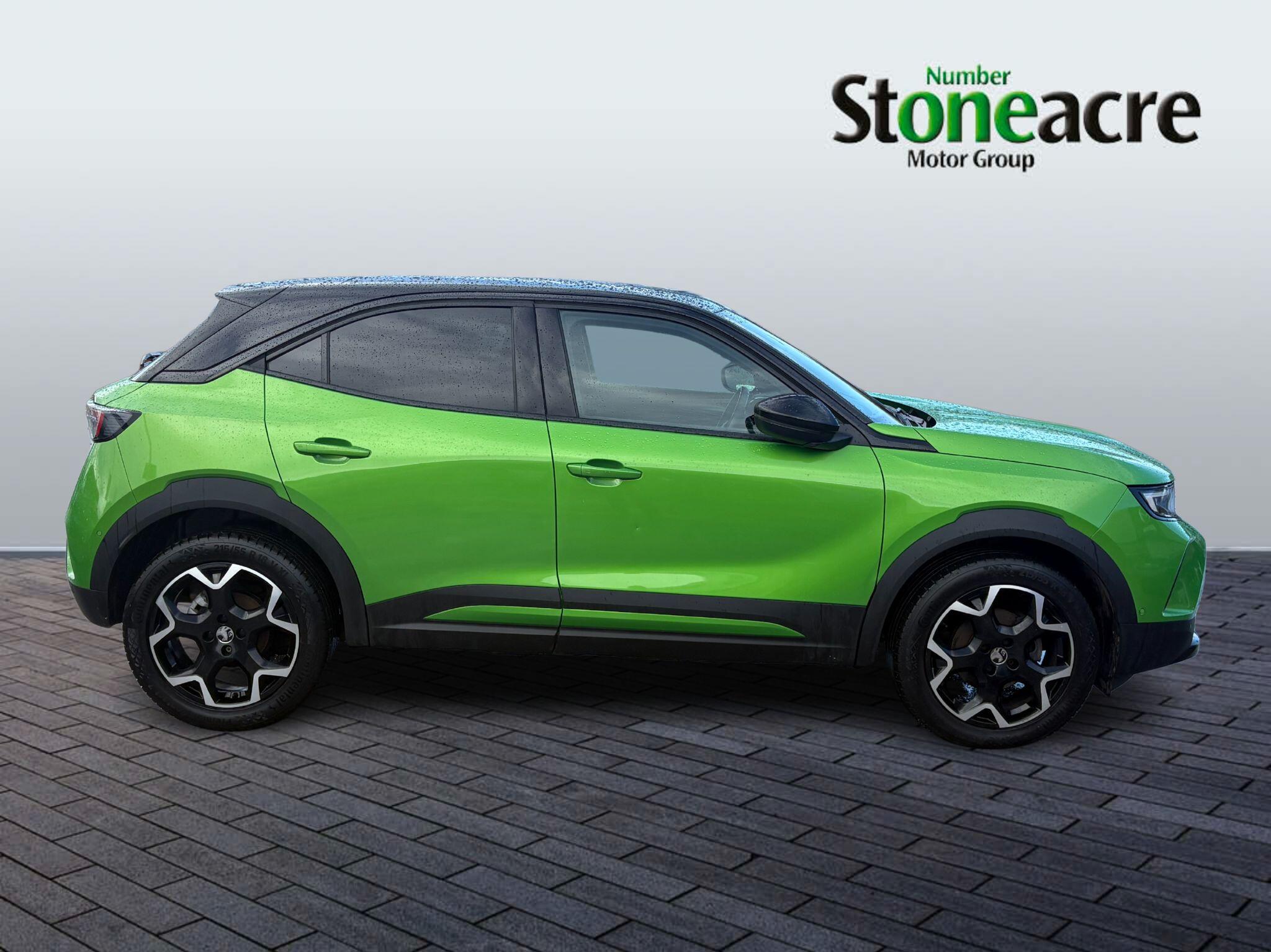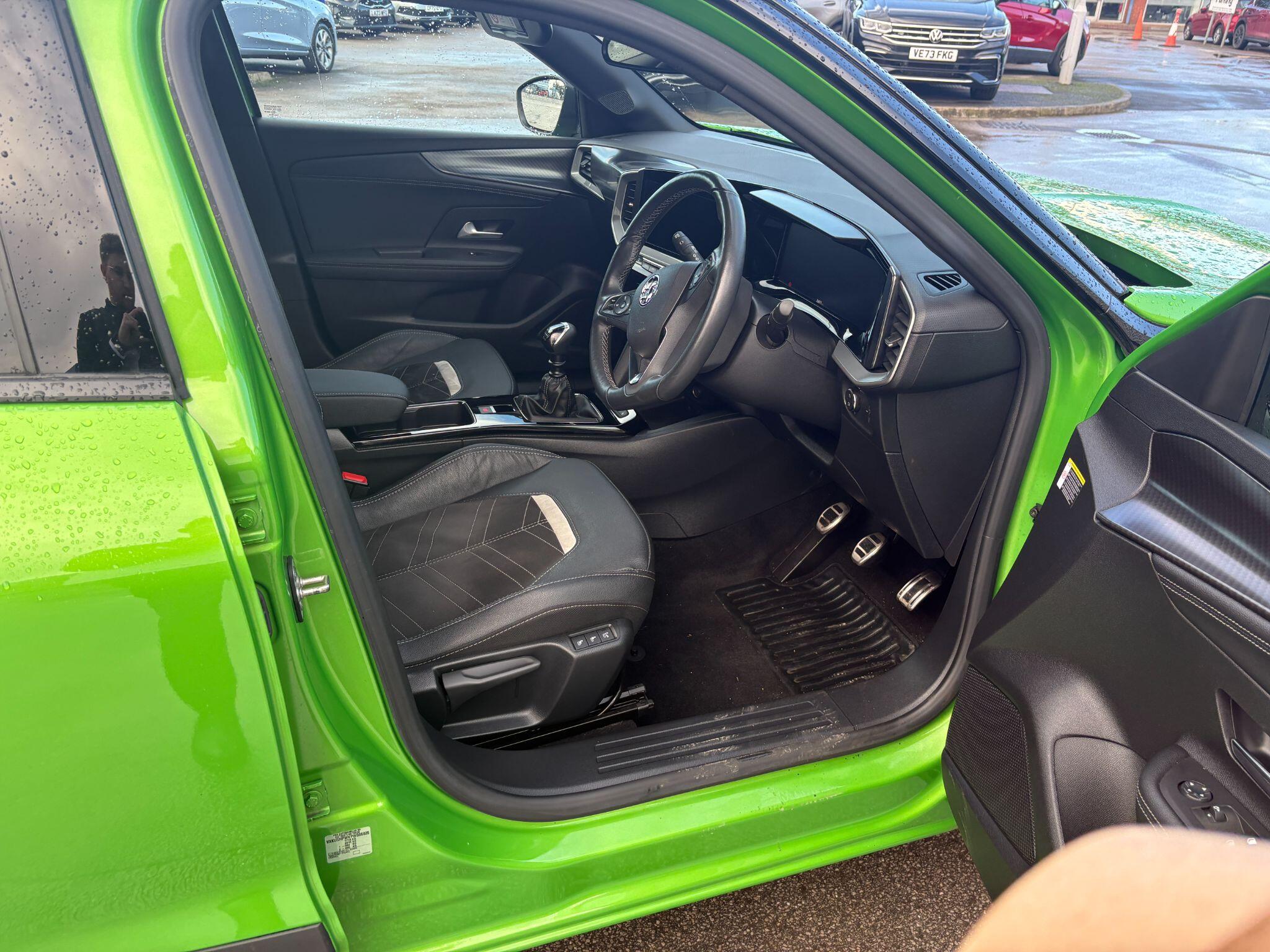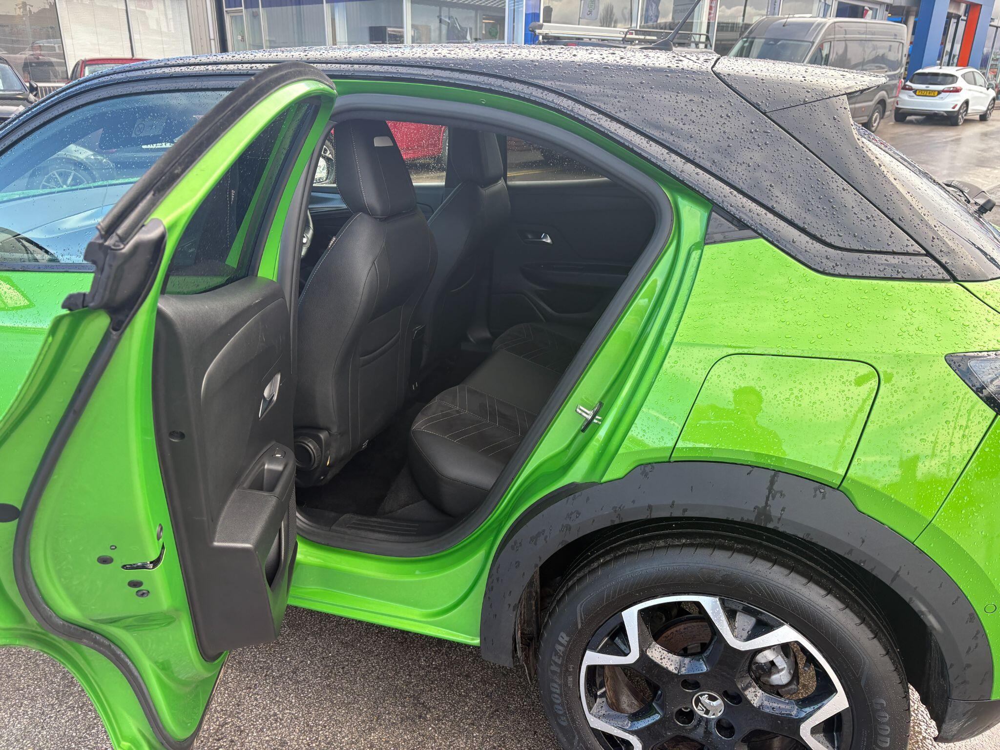 "Adamite green contrast stitching to front and rear armrest, front centre console, dashboard facia",