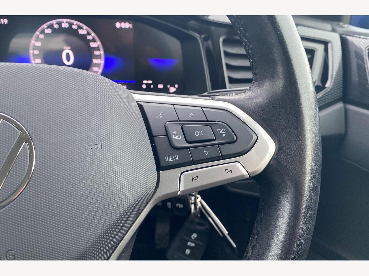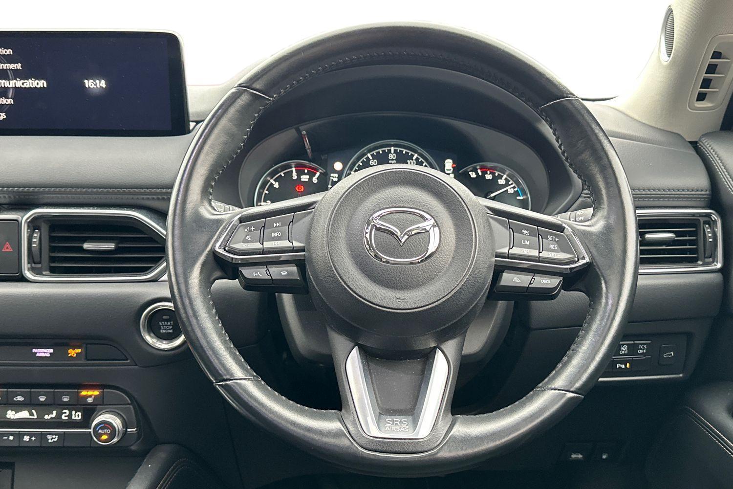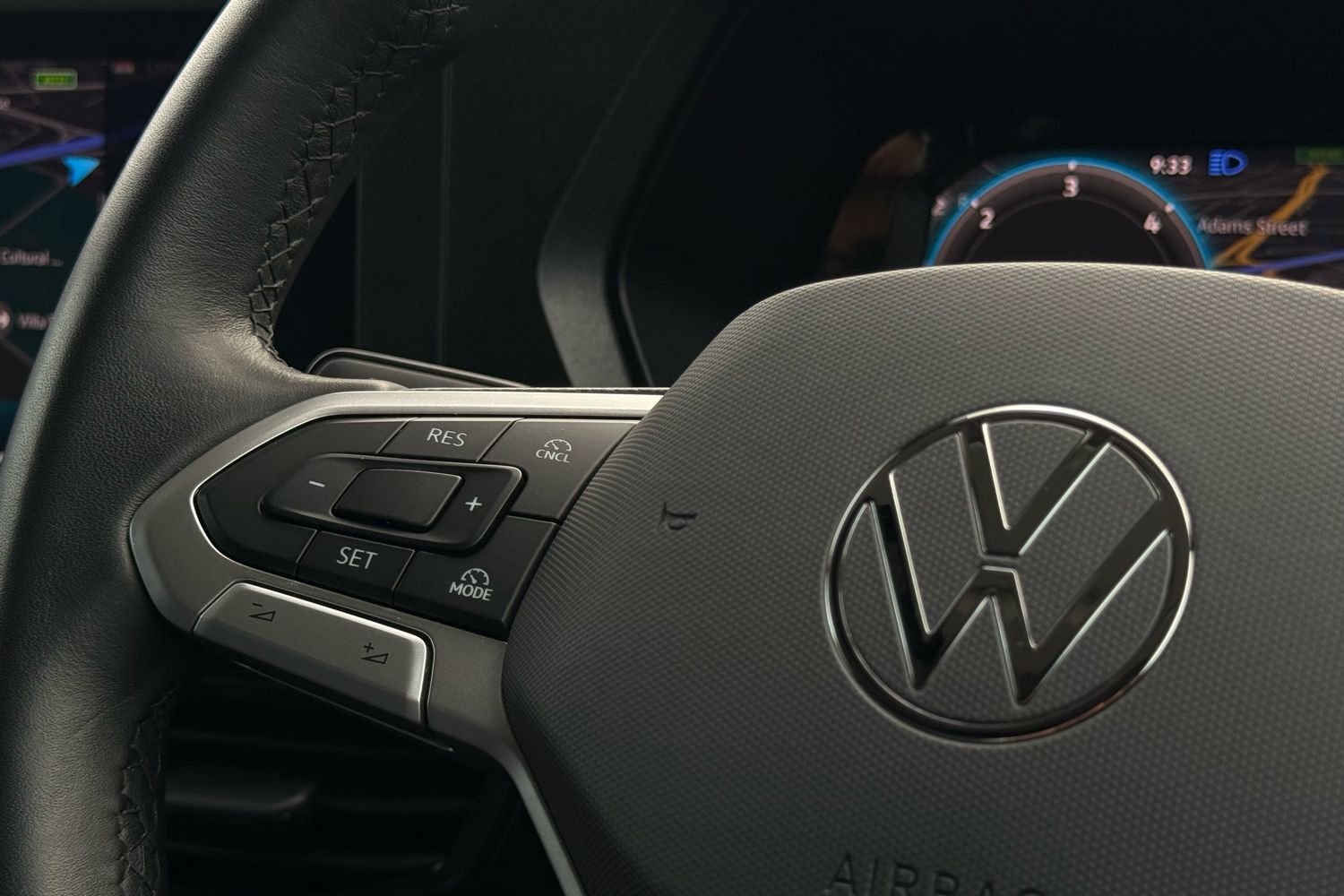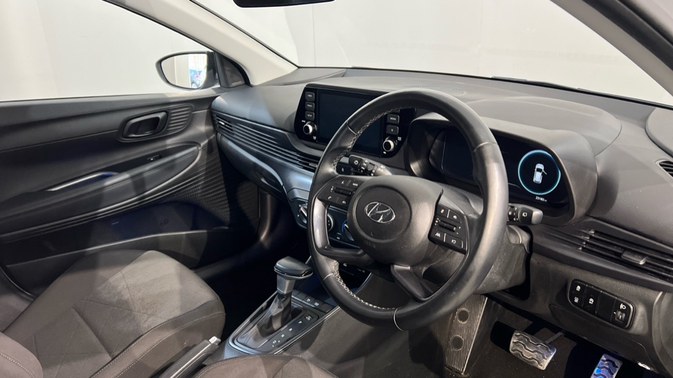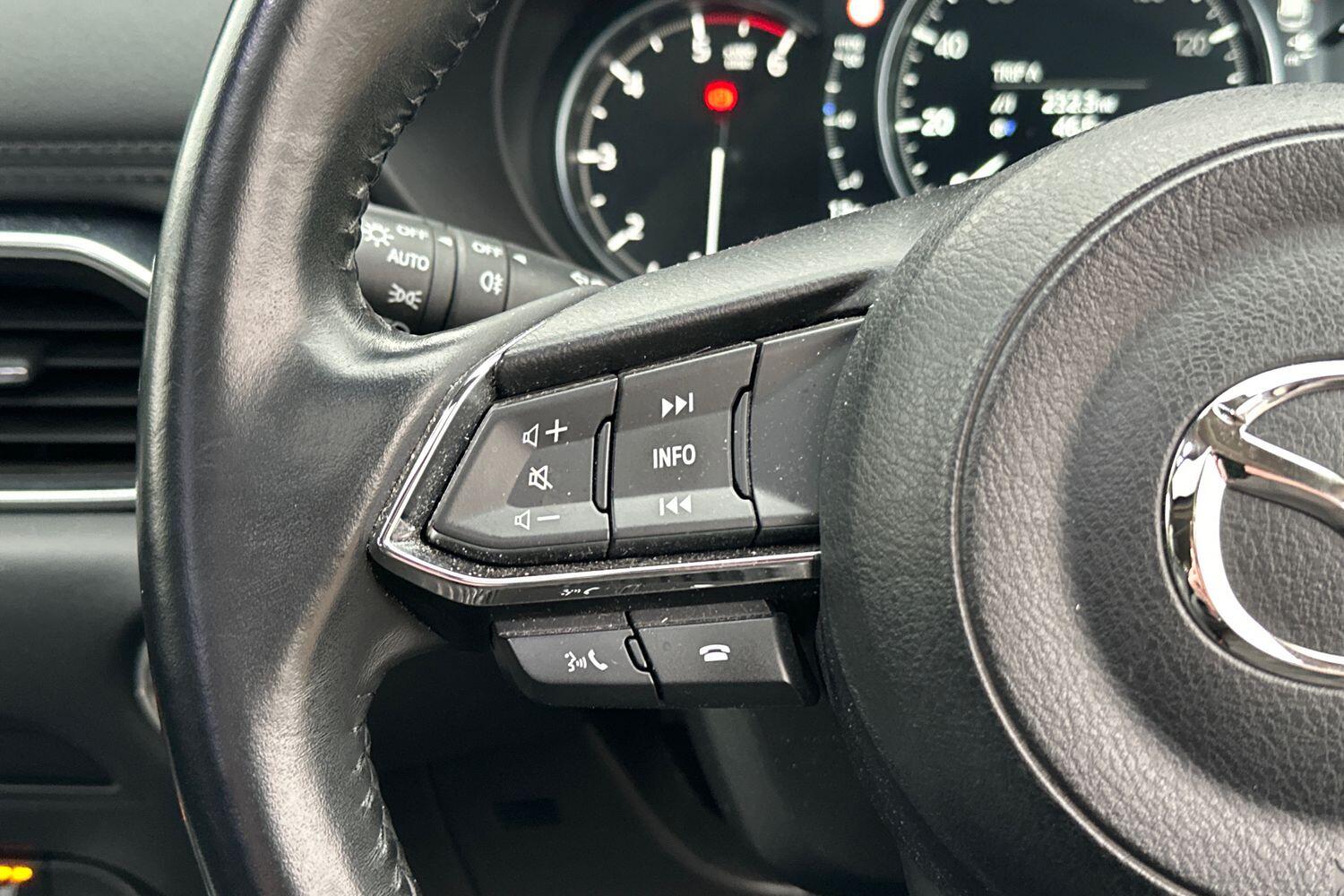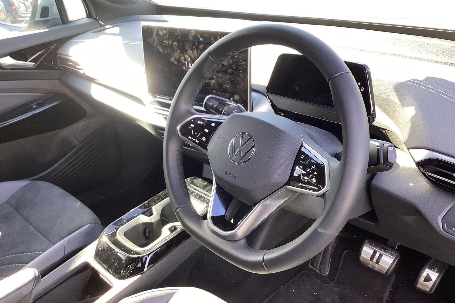 "3 spoke flat bottomed multi-function plus leather steering wheel with S badging, grips in preforated leather, contrast stitching and paddle shift",