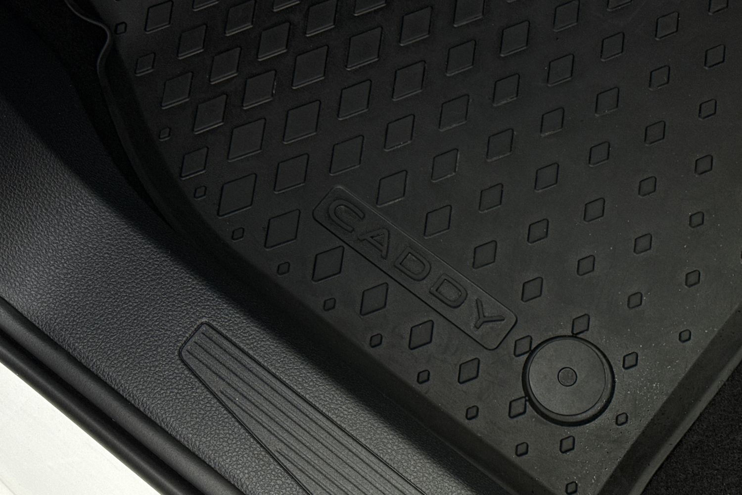"Front and rear velour black floor mats with contrast stitching in fine silver",