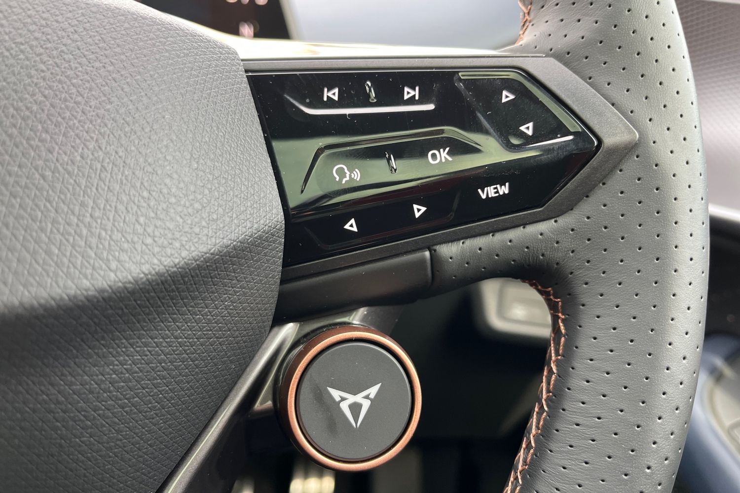 "Vegan leather multi-function steering wheel",