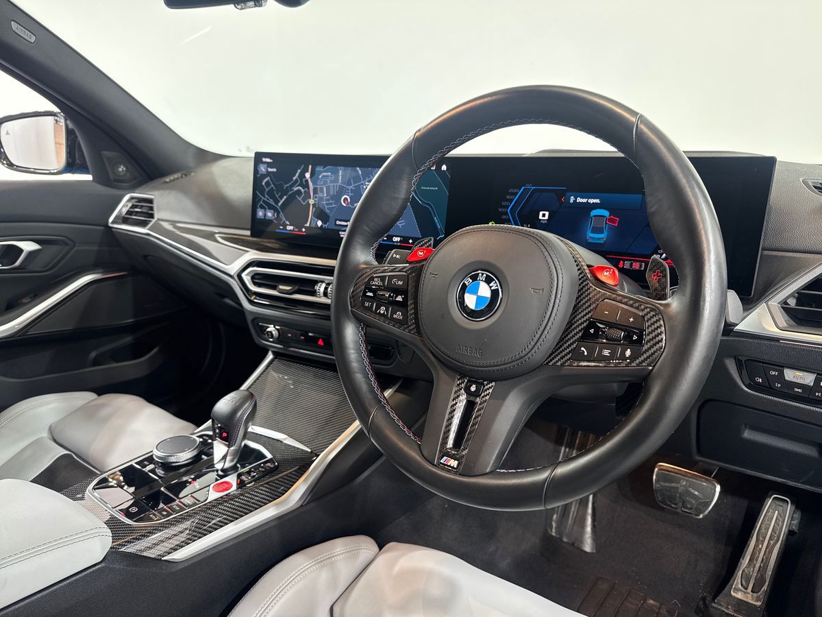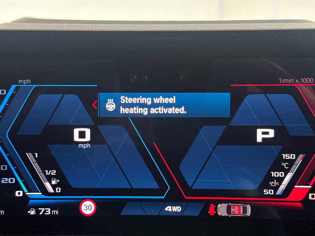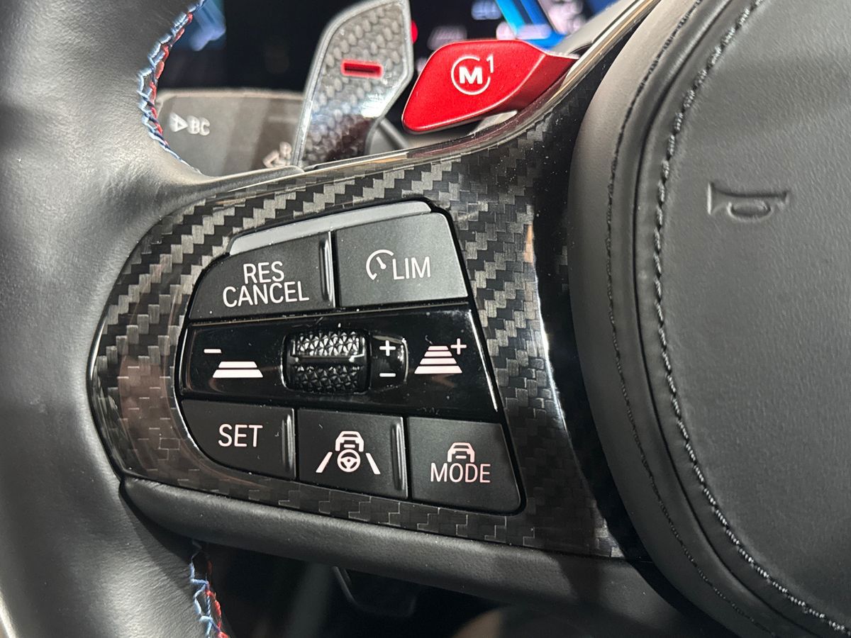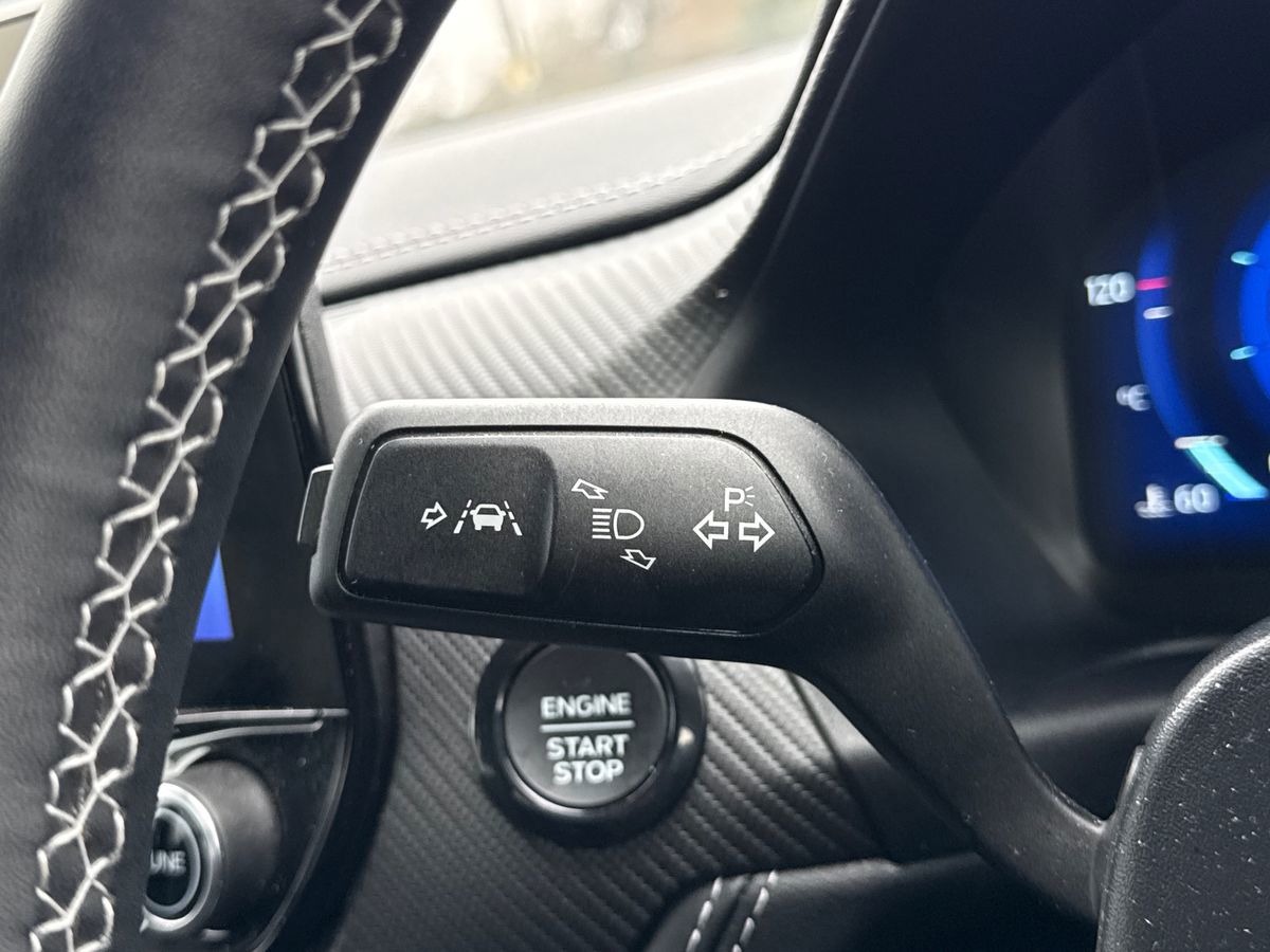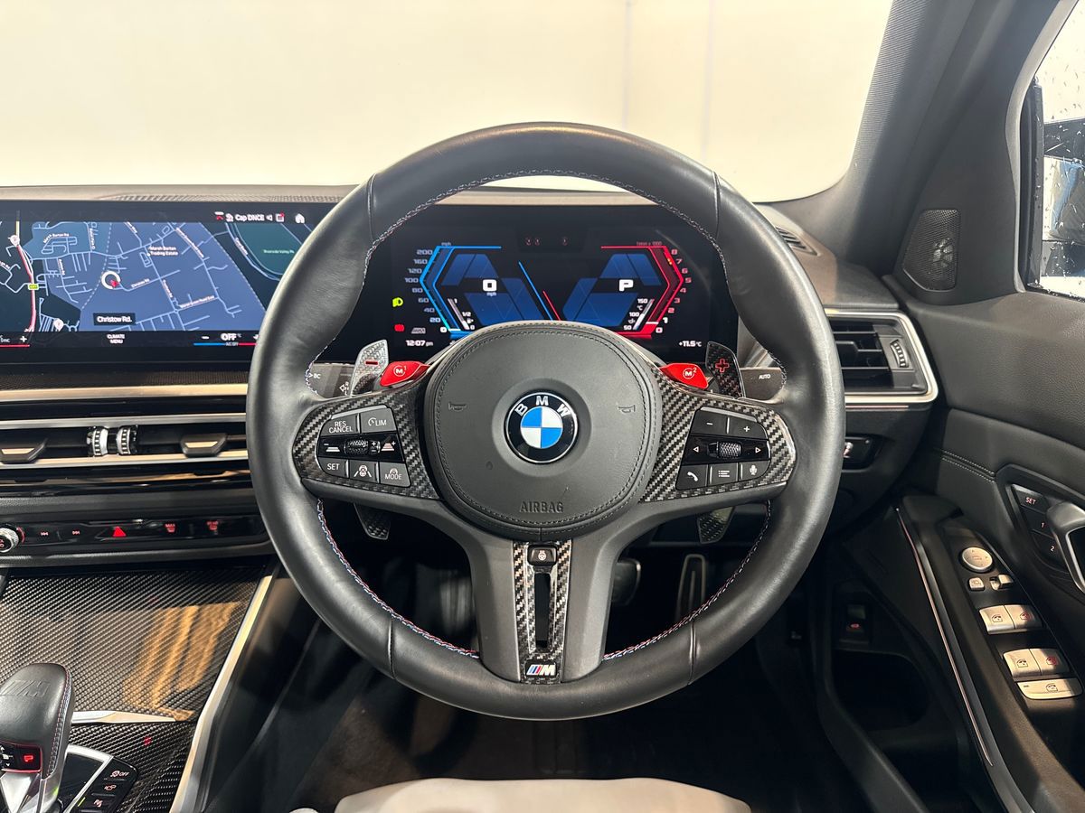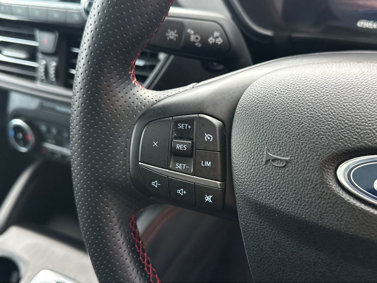 "3 spoke high multi-function sports leather steering wheel grips in perforated leather with S badging including paddle shift",