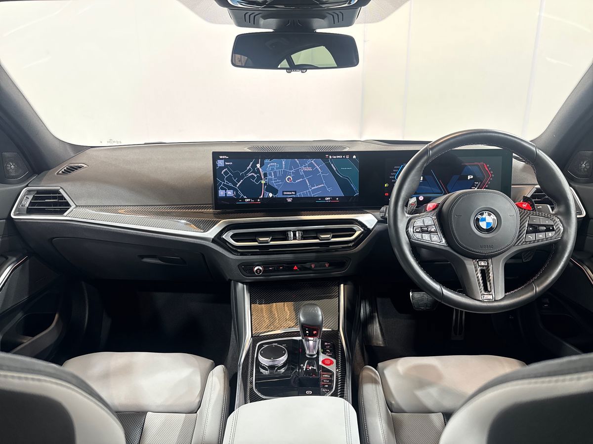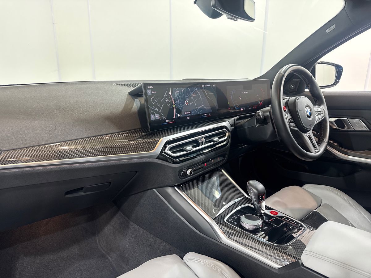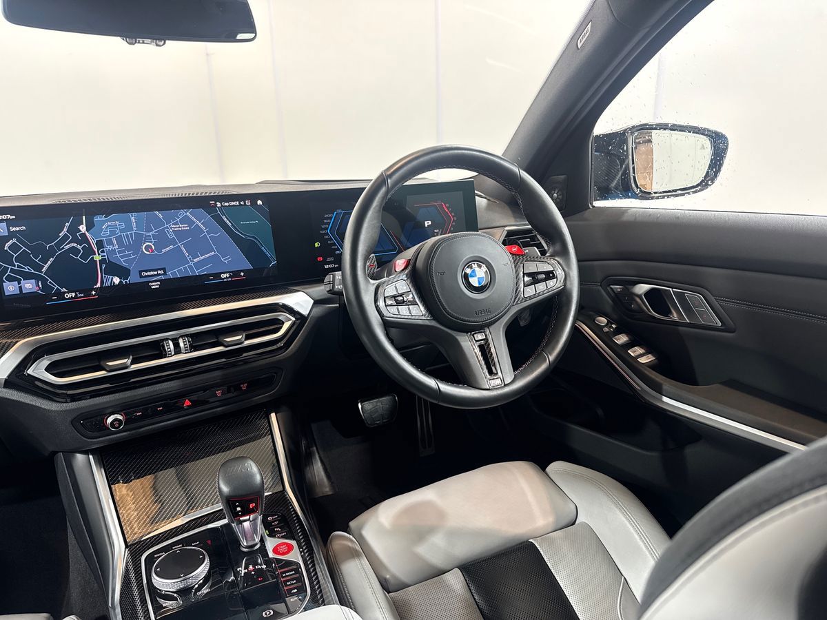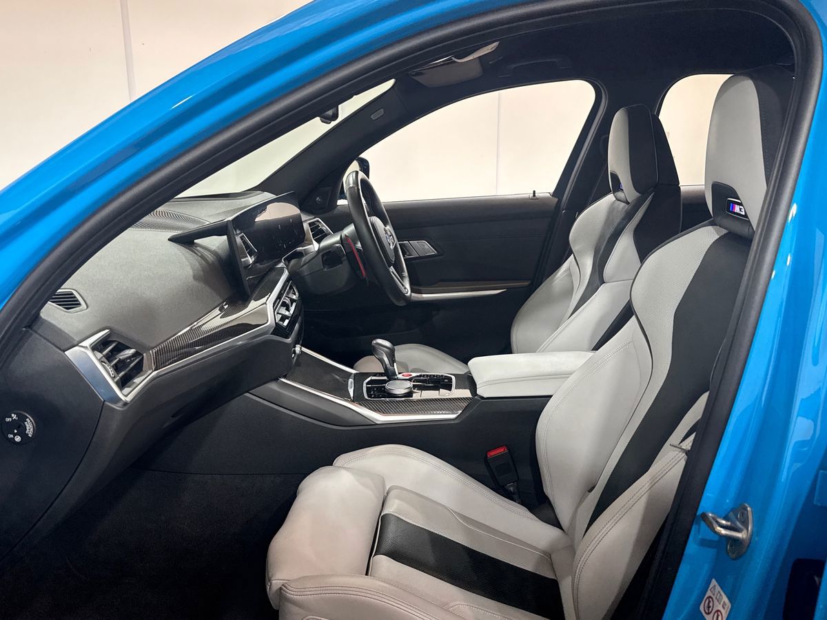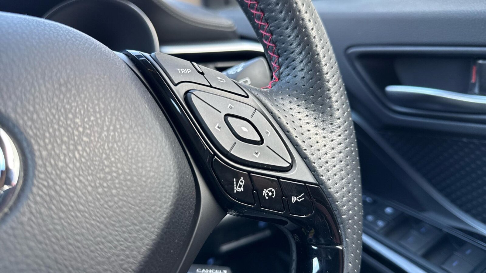 "3 spoke high multi-function sports leather steering wheel grips in perforated leather with S badging including paddle shift",