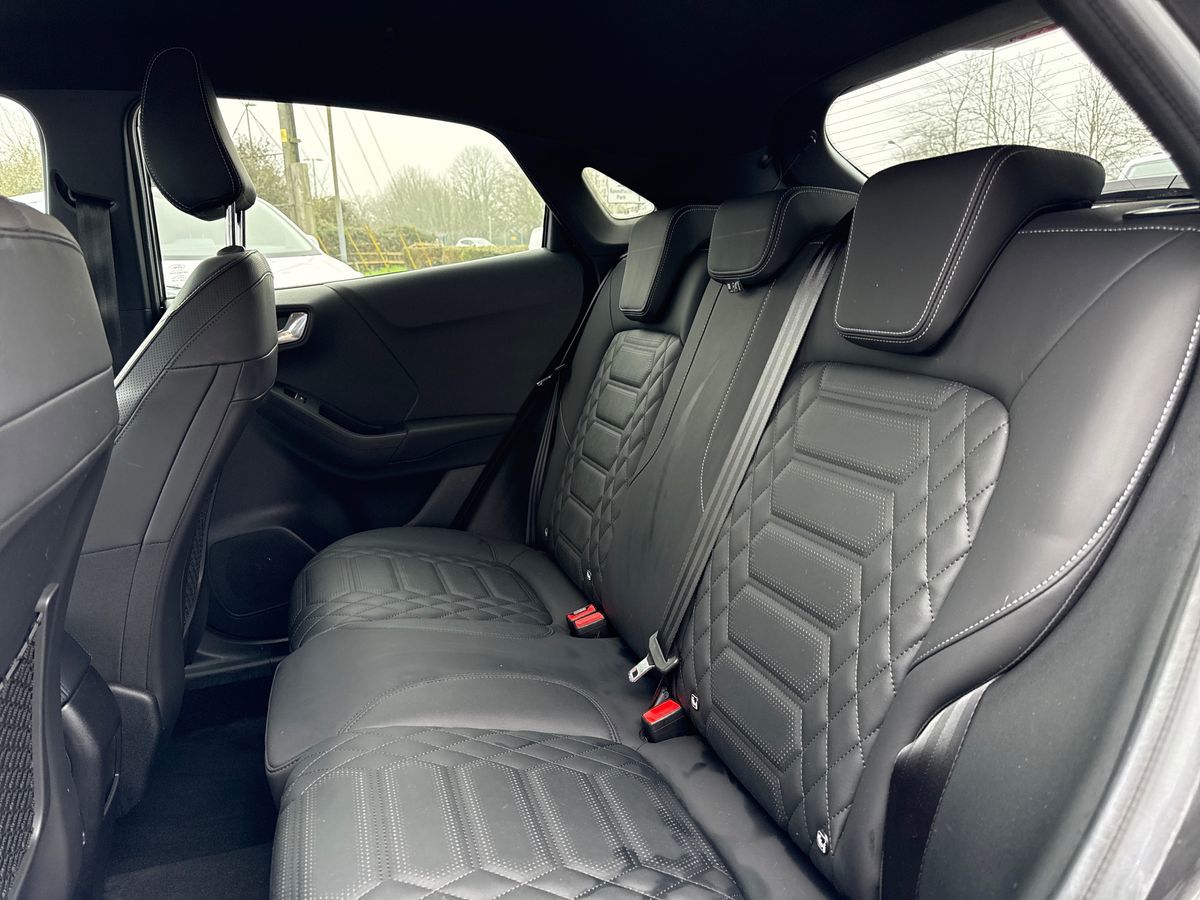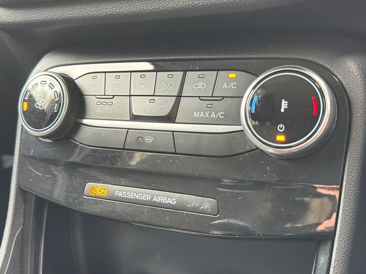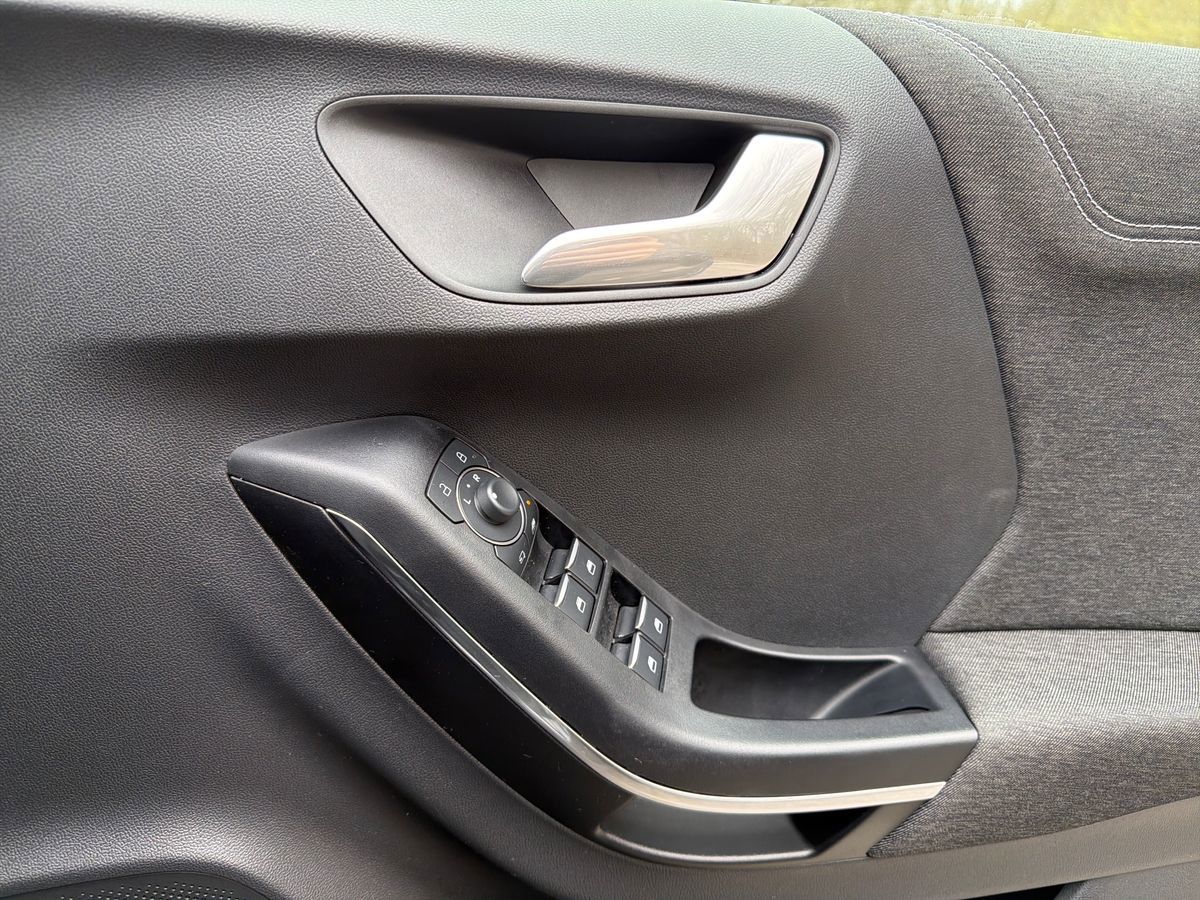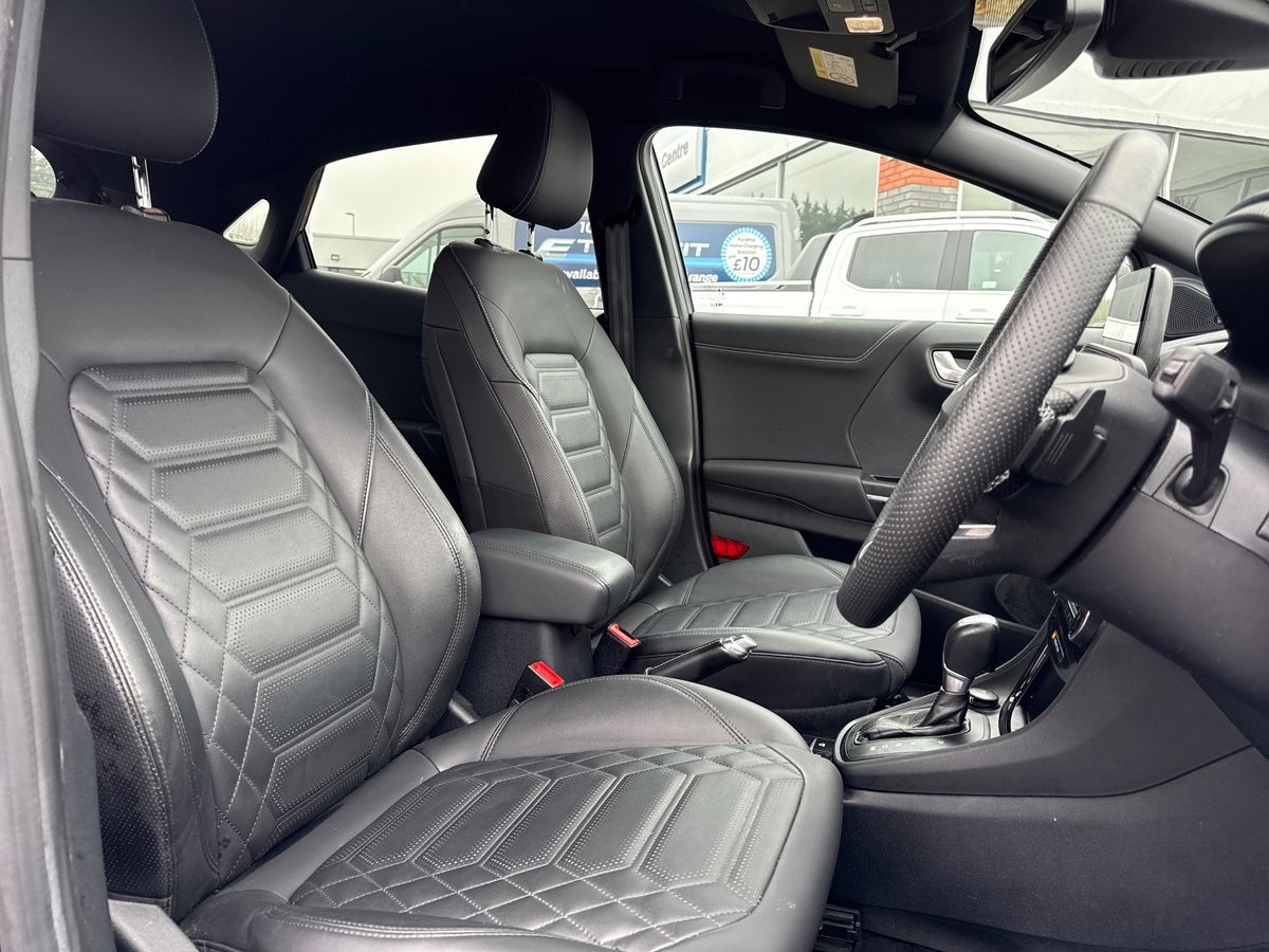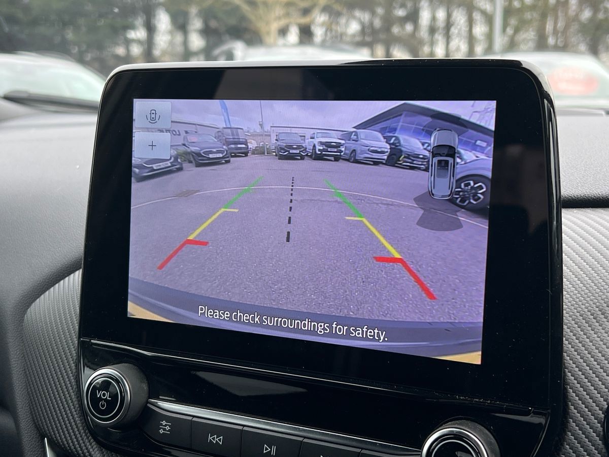 "features": "Driver impairment monitor, Emergency call service, Ford easy fuel, Lane keeping aid with lane departure warning, Power assist steering, Power start button, Rear parking sensor, Selectable drive modes(Normal, Eco, Sport, Slippery and Trail), Speed sign recognition, Standard suspension, Automatic headlights with auto high beam, Automatic rain sensing wipers, Body colour rear spoiler, LED rear lamps, Power foldable heated door mirrors with puddle lamps, Projector headlamps with LED day time running lights and front fog lamps, Quickclear heated windscreen, Rear side wing doors, Rear wiper, Third brake light, 3 seat bench in 2nd row, Centre console with armrest and stowage, Electronic automatic temperature control (EATC), Ford megabox extended bootspace, Front and rear head restraints, Front floor mats, Manual 2 way passenger seat adjustment, Manual 4 way driver seat adjust with lumbar adjustment, Sensico leather steering wheel/gear knob/handbrake, Single front passenger seat, Titanium cloth upholstery, Ford SYNC 3 navigation pack - Puma, 3 rear seatbelts, Child safety lock, Electronic stability control (ESC) and hill start assist, Pedestrian/cyclist detection & post-collision braking, Pre collision assist system, Tyre pressure monitoring system (TPMS), Thatcham alarm, 17\" 10 spoke absolute black machined finish alloy wheel, ",