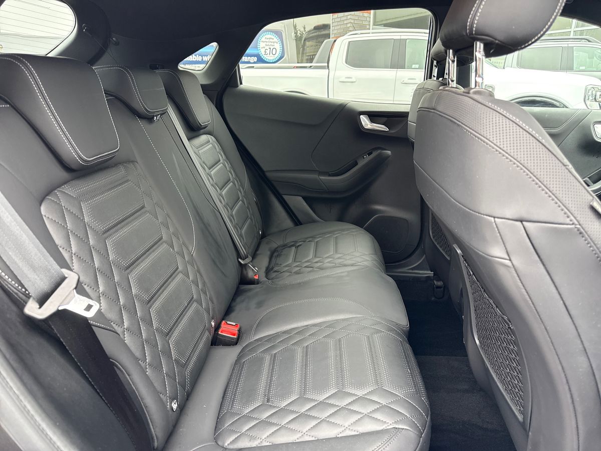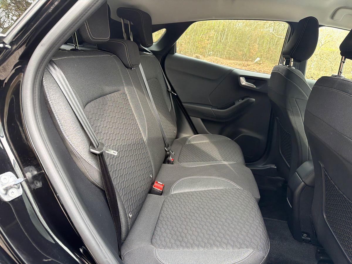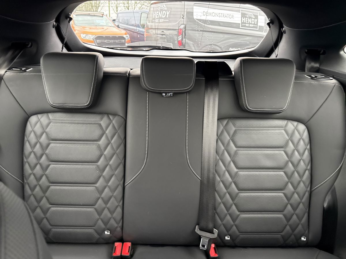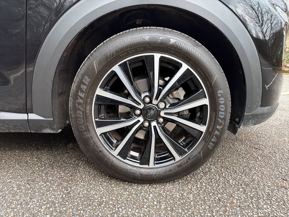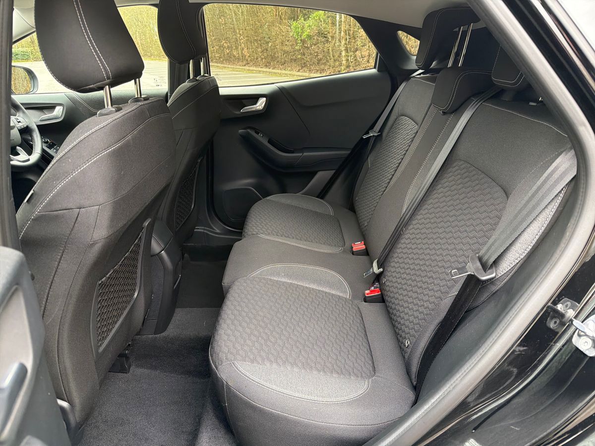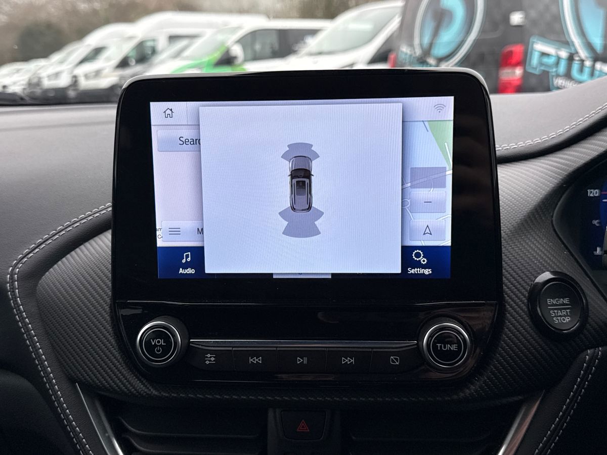 "features": "Driver impairment monitor, Emergency call service, Ford easy fuel, Lane keeping aid with lane departure warning, Power assist steering, Power start button, Rear parking sensor, Selectable drive modes(Normal, Eco, Sport, Slippery and Trail), Speed sign recognition, Standard suspension, Automatic headlights with auto high beam, Automatic rain sensing wipers, Body colour rear spoiler, LED rear lamps, Power foldable heated door mirrors with puddle lamps, Projector headlamps with LED day time running lights and front fog lamps, Quickclear heated windscreen, Rear side wing doors, Rear wiper, Third brake light, 3 seat bench in 2nd row, Centre console with armrest and stowage, Electronic automatic temperature control (EATC), Ford megabox extended bootspace, Front and rear head restraints, Front floor mats, Manual 2 way passenger seat adjustment, Manual 4 way driver seat adjust with lumbar adjustment, Sensico leather steering wheel/gear knob/handbrake, Single front passenger seat, Titanium cloth upholstery, Ford SYNC 3 navigation pack - Puma, 3 rear seatbelts, Child safety lock, Electronic stability control (ESC) and hill start assist, Pedestrian/cyclist detection & post-collision braking, Pre collision assist system, Tyre pressure monitoring system (TPMS), Thatcham alarm, 17\" 10 spoke absolute black machined finish alloy wheel, ",