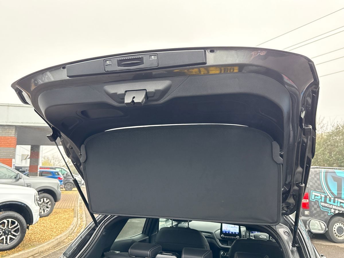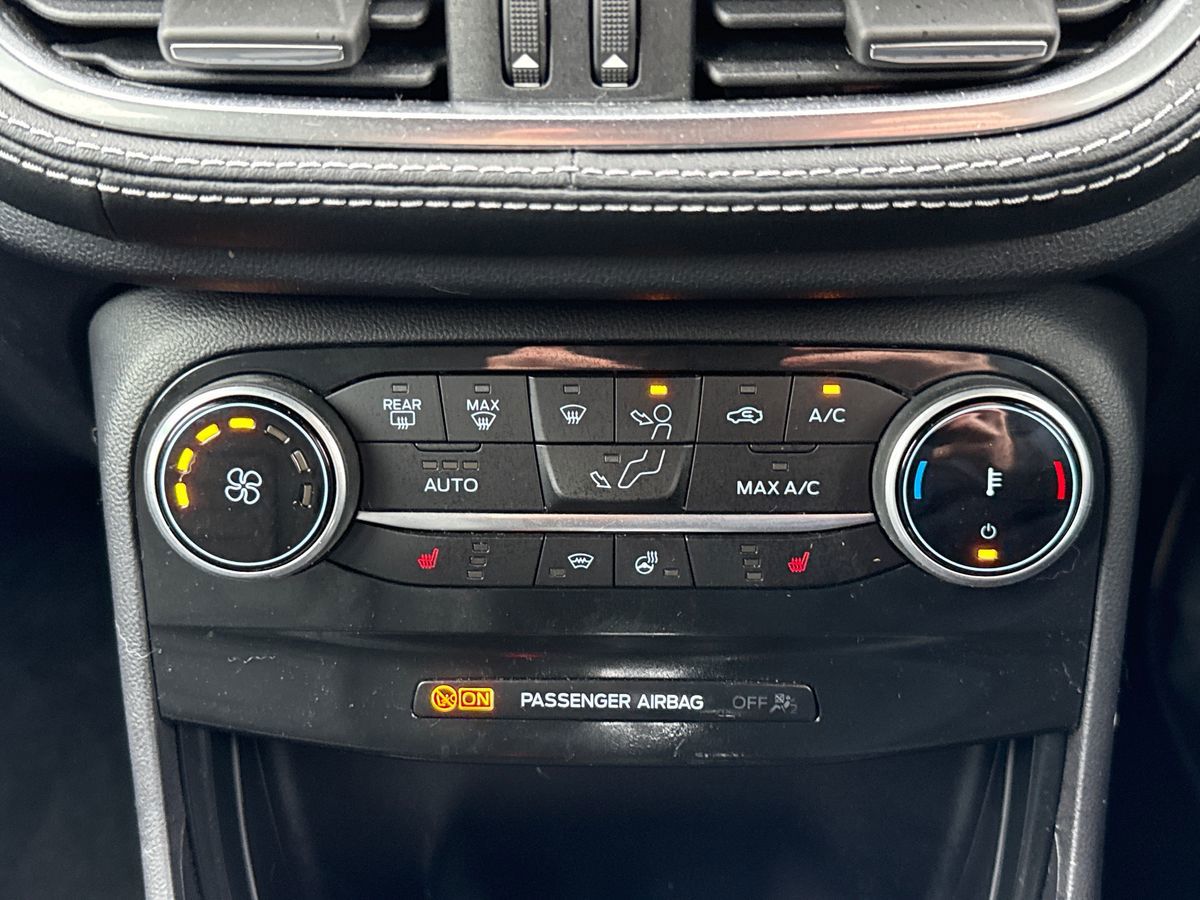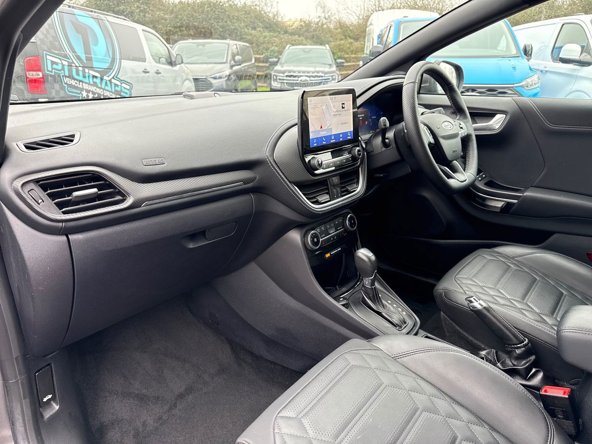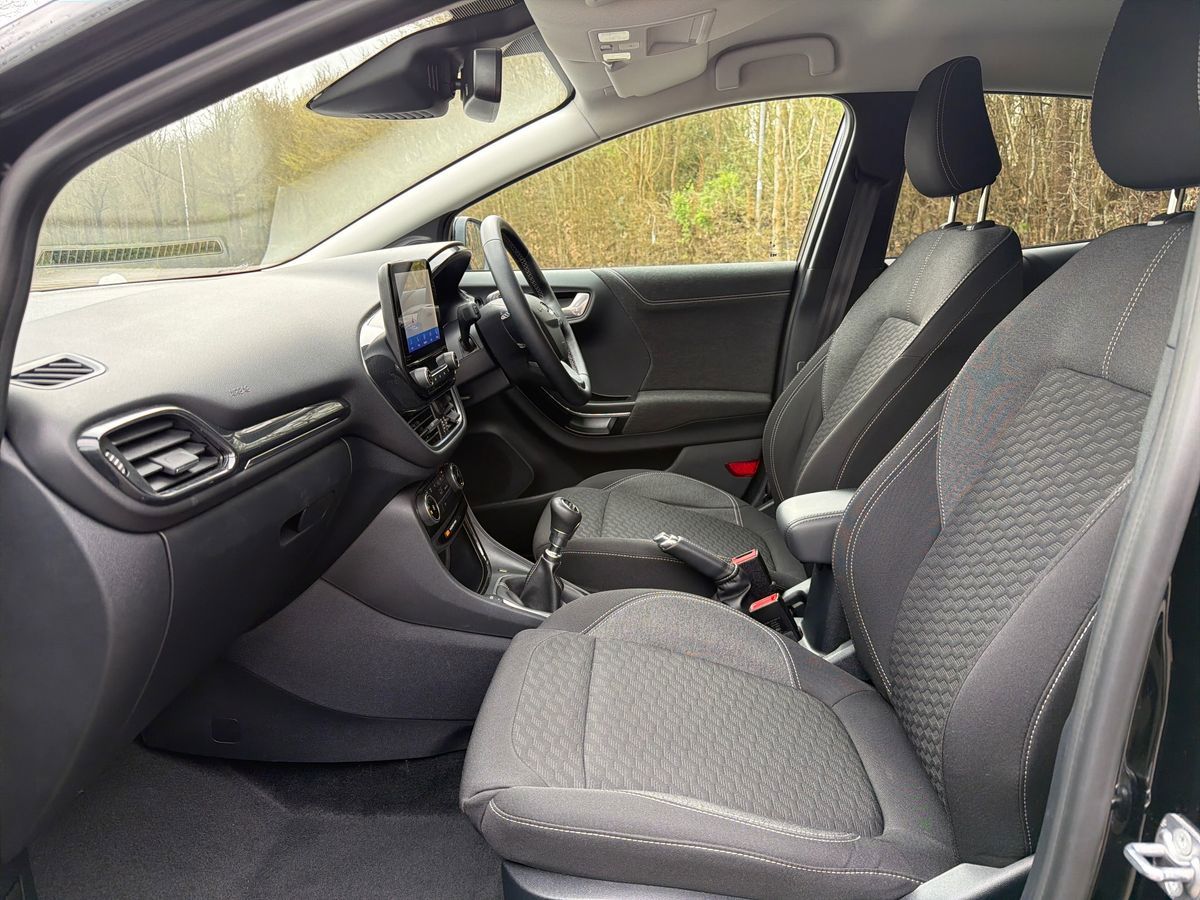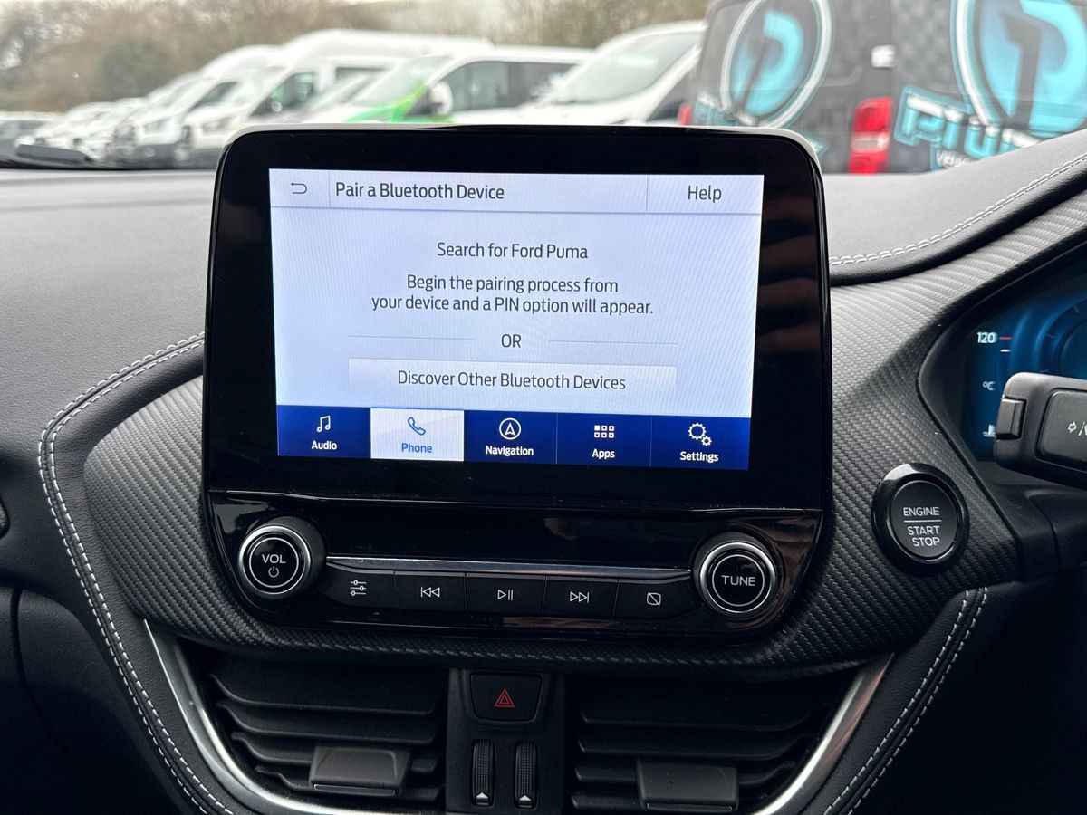 "features": "Driver impairment monitor, Emergency call service, Ford easy fuel, Lane keeping aid with lane departure warning, Power assist steering, Power start button, Rear parking sensor, Selectable drive modes(Normal, Eco, Sport, Slippery and Trail), Speed sign recognition, Standard suspension, Automatic headlights with auto high beam, Automatic rain sensing wipers, Body colour rear spoiler, LED rear lamps, Power foldable heated door mirrors with puddle lamps, Projector headlamps with LED day time running lights and front fog lamps, Quickclear heated windscreen, Rear side wing doors, Rear wiper, Third brake light, 3 seat bench in 2nd row, Centre console with armrest and stowage, Electronic automatic temperature control (EATC), Ford megabox extended bootspace, Front and rear head restraints, Front floor mats, Manual 2 way passenger seat adjustment, Manual 4 way driver seat adjust with lumbar adjustment, Sensico leather steering wheel/gear knob/handbrake, Single front passenger seat, Titanium cloth upholstery, Ford SYNC 3 navigation pack - Puma, 3 rear seatbelts, Child safety lock, Electronic stability control (ESC) and hill start assist, Pedestrian/cyclist detection & post-collision braking, Pre collision assist system, Tyre pressure monitoring system (TPMS), Thatcham alarm, 17\" 10 spoke absolute black machined finish alloy wheel, ",