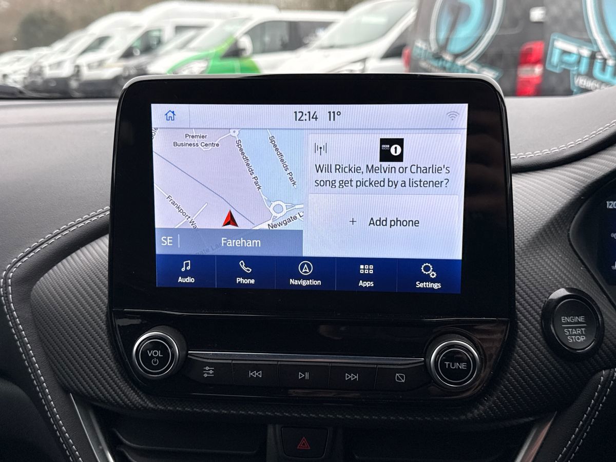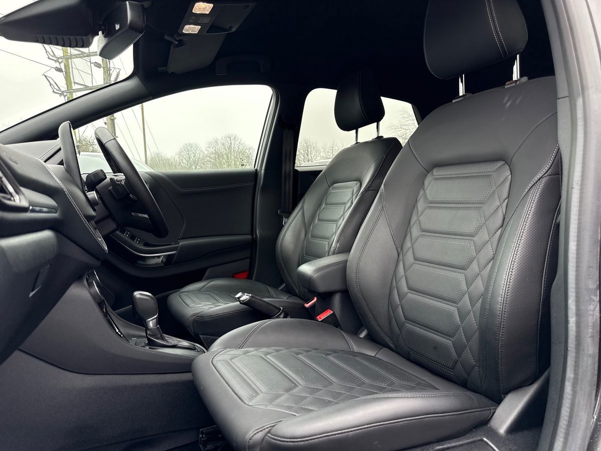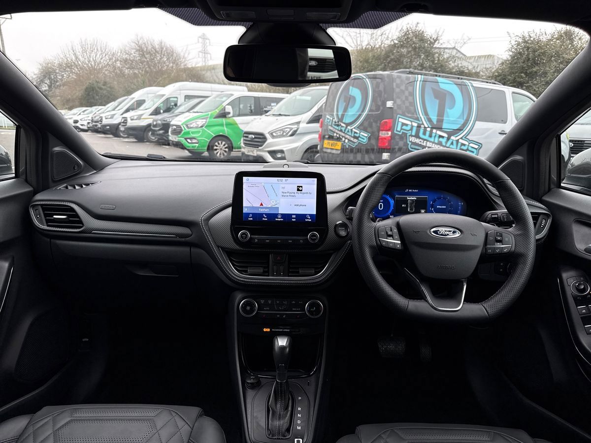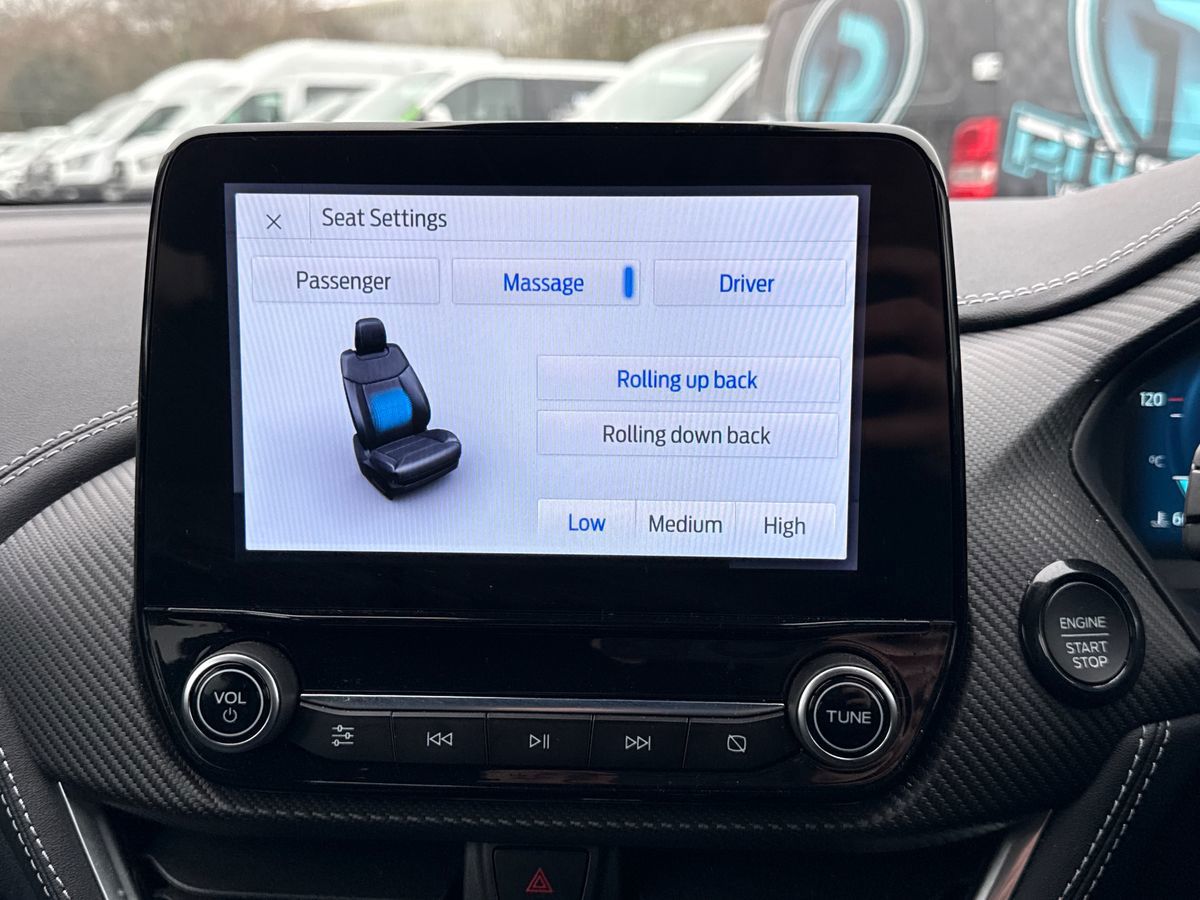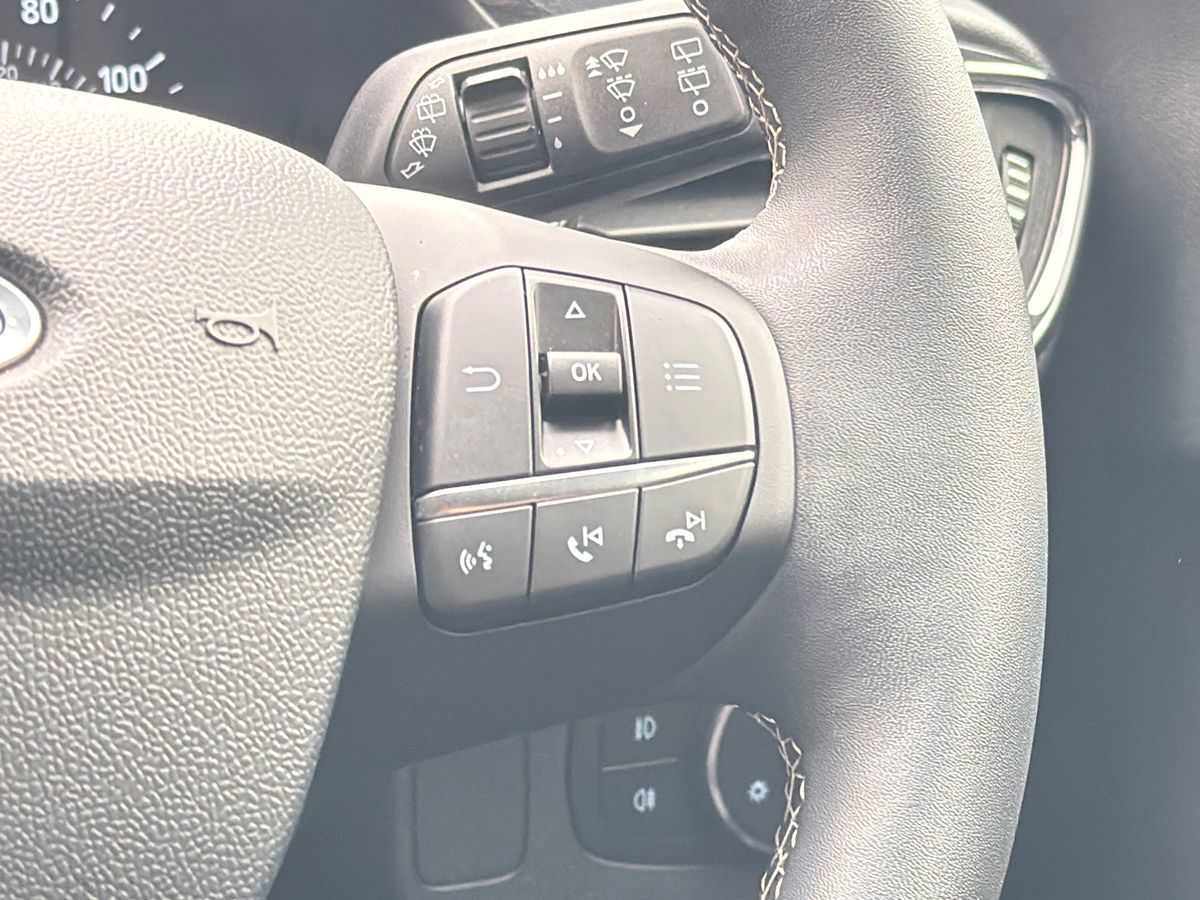 "features": "Driver impairment monitor, Emergency call service, Ford easy fuel, Lane keeping aid with lane departure warning, Power assist steering, Power start button, Rear parking sensor, Selectable drive modes(Normal, Eco, Sport, Slippery and Trail), Speed sign recognition, Standard suspension, Automatic headlights with auto high beam, Automatic rain sensing wipers, Body colour rear spoiler, LED rear lamps, Power foldable heated door mirrors with puddle lamps, Projector headlamps with LED day time running lights and front fog lamps, Quickclear heated windscreen, Rear side wing doors, Rear wiper, Third brake light, 3 seat bench in 2nd row, Centre console with armrest and stowage, Electronic automatic temperature control (EATC), Ford megabox extended bootspace, Front and rear head restraints, Front floor mats, Manual 2 way passenger seat adjustment, Manual 4 way driver seat adjust with lumbar adjustment, Sensico leather steering wheel/gear knob/handbrake, Single front passenger seat, Titanium cloth upholstery, Ford SYNC 3 navigation pack - Puma, 3 rear seatbelts, Child safety lock, Electronic stability control (ESC) and hill start assist, Pedestrian/cyclist detection & post-collision braking, Pre collision assist system, Tyre pressure monitoring system (TPMS), Thatcham alarm, 17\" 10 spoke absolute black machined finish alloy wheel, ",