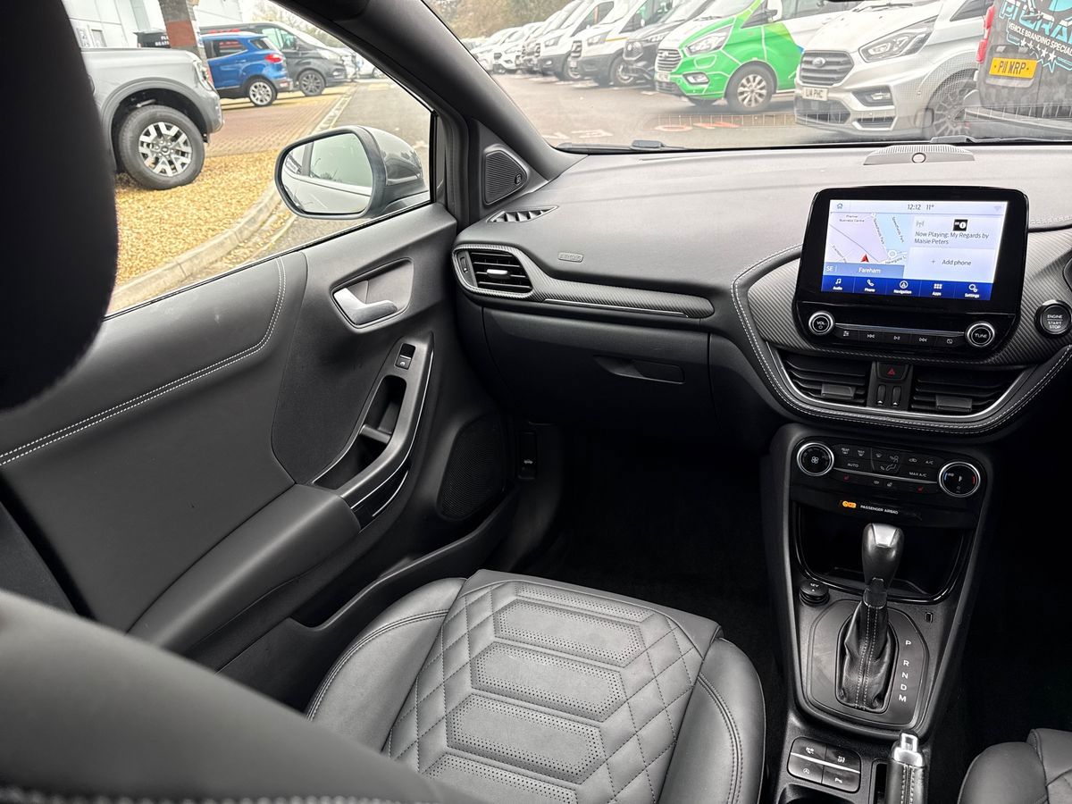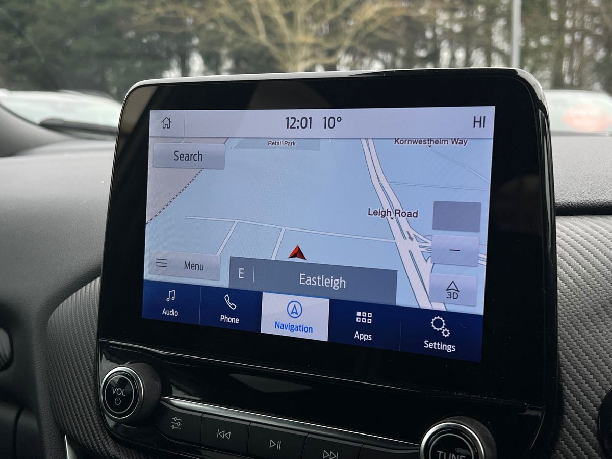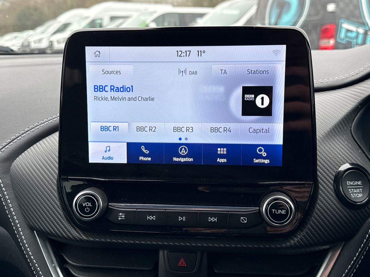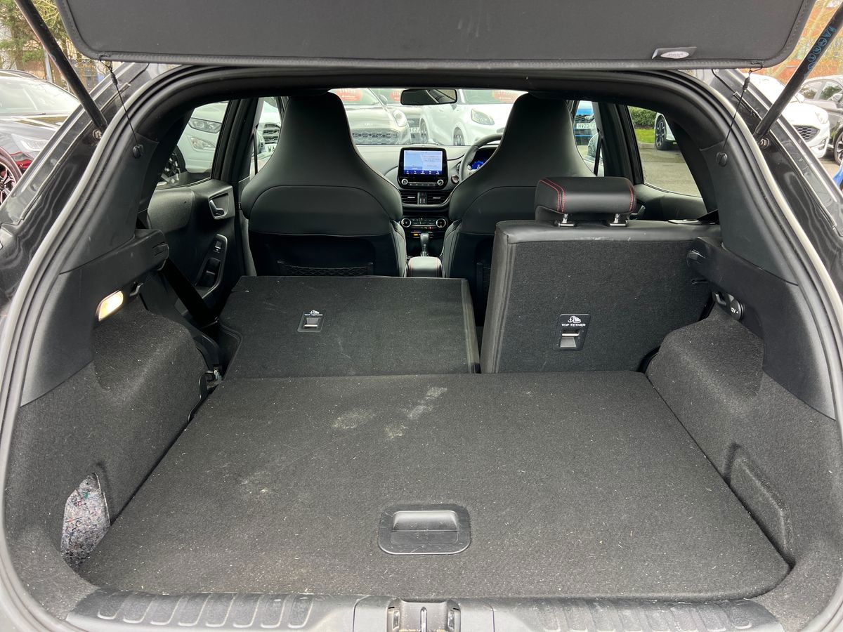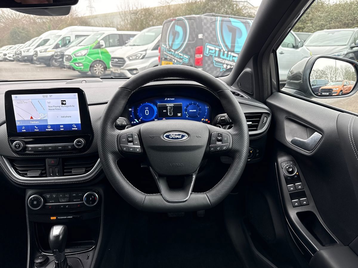 "features": "Driver impairment monitor, Emergency call service, Ford easy fuel, Lane keeping aid with lane departure warning, Power assist steering, Power start button, Rear parking sensor, Selectable drive modes(Normal, Eco, Sport, Slippery and Trail), Speed sign recognition, Standard suspension, Automatic headlights with auto high beam, Automatic rain sensing wipers, Body colour rear spoiler, LED rear lamps, Power foldable heated door mirrors with puddle lamps, Projector headlamps with LED day time running lights and front fog lamps, Quickclear heated windscreen, Rear side wing doors, Rear wiper, Third brake light, 3 seat bench in 2nd row, Centre console with armrest and stowage, Electronic automatic temperature control (EATC), Ford megabox extended bootspace, Front and rear head restraints, Front floor mats, Manual 2 way passenger seat adjustment, Manual 4 way driver seat adjust with lumbar adjustment, Sensico leather steering wheel/gear knob/handbrake, Single front passenger seat, Titanium cloth upholstery, Ford SYNC 3 navigation pack - Puma, 3 rear seatbelts, Child safety lock, Electronic stability control (ESC) and hill start assist, Pedestrian/cyclist detection & post-collision braking, Pre collision assist system, Tyre pressure monitoring system (TPMS), Thatcham alarm, 17\" 10 spoke absolute black machined finish alloy wheel, ",