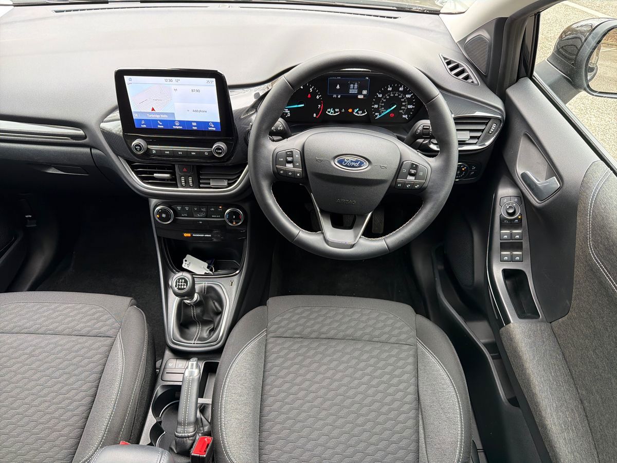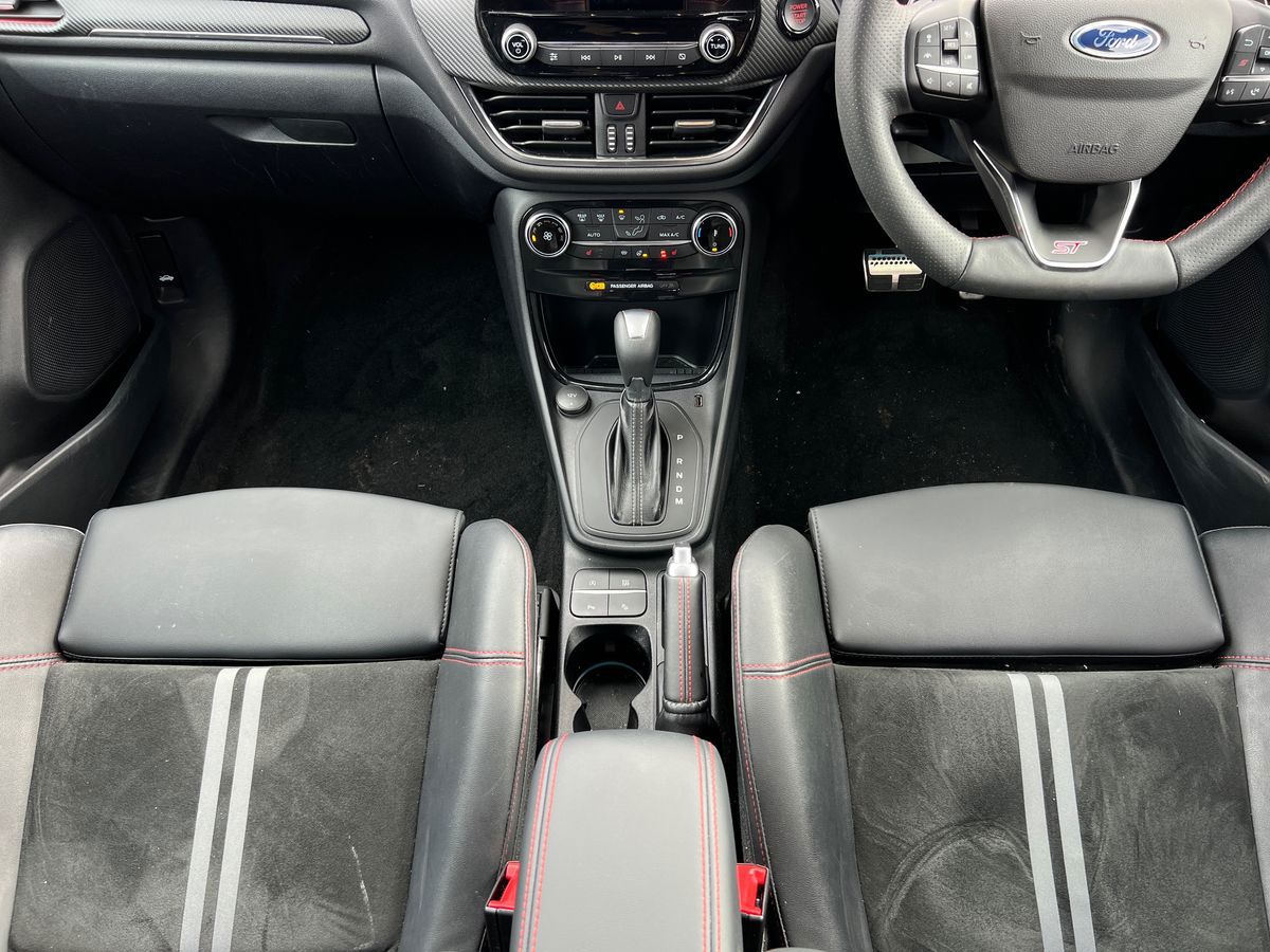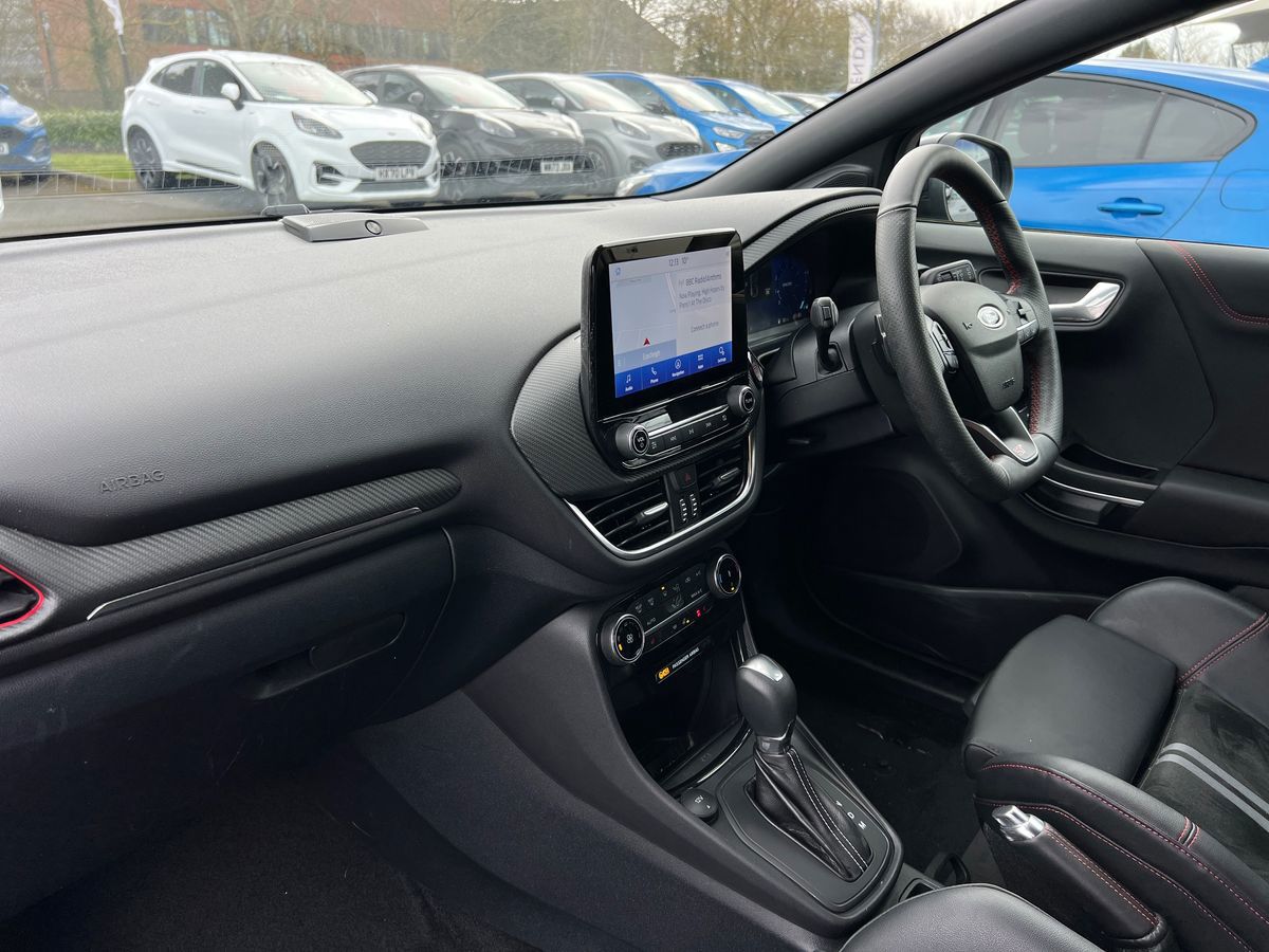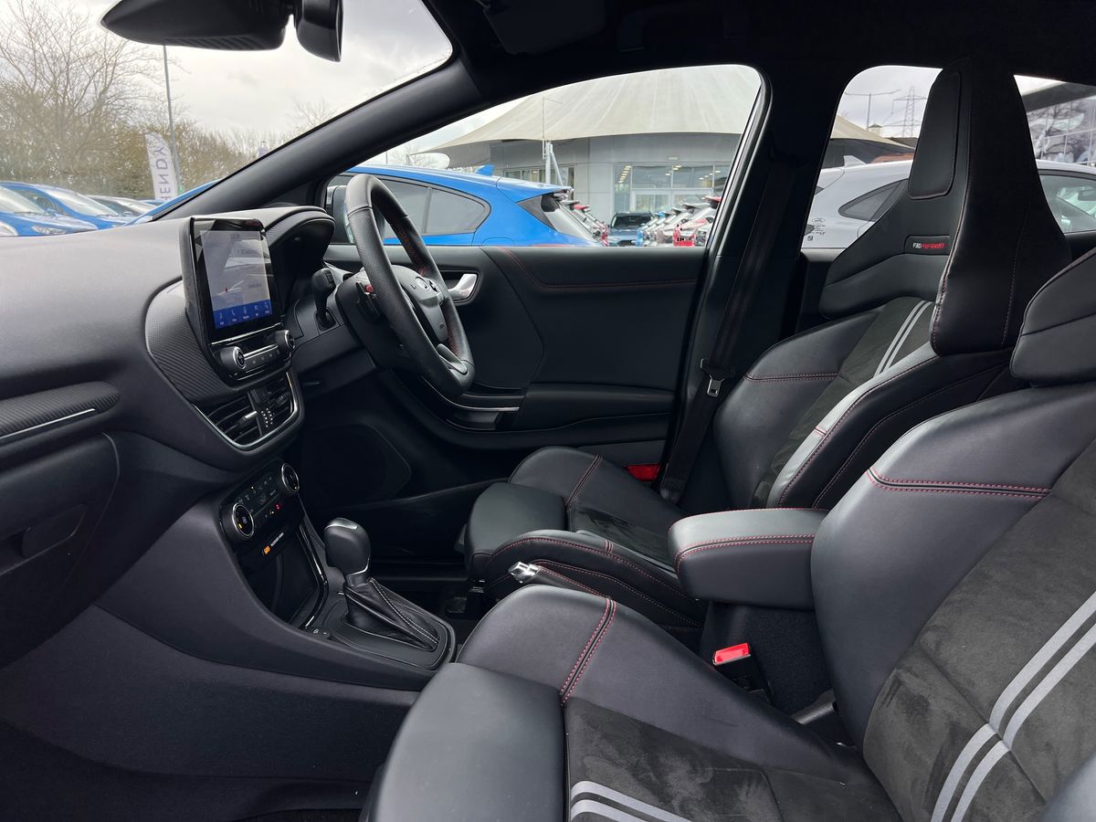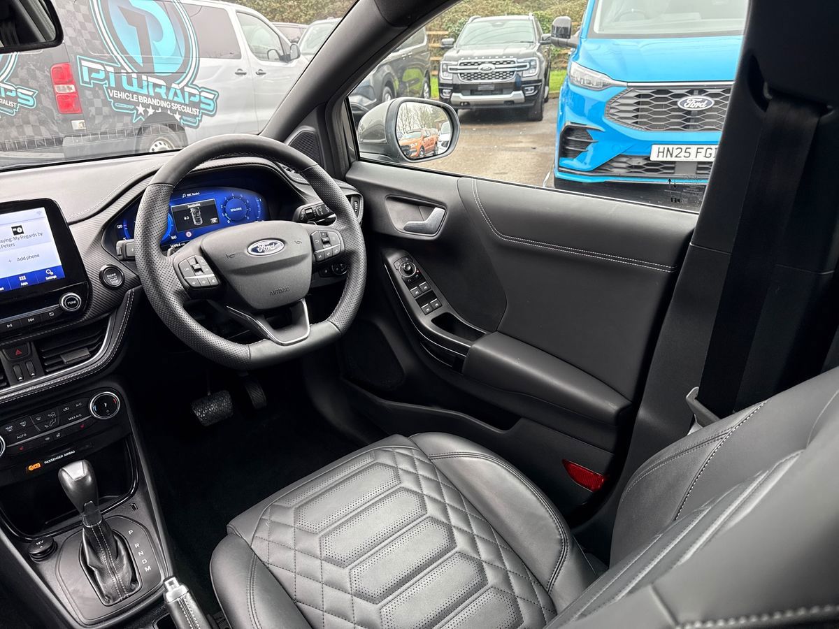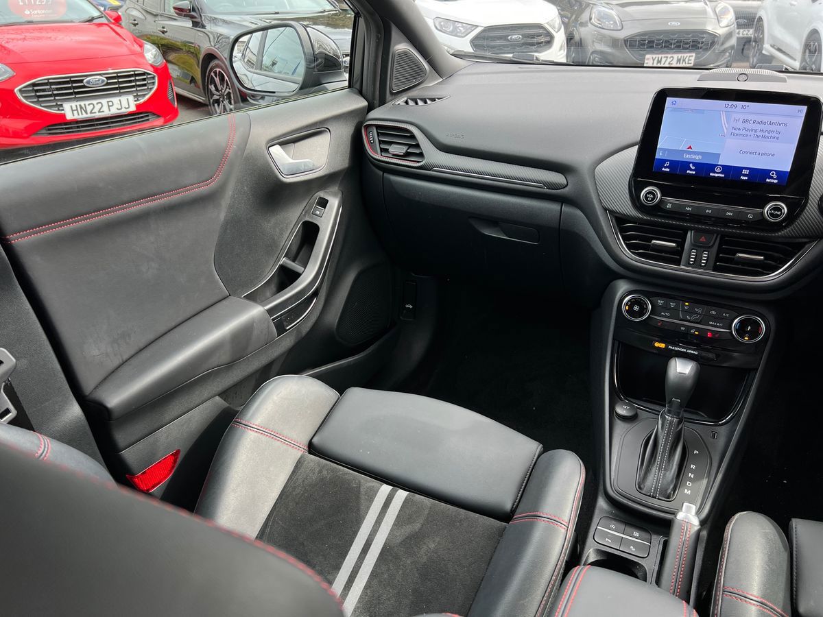 "features": "Driver impairment monitor, Emergency call service, Ford easy fuel, Lane keeping aid with lane departure warning, Power assist steering, Power start button, Rear parking sensor, Selectable drive modes(Normal, Eco, Sport, Slippery and Trail), Speed sign recognition, Standard suspension, Automatic headlights with auto high beam, Automatic rain sensing wipers, Body colour rear spoiler, LED rear lamps, Power foldable heated door mirrors with puddle lamps, Projector headlamps with LED day time running lights and front fog lamps, Quickclear heated windscreen, Rear side wing doors, Rear wiper, Third brake light, 3 seat bench in 2nd row, Centre console with armrest and stowage, Electronic automatic temperature control (EATC), Ford megabox extended bootspace, Front and rear head restraints, Front floor mats, Manual 2 way passenger seat adjustment, Manual 4 way driver seat adjust with lumbar adjustment, Sensico leather steering wheel/gear knob/handbrake, Single front passenger seat, Titanium cloth upholstery, Ford SYNC 3 navigation pack - Puma, 3 rear seatbelts, Child safety lock, Electronic stability control (ESC) and hill start assist, Pedestrian/cyclist detection & post-collision braking, Pre collision assist system, Tyre pressure monitoring system (TPMS), Thatcham alarm, 17\" 10 spoke absolute black machined finish alloy wheel, ",