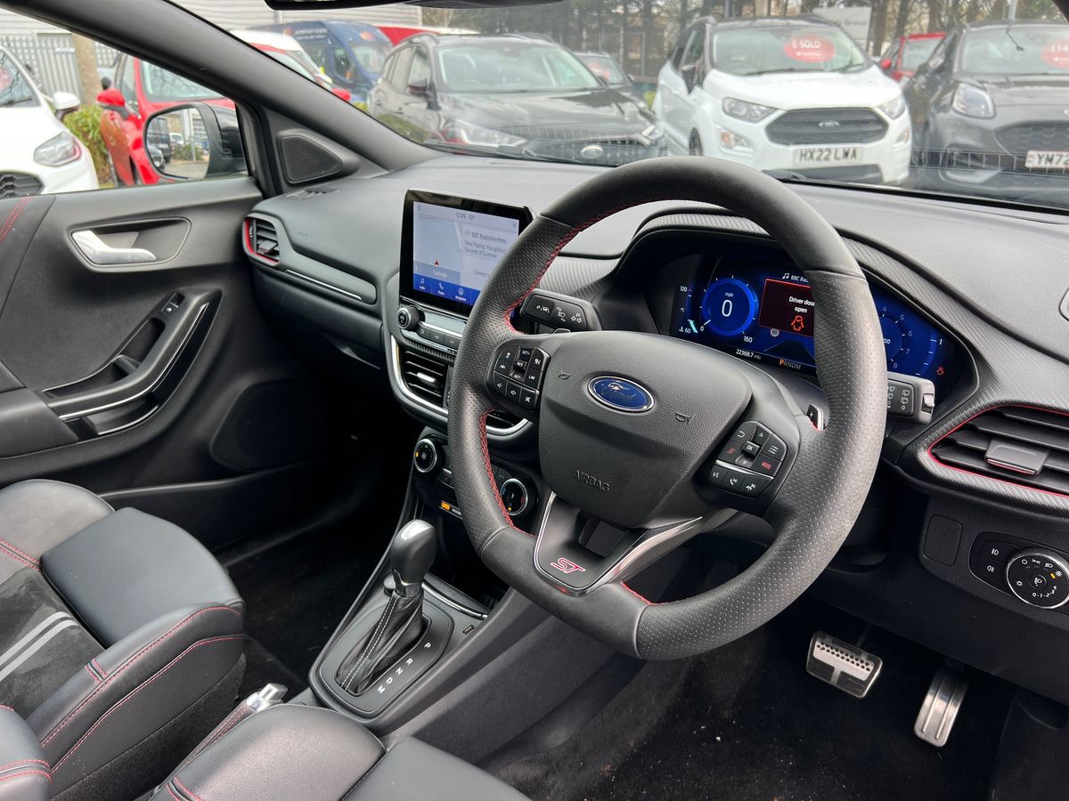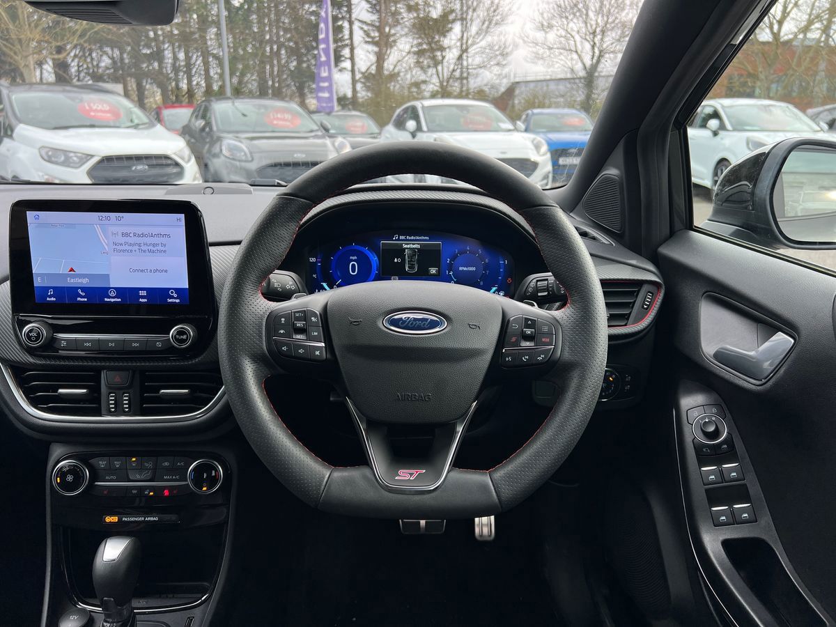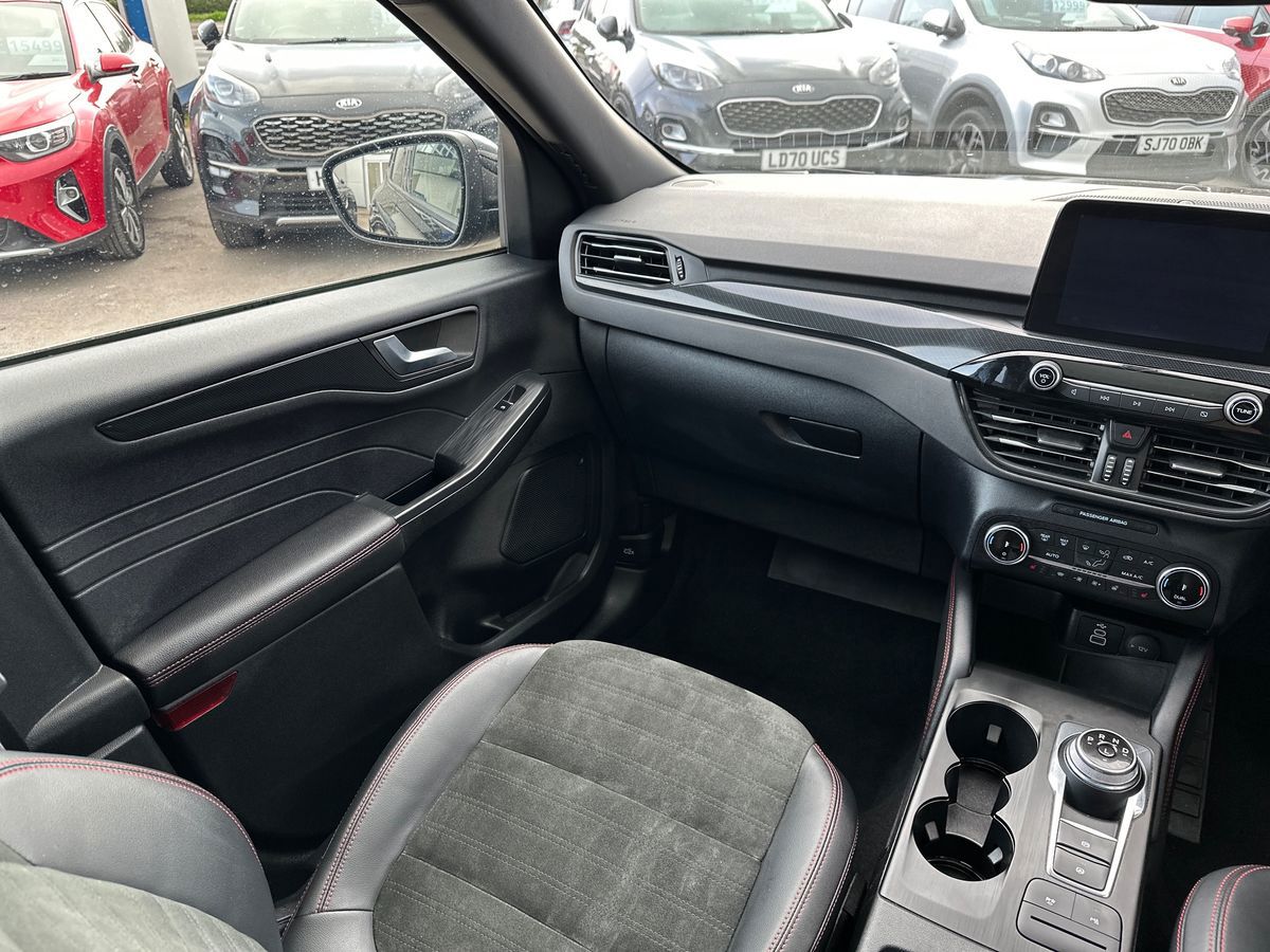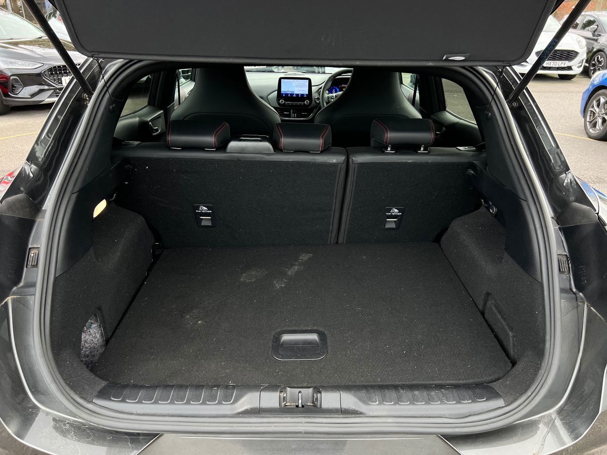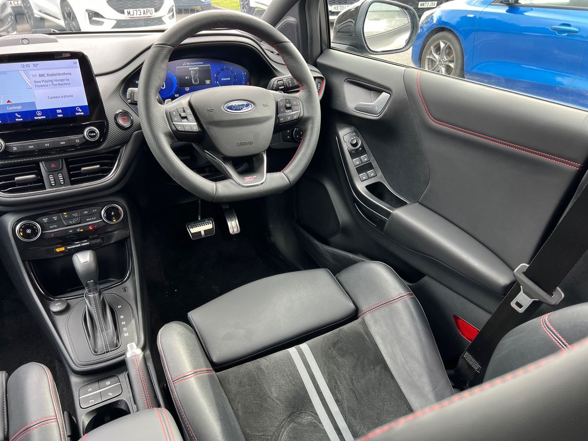 "features": "Driver impairment monitor, Emergency call service, Ford easy fuel, Lane keeping aid with lane departure warning, Power assist steering, Power start button, Rear parking sensor, Selectable drive modes(Normal, Eco, Sport, Slippery and Trail), Speed sign recognition, Standard suspension, Automatic headlights with auto high beam, Automatic rain sensing wipers, Body colour rear spoiler, LED rear lamps, Power foldable heated door mirrors with puddle lamps, Projector headlamps with LED day time running lights and front fog lamps, Quickclear heated windscreen, Rear side wing doors, Rear wiper, Third brake light, 3 seat bench in 2nd row, Centre console with armrest and stowage, Electronic automatic temperature control (EATC), Ford megabox extended bootspace, Front and rear head restraints, Front floor mats, Manual 2 way passenger seat adjustment, Manual 4 way driver seat adjust with lumbar adjustment, Sensico leather steering wheel/gear knob/handbrake, Single front passenger seat, Titanium cloth upholstery, Ford SYNC 3 navigation pack - Puma, 3 rear seatbelts, Child safety lock, Electronic stability control (ESC) and hill start assist, Pedestrian/cyclist detection & post-collision braking, Pre collision assist system, Tyre pressure monitoring system (TPMS), Thatcham alarm, 17\" 10 spoke absolute black machined finish alloy wheel, ",