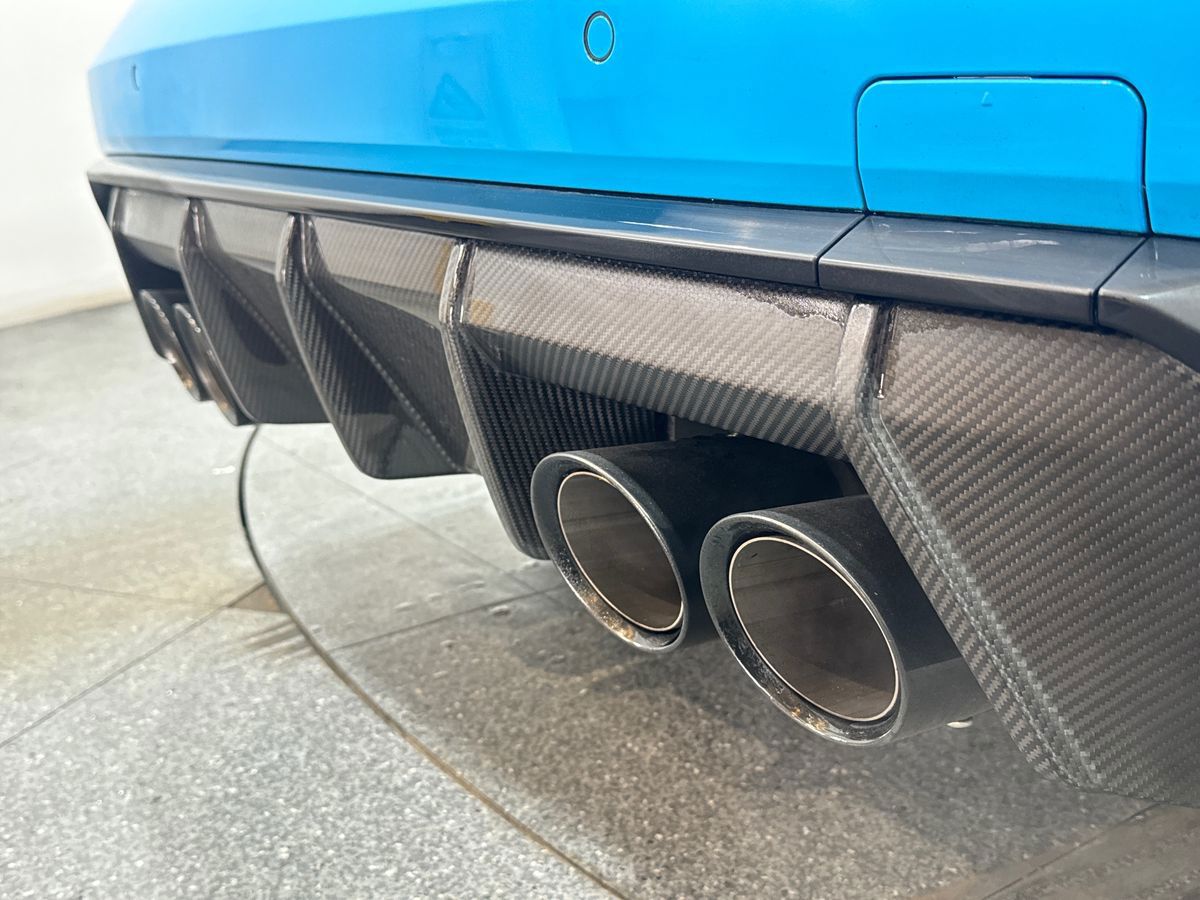 "S Line rear diffuser in matt anthracite black with trim strip in matt aluminium silver",