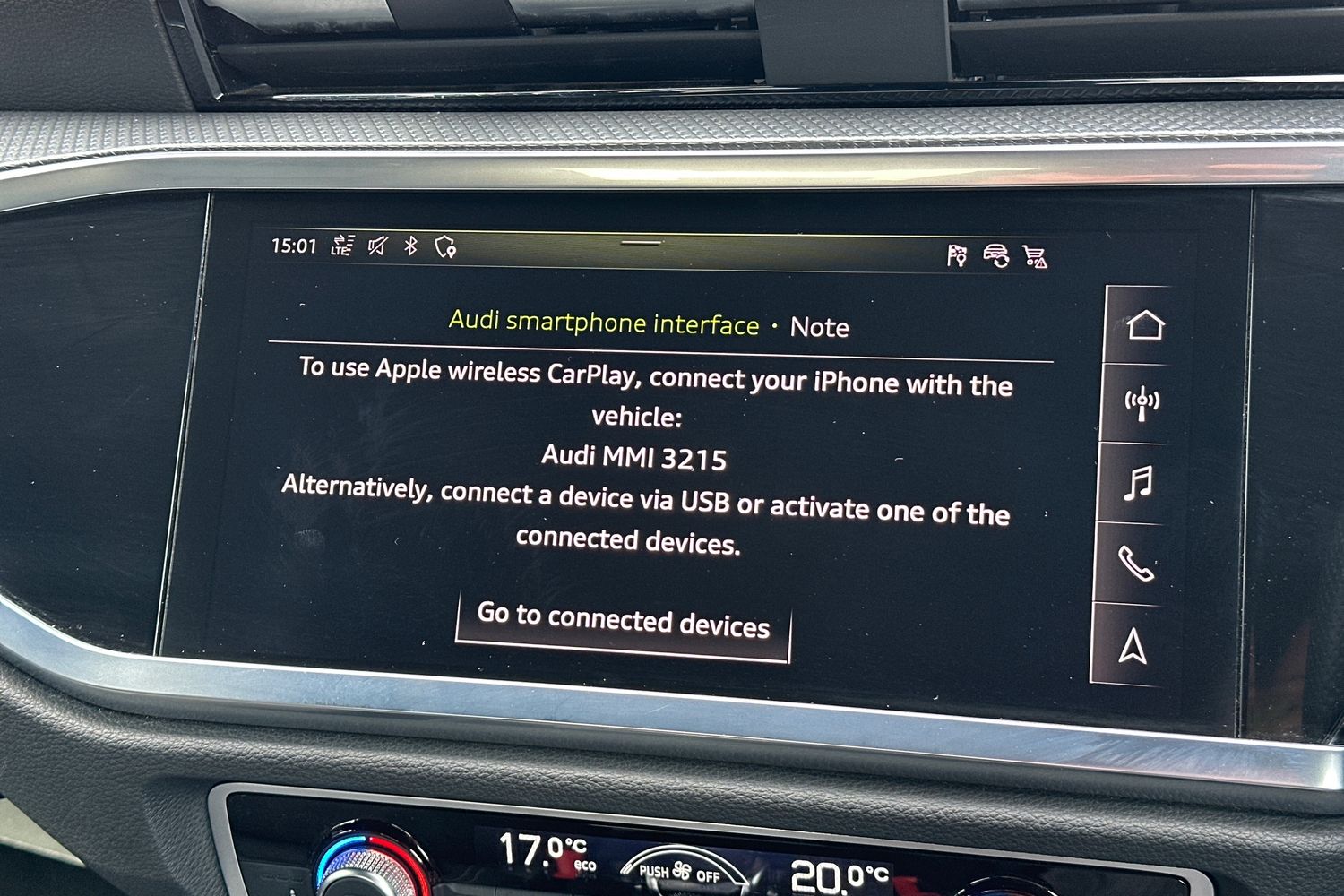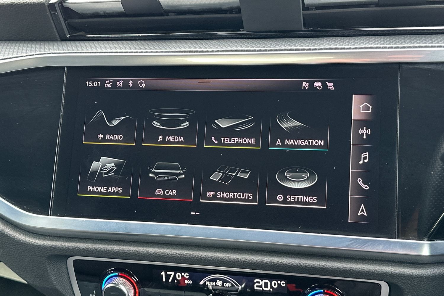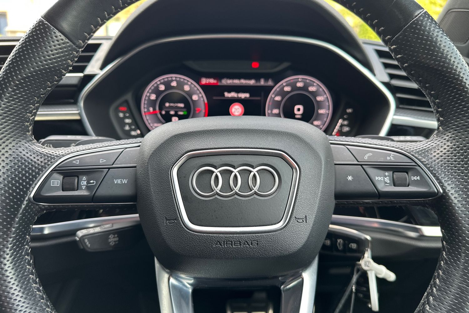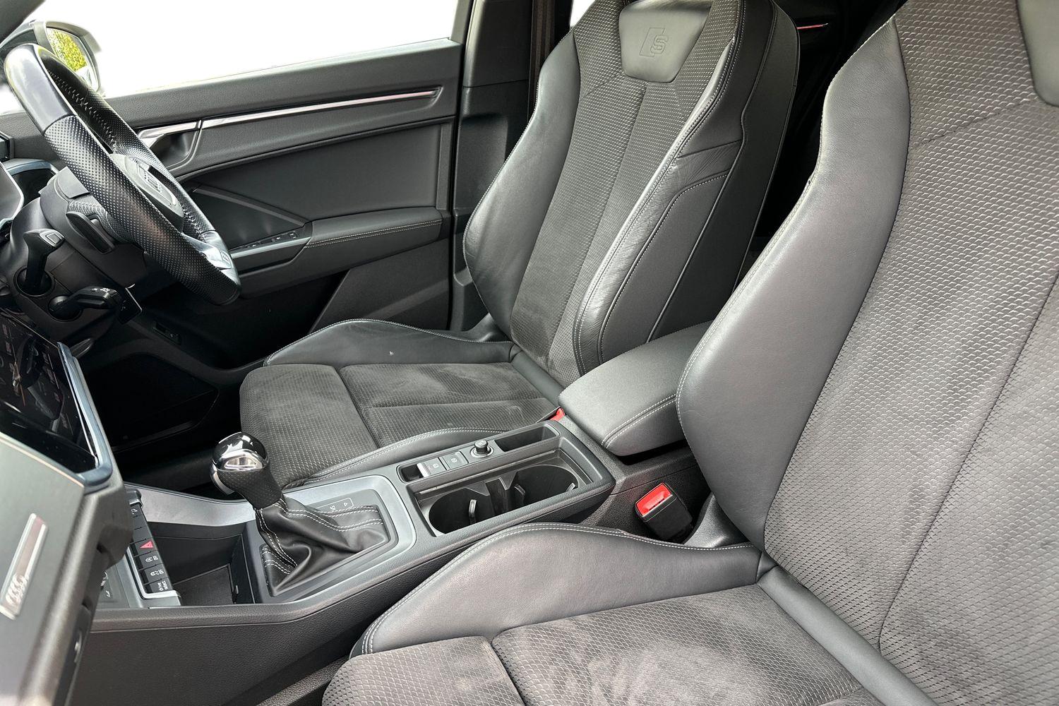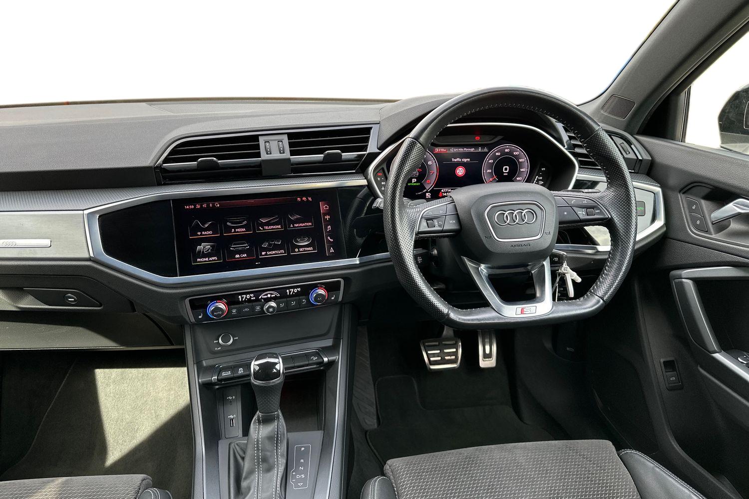 "features": "Amazon alexa Integration, Audi drive select, Audi lane departure warning, Audi Virtual Cockpit - 10.25\" display, Bluetooth interface, Camera based traffic sign recognition, Legal emergency call, MMI Navigation Plus with high resolution 10.1 inch touchscreen colour display, Power operated tailgate, Progressive steering, Service interval indicator, Smartphone interface includes wireless Apple carplay/Android Auto, Start stop system with recuperation, Voice control system with natural language interaction, Sports suspension, 2 USB-C ports with charge and data functions, 6 passive loudspeakers, DAB digital radio module, Acoustic windscreen, Auto dimming frameless rear view mirror, Black roof rails, Electrically folding, adjustable and heated door mirrors with integrated LED side indicators and kerb view function for passenger side, Front and rear electric windows, Front fog lights, Grille vertical bars in aluminium silver/Matt, High gloss black finish B and C pillars, LED Dynamic rear indicators, LED headlights with LED daytime running lights, LED rear lights, LED third brake light, Privacy glass dark tinted rear and rear-side windows (from B-pillar backwards), Rain and light sensors, Rear diffuser grille in grained matt black, Rear diffuser strip in matt anthracite black, Rear side wing doors, Rear wiper, S line bumpers in contrasting Manhattan grey, Variable front intermittent wipers, 12V socket in rear centre console, 3 seat bench in 2nd row, 40:20:40 folding with manual adjustment for 60:40 forwards/backwards position and backrest angle, Adjustable rear seat bench/backrest with centre armrest and cupholder, Black cloth headlining, Dual zone electronic climate control, Front and rear black floor mats with contrast stitching in rock grey, Front and rear headrests, Front and rear roof module including reading lights, Front centre armrest, Glove compartment lighting, Height and reach adjustable steering wheel, Illuminated door sill trims with S logo, ISOFIX child seat mounting for front passenger with airbag deactivation and outer rear seat including top tether attachment point for outer rear seats, Luggage compartment light, Manual front seats with height adjustment, Perforated leather gearknob, Single front passenger seat, Stainless steel luggage compartment sill finisher, Stainless steel pedals, Ambient lighting pack - Q3, Black styling pack - Q3, Non smoking pack - Q3, 3x3 point rear seatbelts, 6 airbags - Driver, front passenger, curtain and side windows, Audi pre-sense front with pedestrain and cyclist recognition, Electrically operated child locks on rear doors, Electromechanical parking brake, Electronic stabilisation control including ABS, ASR and EDL, Front seatbelt reminder, Hill descent control, Hill hold assist, Pre sense basic, Seatbelt monitoring, Tyre pressure warning, Warning triangle and first aid kit, Anti theft alarm, Anti theft wheel bolts, Immobiliser, Remote central locking, Aluminium look interior elements, Detail dashboard around MMI touch colour display in glass look, black with surround in aluminium look, Leatherette door armrest, Piano black inlay, 19\" 5 twin arm design diamond cut audi sport alloy wheels in matt grey look, ",