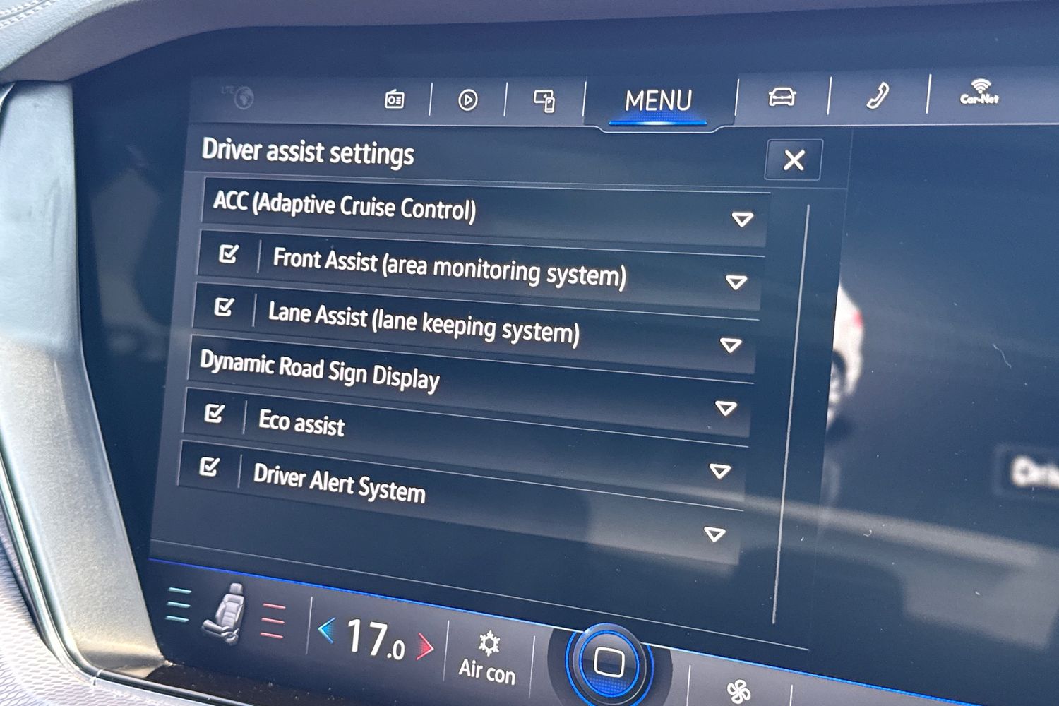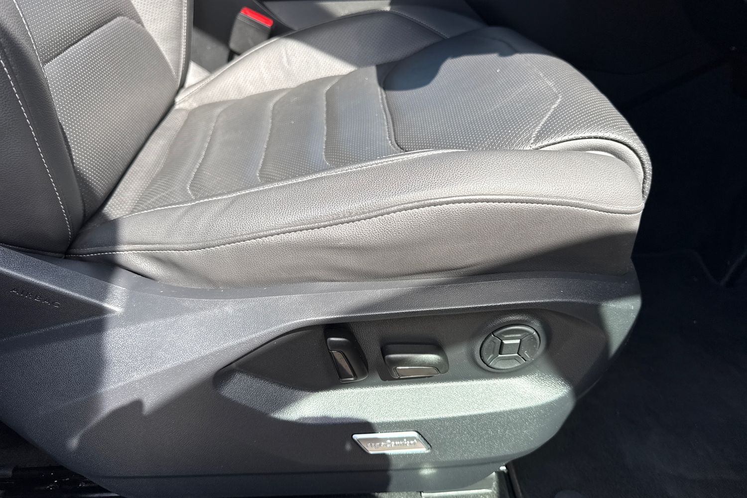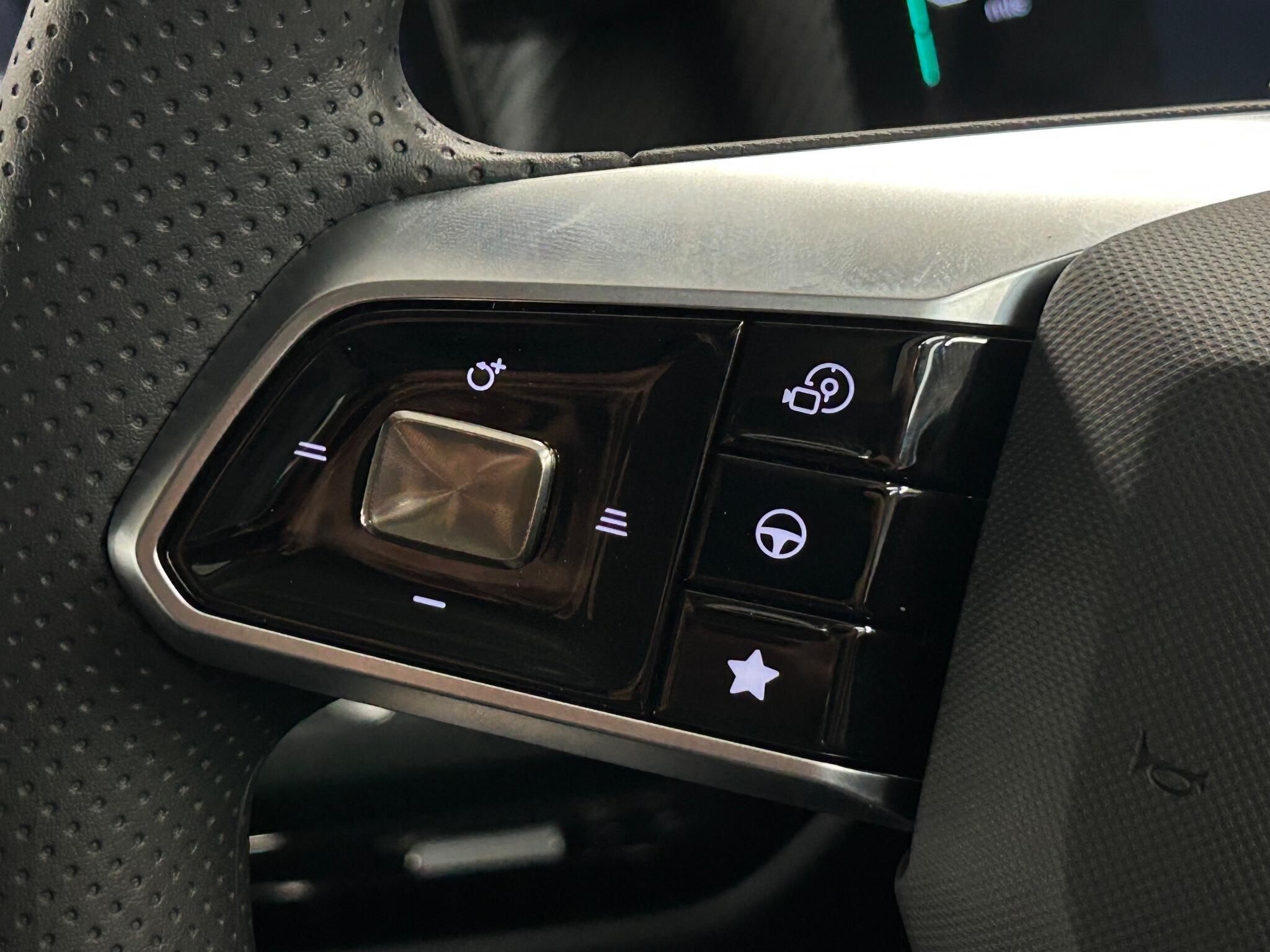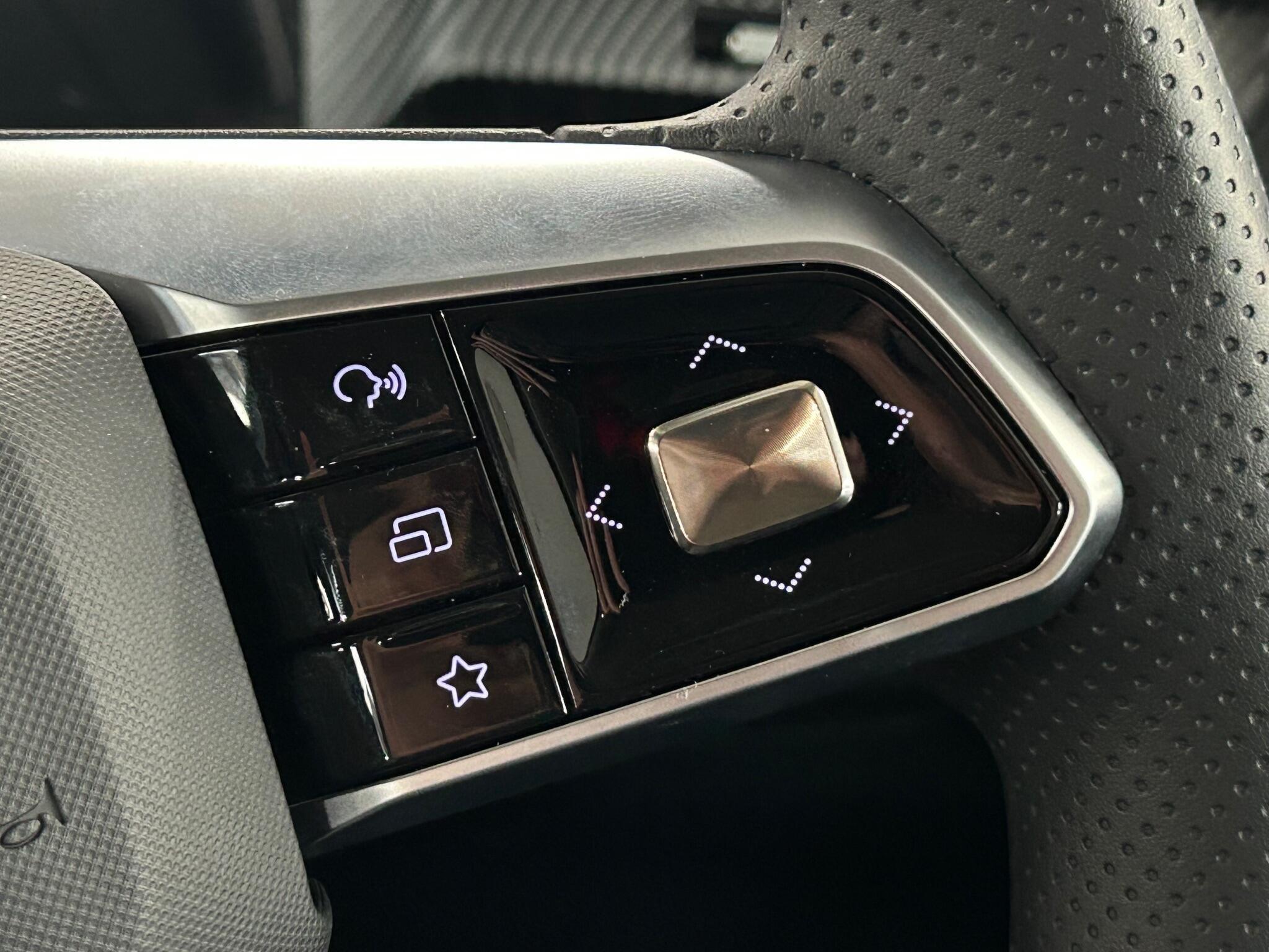 "3 spoke leather trimmed multi-function steering wheel with height and reach adjustable",