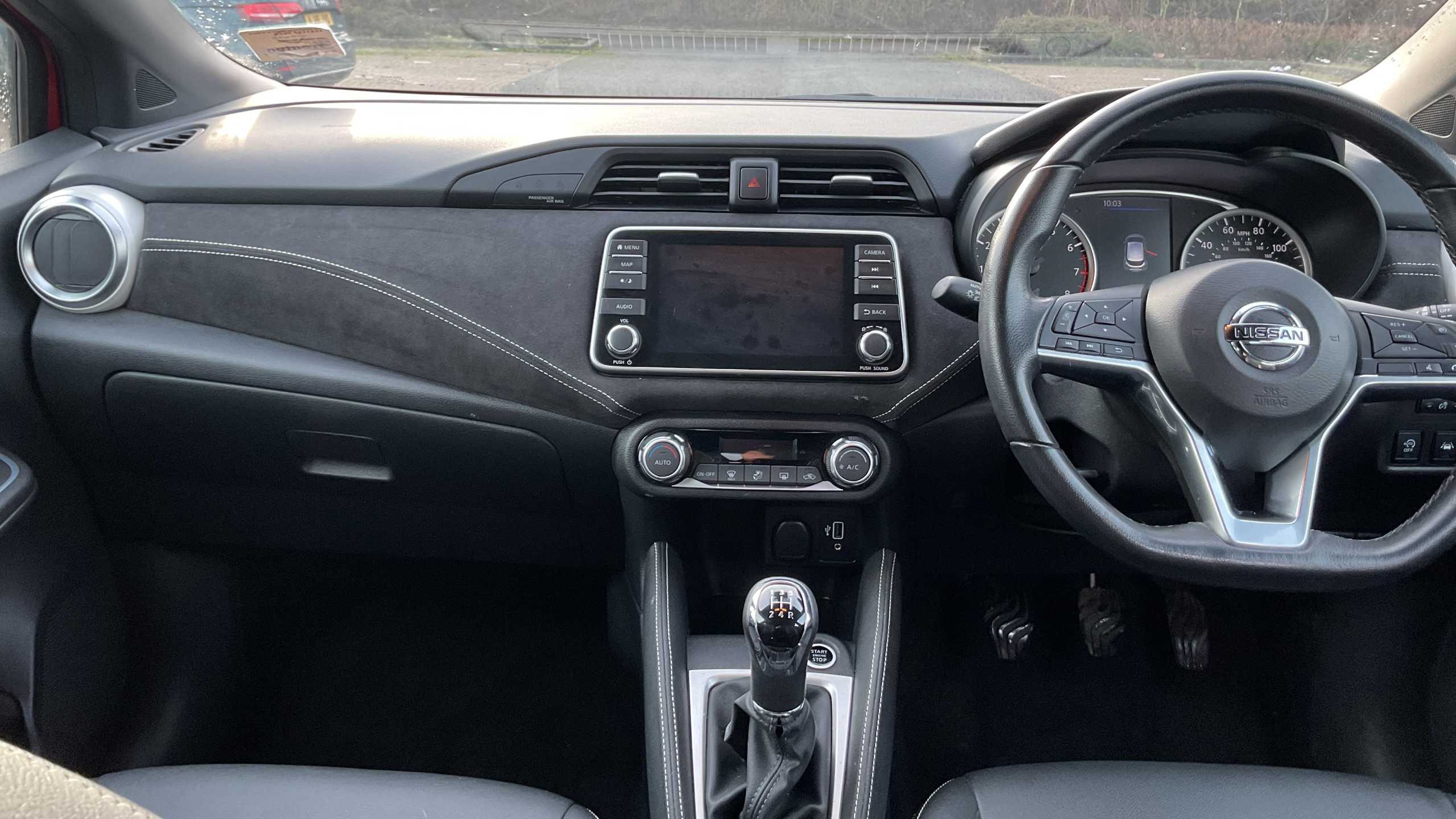 "features": "Adjustable speed limiter, Advanced drive assist display 5'' TFT coloured screen, Bluetooth system, Cruise control, eCall emergency call system, Engine start button, Lane departure prevention, Lane departure warning system, Nissan connect display audio, Outside temperature gauge, Power assist steering, Rear parking sensors, Rear view camera, Smartphone integration with Apple CarPlay and Android auto, Stop/start system, Traffic sign recognition, Trip computer, 4 speakers, Audio system with MP3, DAB Digital radio, Steering wheel mounted audio controls, USB/iPod connection, Antenna, Automatic activation of hazard warning lights, Automatic headlights, Black door mirrors, Body colour front door handles, Body coloured bumpers, Concealed rear door handles, Electric folding door mirrors, Front and rear electric windows, Front fog lights, Heated door mirrors, High beam assist, High mounted stop lamp, Jacknife key type x1, LED Headlights, LED signature daytime running lights, LED turn indicators on door mirrors, Rain sensor windscreen wipers, Rear privacy glass, Rear roof spoiler, Rear side wing doors, Rear wiper with reverse link, Variable front intermittent wipers, 12V power point front, 2 height adjustable rear headrests, 2 x front and 1 x rear cup holders, 3 seat bench in 2nd row, 60/40 split folding rear seat, Automatic air conditioning, Boot compartment cover, Boot light, Chrome interior door handles, Driver's seat manual height adjust, Driver/passenger sunvisors and vanity mirrors, Front and rear door pockets with bottle holders, Front console storage box, Gear shift indicator, Grey PVC front door pads, Height adjustable front headrests with satin sliver decoration, Illuminated electric window switch, Isofix front passenger and rear seat preparation, Leather/Alcantara upholstery, Map reading lamp, Parcel shelf, Passenger seat back pocket, Reclining front seats, Satin silver accents on steering wheel, Satin silver air vents, Satin silver gearknob, Single front passenger seat, Soft touch upper IP with grey PC Insert, Tilt/telescopic adjustable steering wheel, ABS+EBD+Brake assist, Crash sensor, Driver/Front Passenger airbags, Front and rear curtain airbags, Front side airbags, Height adjustable front seatbelts with pre-tensioners and load limiters, Hill start assist, Intelligent emergency braking with pedestrian recognition, Manual passenger airbag deactivation function, Rear door child safety locks, Rear seatbelts with pre-tensioners and load limiters, Seatbelt warning, Three 3 point rear seatbelts, Tyre pressure monitoring system, Warning triangle and first aid kit, Anti-theft immobiliser, Remote central locking, 17\" Alloy wheels, Tyre repair kit, ",