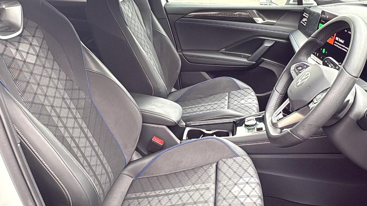 "R Line front seats integrated head restraints",