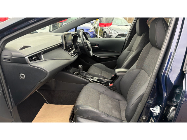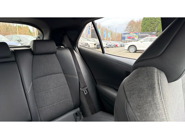 "Twin leather/leatherette upholstery with front sport seats with integrated head restraints"