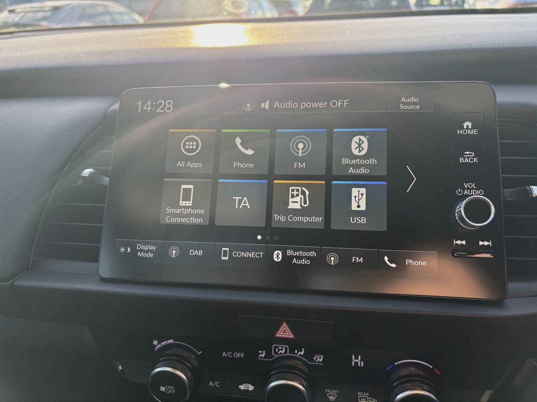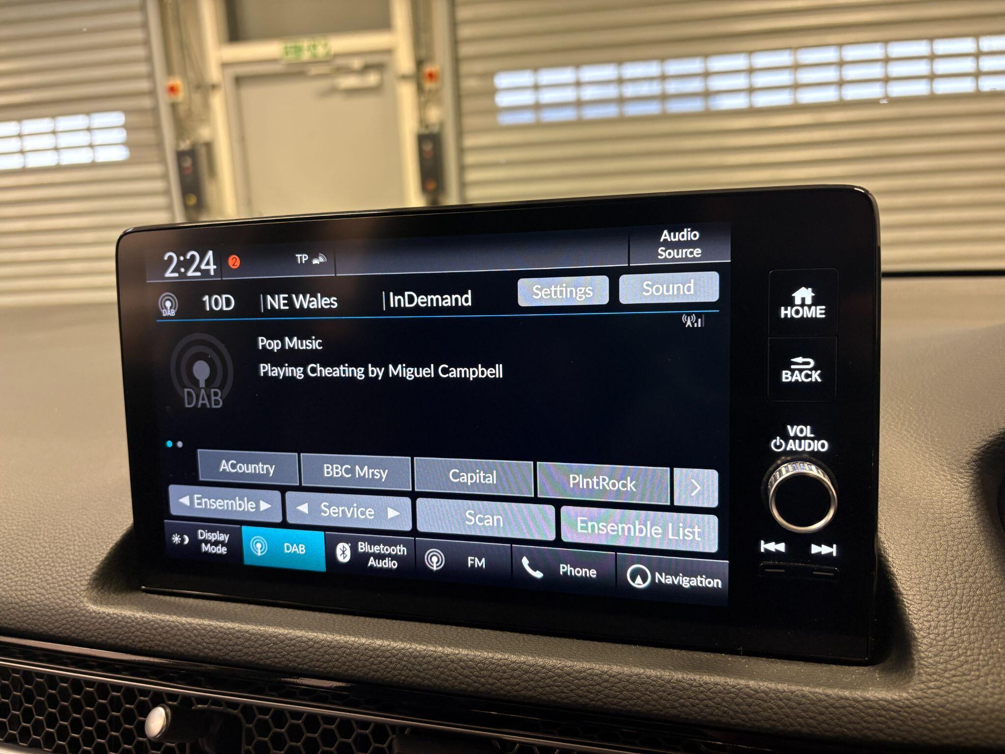"12\" landscape touchscreen display with wireless apple car play and android auto premium B&O audio system with 10 speakers",