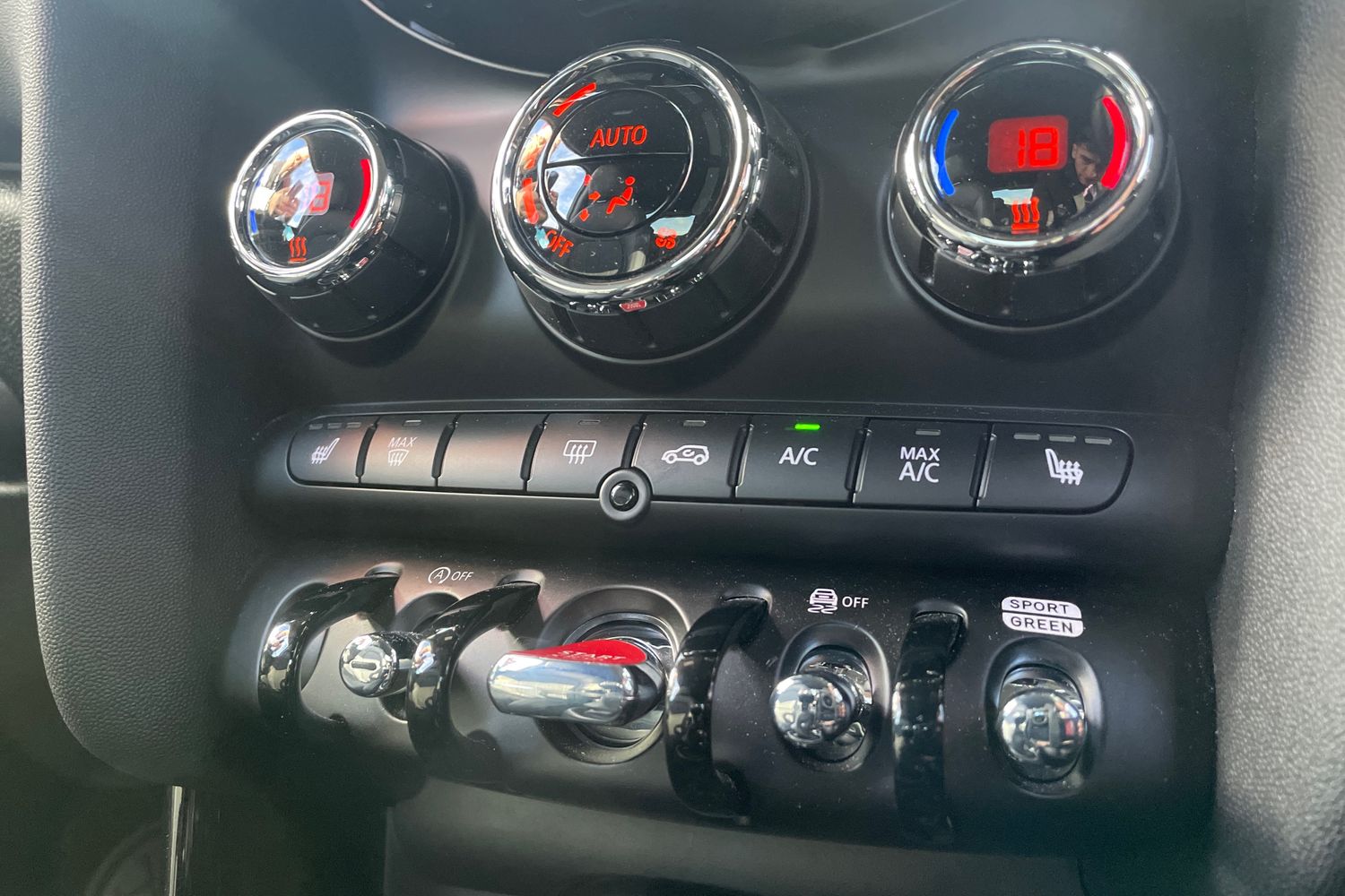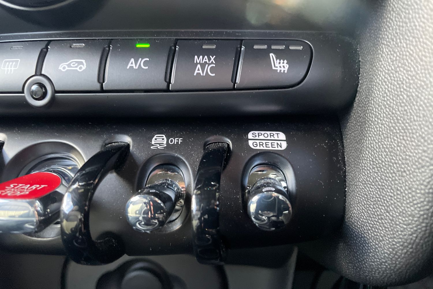 "MINI Driving Modes - centre toggle switch to control driving setting (sport, mid and green)",