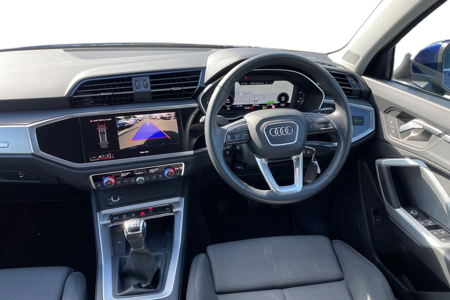 "features": "Acoustic front and rear parking sensor, Audi connect safety and service (e-call), Audi drive select, Audi virtual cockpit with 12.3\" screen with specific display, Audi wireless smartphone interface, Automatic start-stop system with coasting functionality and efficiency programme, Bluetooth interface, Camera based traffic sign recognition, Electro - mechanical power assisted steering, Lane departure warning, MMI navigation plus with 10.1\" touch screen, Power tailgate, Reversing camera, Service interval indicator, Voice control system with Audi hotword activation \"Hey Audi\", 3 pin 10 amp domestic charging cable, 7.4 kW onboard charger, Dynamic suspension, Industrial connector CEE 32A, 230V, Quattro on demand, Type 2 mode 3 22kW 32 amp charging cable, Type 2 socket for AC charging, 2 x USB charging port with aux input socket, 8 loudspeakers, DAB Digital radio, Acoustic windscreen, Air inlets in matt anthracite black with blades in matt aluminium silver, Aluminium roof rails, Auto dimming door mirrors, Auto dimming frameless rear view mirror, Automatic headlight adjustment, Automatic headlights and windscreen wipers, Body colour bumpers, Body colour door mirrors, Chrome plated exhaust trims, Daytime running lights, Door sills in Selenite silver, Electric adjustable/heated/folding door mirrors, Front and rear electric windows, LED 3rd brake light, LED headlights and LED tail lights, Loading edge protection in stainless steel, Lower bumpers painted in contrast Manhattan grey, Matt selenite silver underbody protection, Matt twilight grey radiator grille with chrome vertical struts, Rear chrome trim strip below lights, Rear diffuser strip in selenite silver, Rear side wing doors, Rear spoiler, Rear wiper, Roof bars, 3 rear headrests, 3 seater rear seat bench, 3 spoke multifunction leather steering wheel with shift paddles, Comfort front centre armrest, Deluxe 3 zone electronic climate control, Door sills trims with aluminium inlays, Front head restraints, Front sport seats, Front/rear floor mats, Heated front seats, Height/reach adjustable steering column, Luggage compartment cover, Manual seat adjustment with 4-way electric lumbar support, Rear seat bench plus-adjust for forwards/backwards position/backrest angle, load through hatch and remote backrest release, Single front passenger seat, Sunvisors with vanity mirrors, Twin leather upholstery, High gloss pack - Q5, LED interior light pack - Q5, 3 point seatbelts on all seats, 6 airbags - Driver, front passenger, curtain and side airbags, Attention and drowsiness assist, Electrically operated child locks on rear doors, Electromechanical parking brake, Electronic stabilisation control including ABS, ASR and EDL, First aid kit with warning triangle and vests, Front passenger airbag deactivation, Hill descent control, Hill hold assist, ISOFIX child seat mounting for front passenger seat and ISOFIX child seat mounting with Top Tether for outer rear seats, Multi collision brake assist, Pop-up bonnet for pedestrian protection, Pre sense city, Seatbelt monitoring, Tyre pressure warning, Anti theft alarm, Anti-theft wheel bolts, Remote central locking, Remote control key with SAFELOCK and keyless go, Air vents inserts and centre console in matte black, Aluminium rhombus inlay, Tool kit, Tyre repair kit, ",